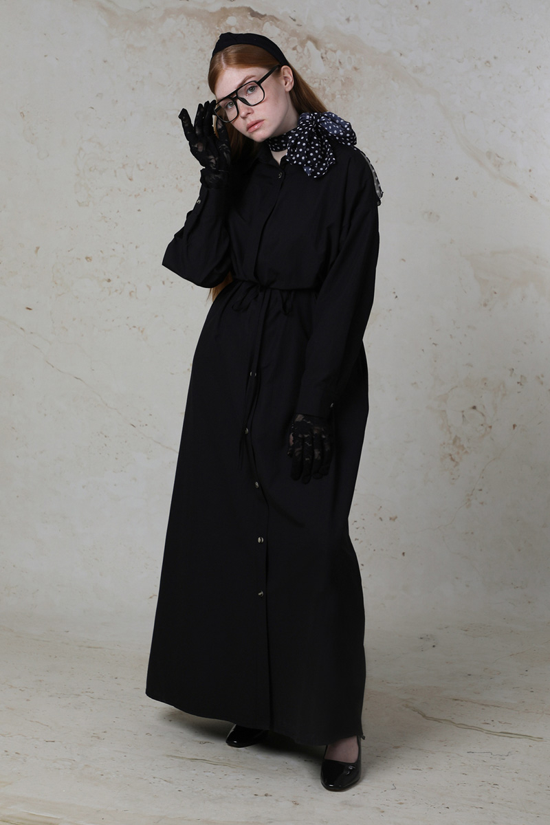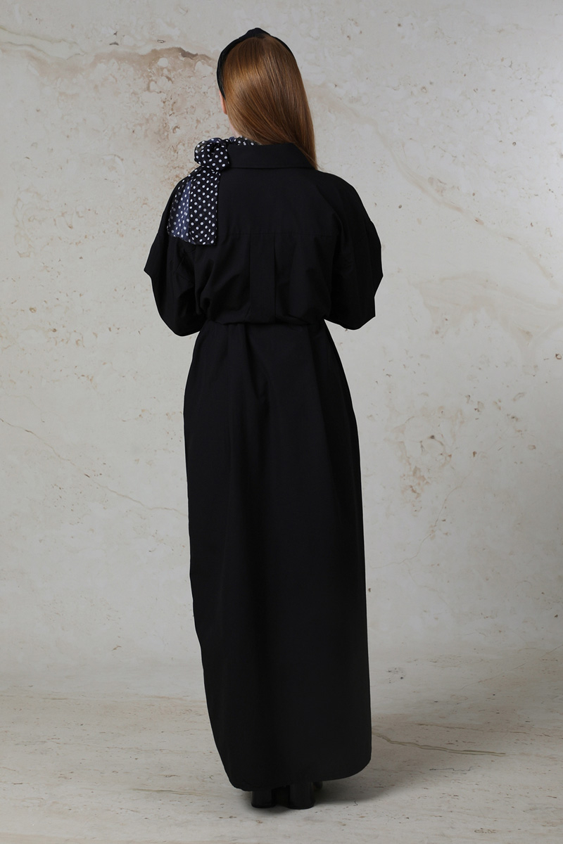 Önü Bağlamalı Gömlek Elbise Siyah
