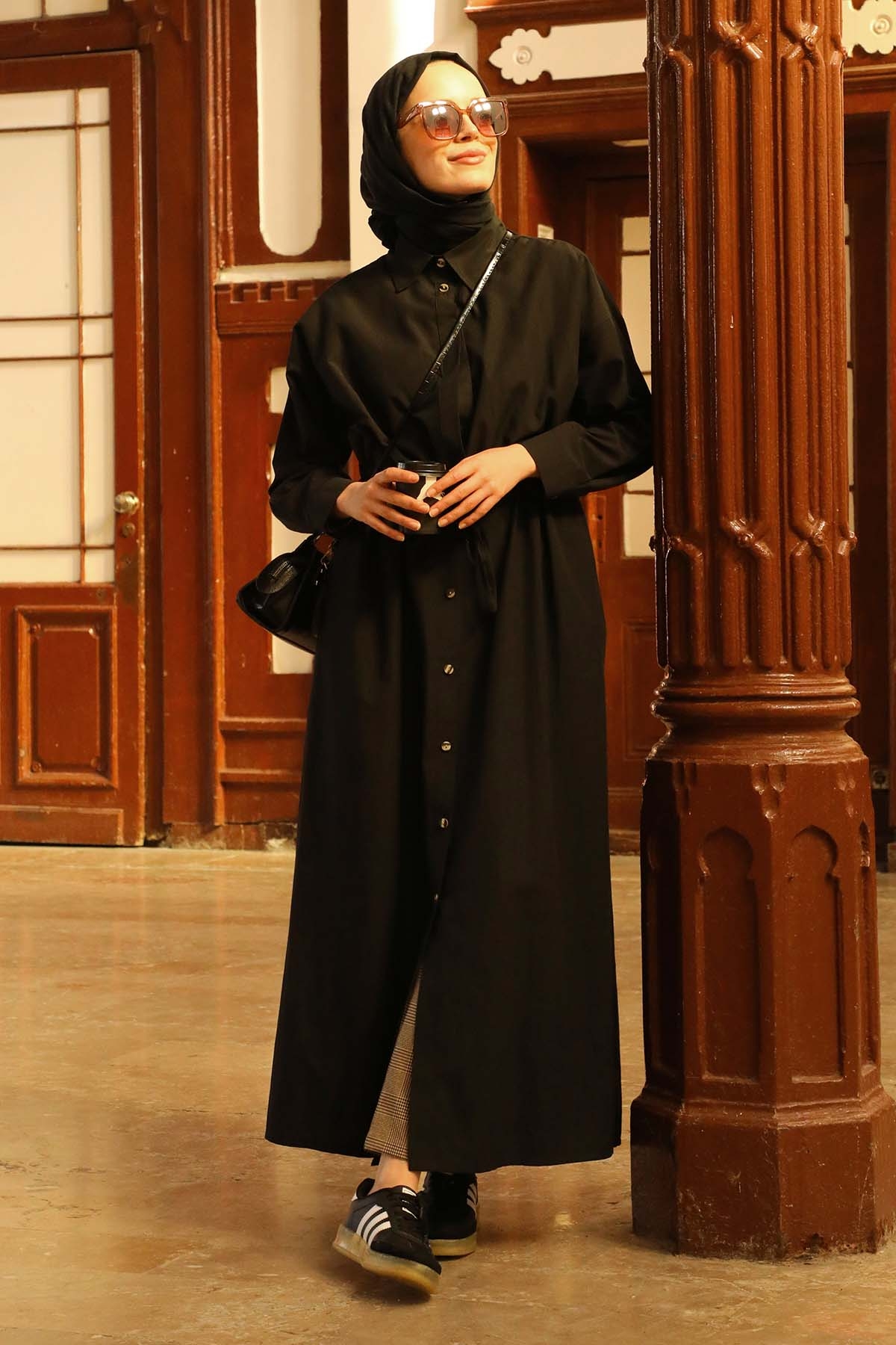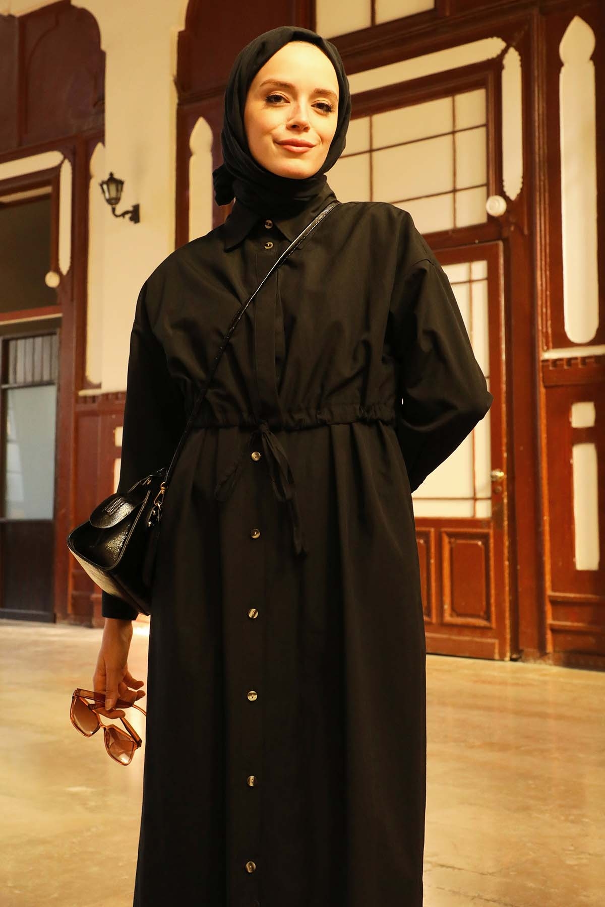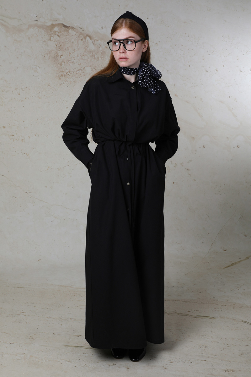 Önü Bağlamalı Gömlek Elbise Siyah. Önden düğme detaylıdır. Önden ve arkadan rüzgarlık detaylıdır. Rüzgarlık içinde biye vardır, biye büzülme özelliğine sahiptir. Arka rüzgarlığında pile ve roba detaylıdır. Günlük kullanım ve özel günlerinizde tercih edebilirsiniz.