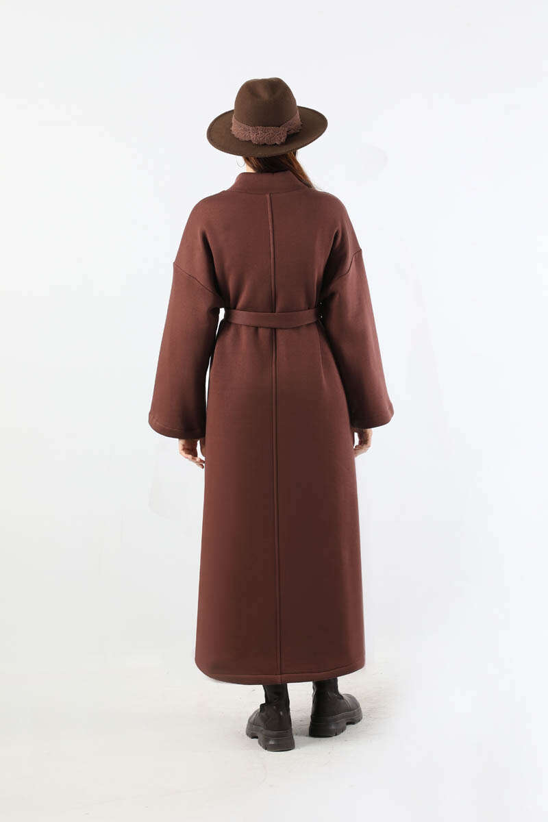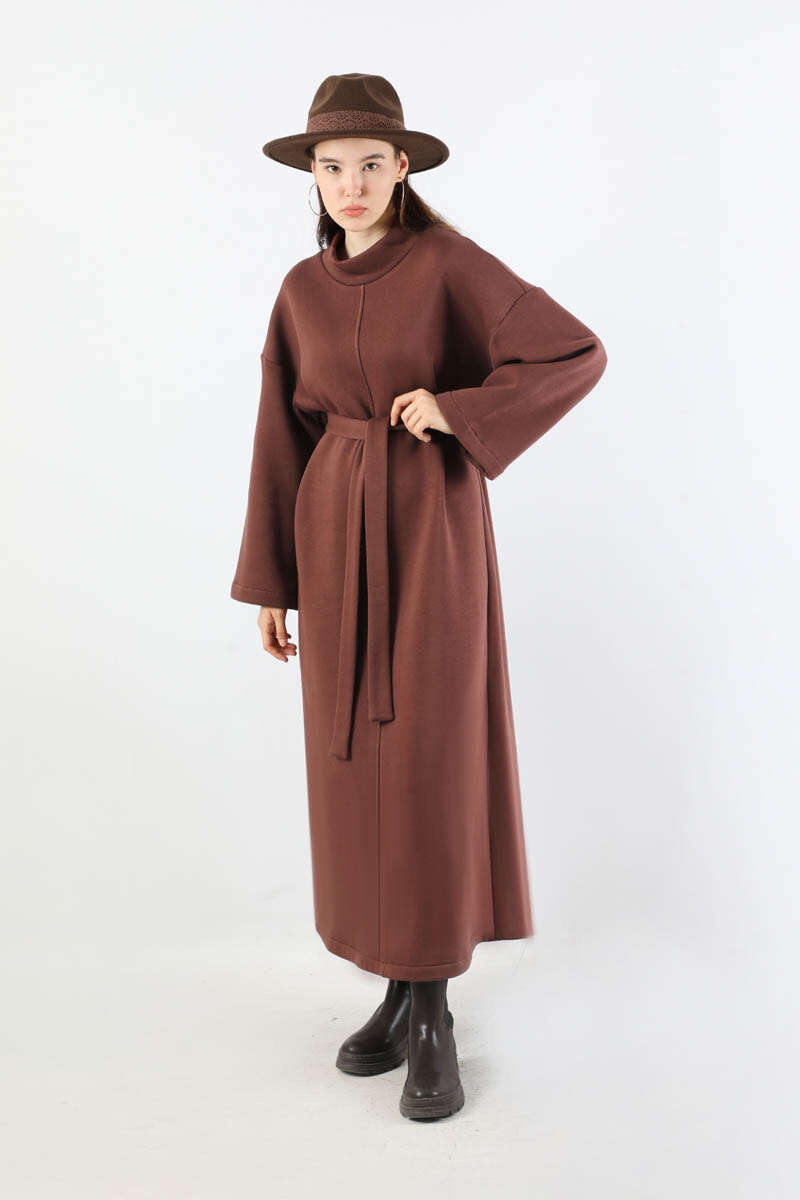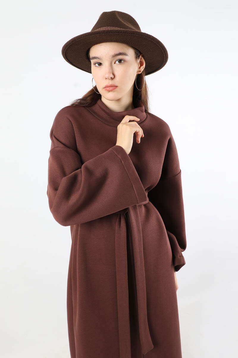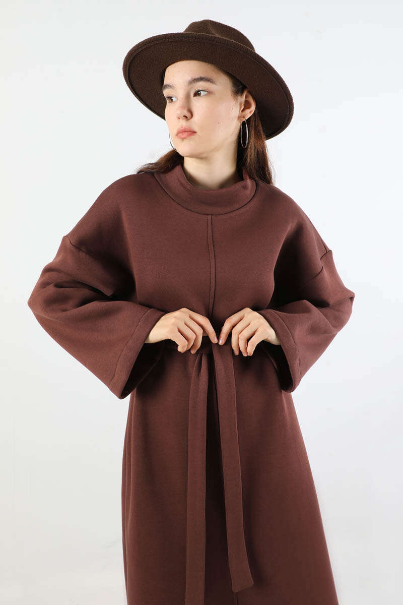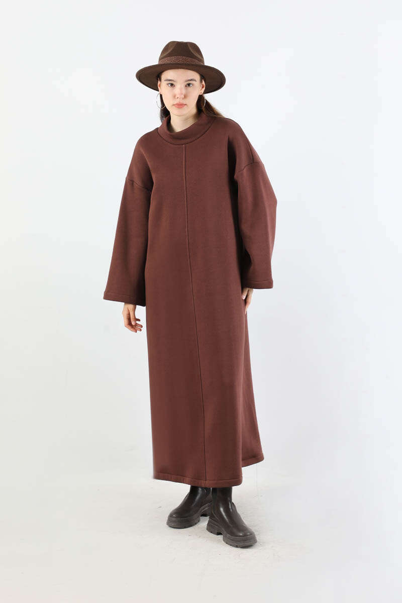 Önü Dikişli Oversize Elbise Kahverengi. Balıkçı yaka. Düşük omuzludur. Salaş kalıptır. Kuşaklıdır.Günlük kullanım ve özel günlerinizde tercih edebilirsiniz.