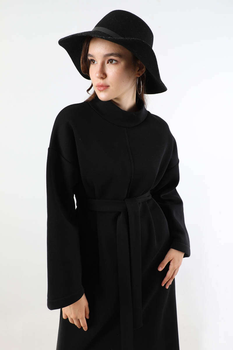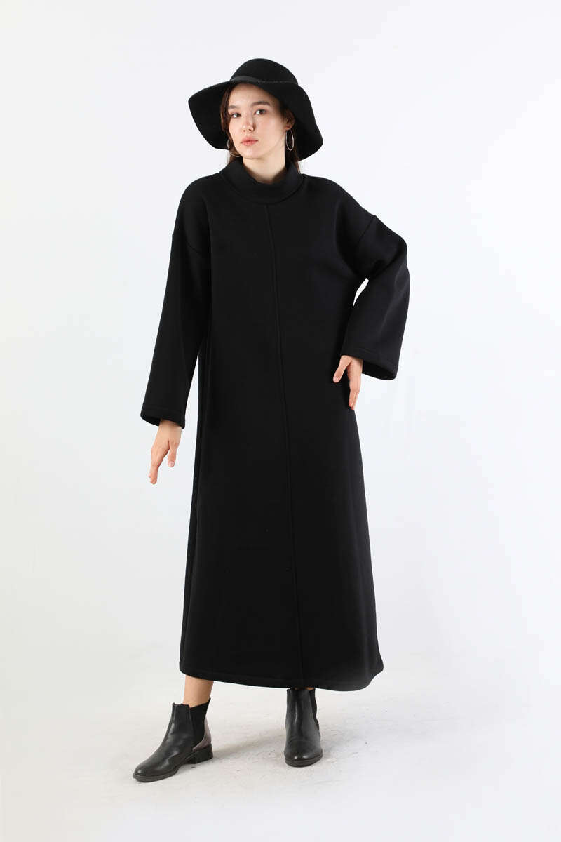 Önü Dikişli Oversize Elbise Siyah. Balıkçı yaka. Düşük omuzludur. Salaş kalıptır. Kuşaklıdır.Günlük kullanım ve özel günlerinizde tercih edebilirsiniz.