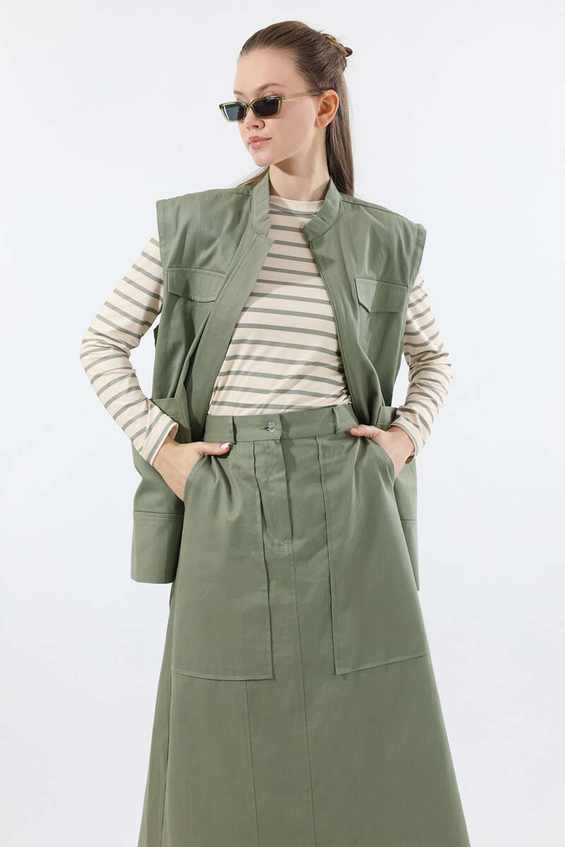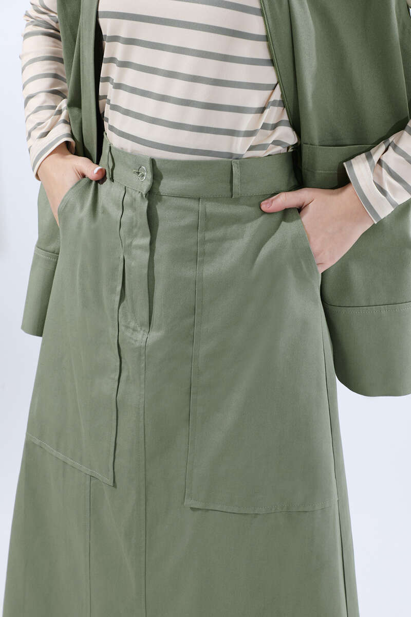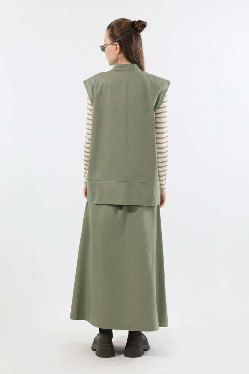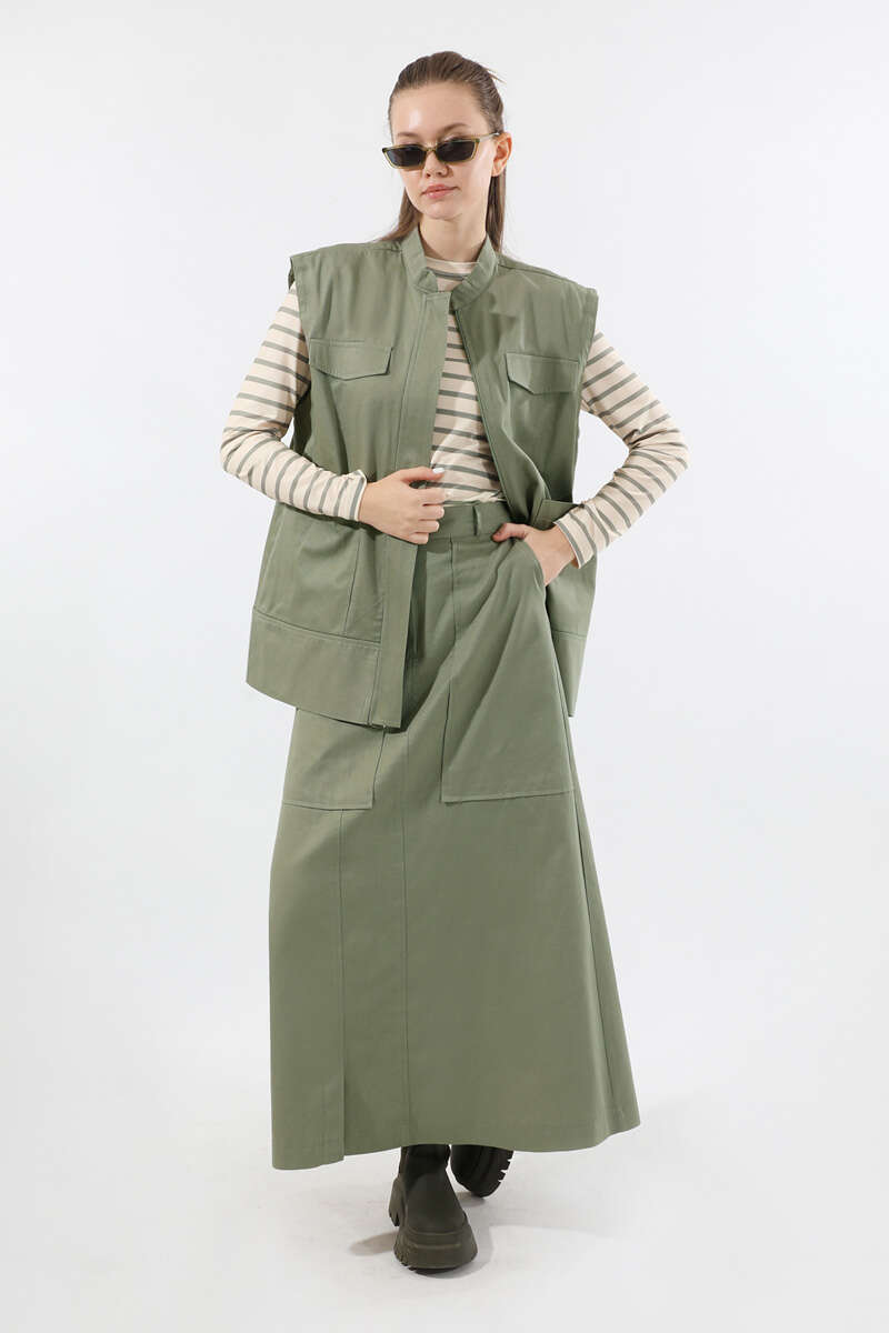 Önü Fermuarlı Yelek Etek Takım Mint. Yelek önden ceplidir. süs cep kapağı detaylıdır. Hakim Yakalıdır. Önden gizli fermuarlıdır. Etek beli lastiklidir. Etek Önden fermuarlıdır. Etek ön yandan yırtmaç detaylıdır. Günlük kullanım ve özel günlerinizde tercih edebilirsiniz.