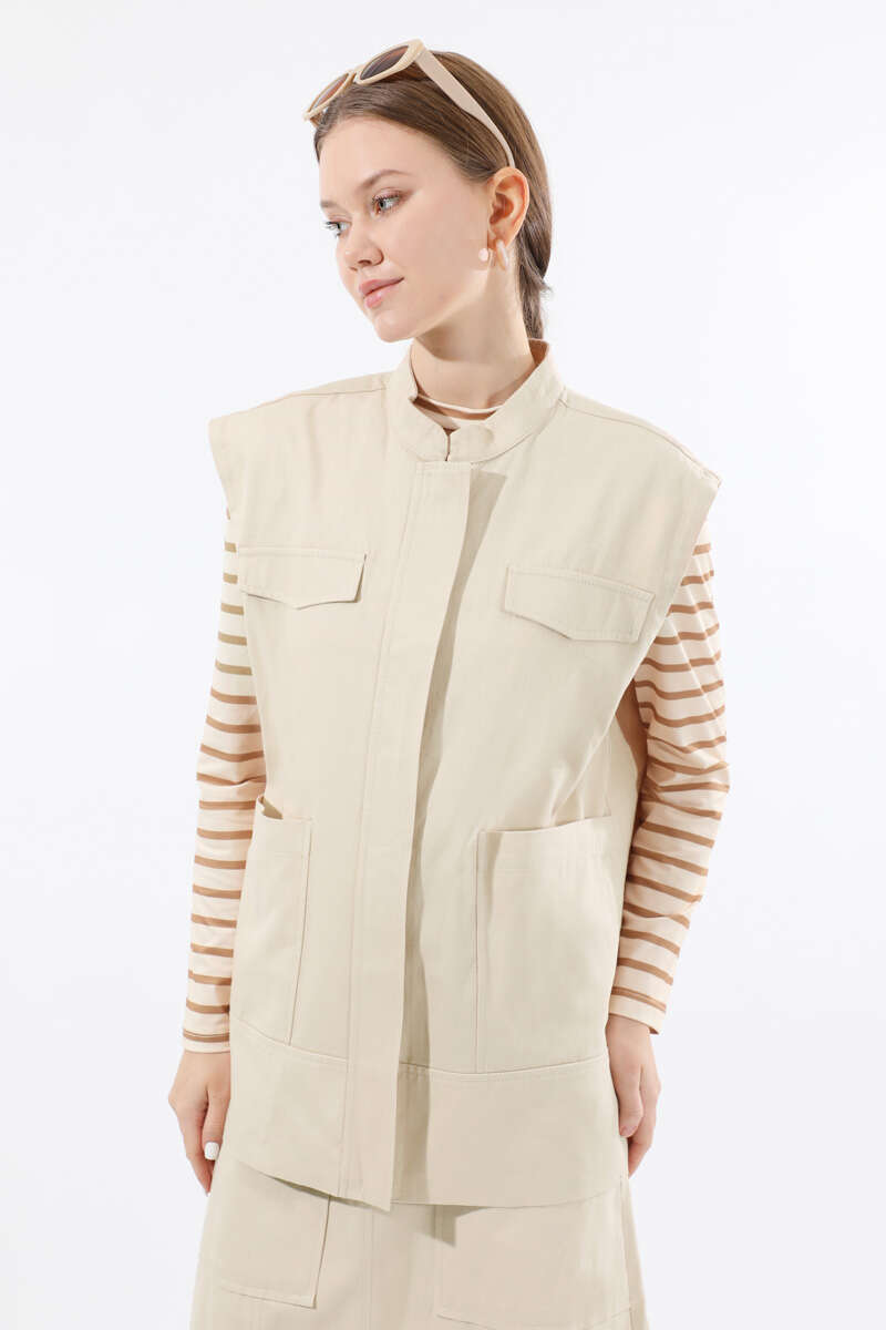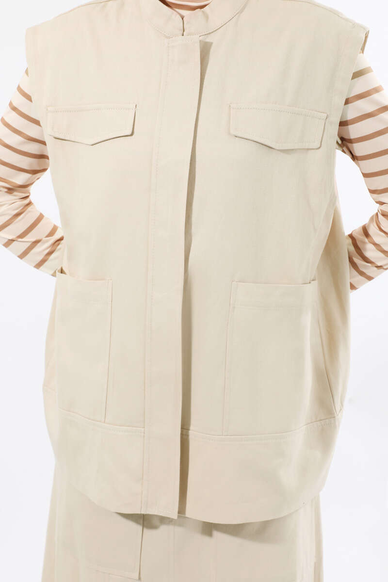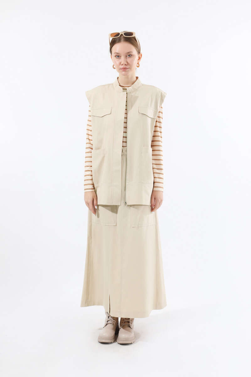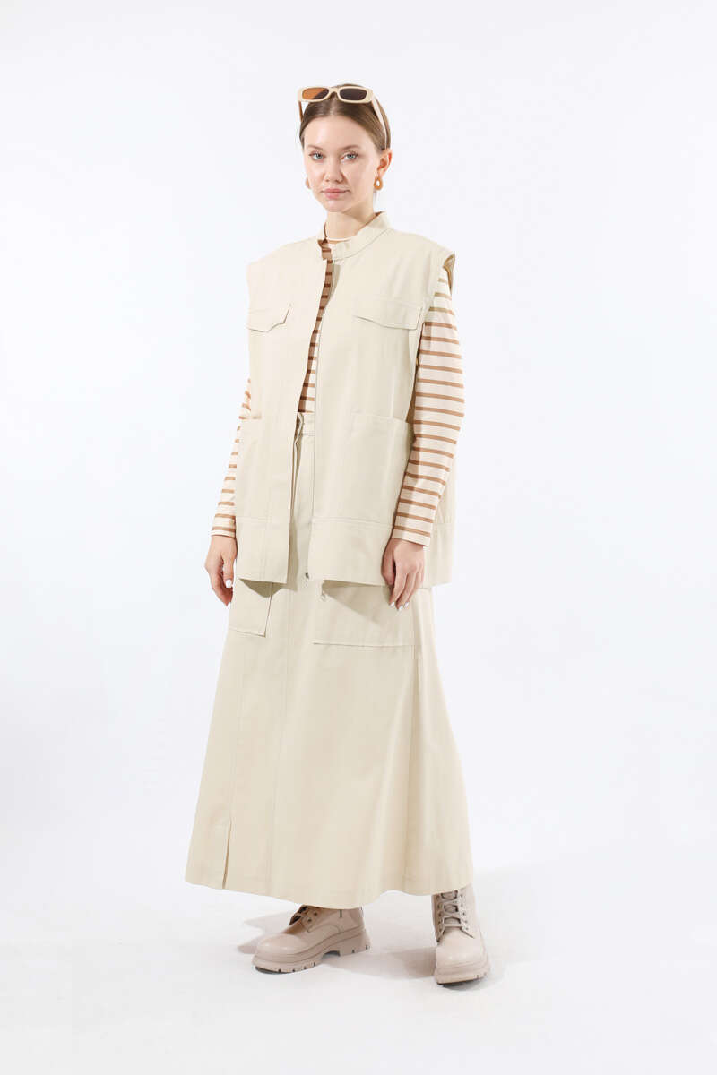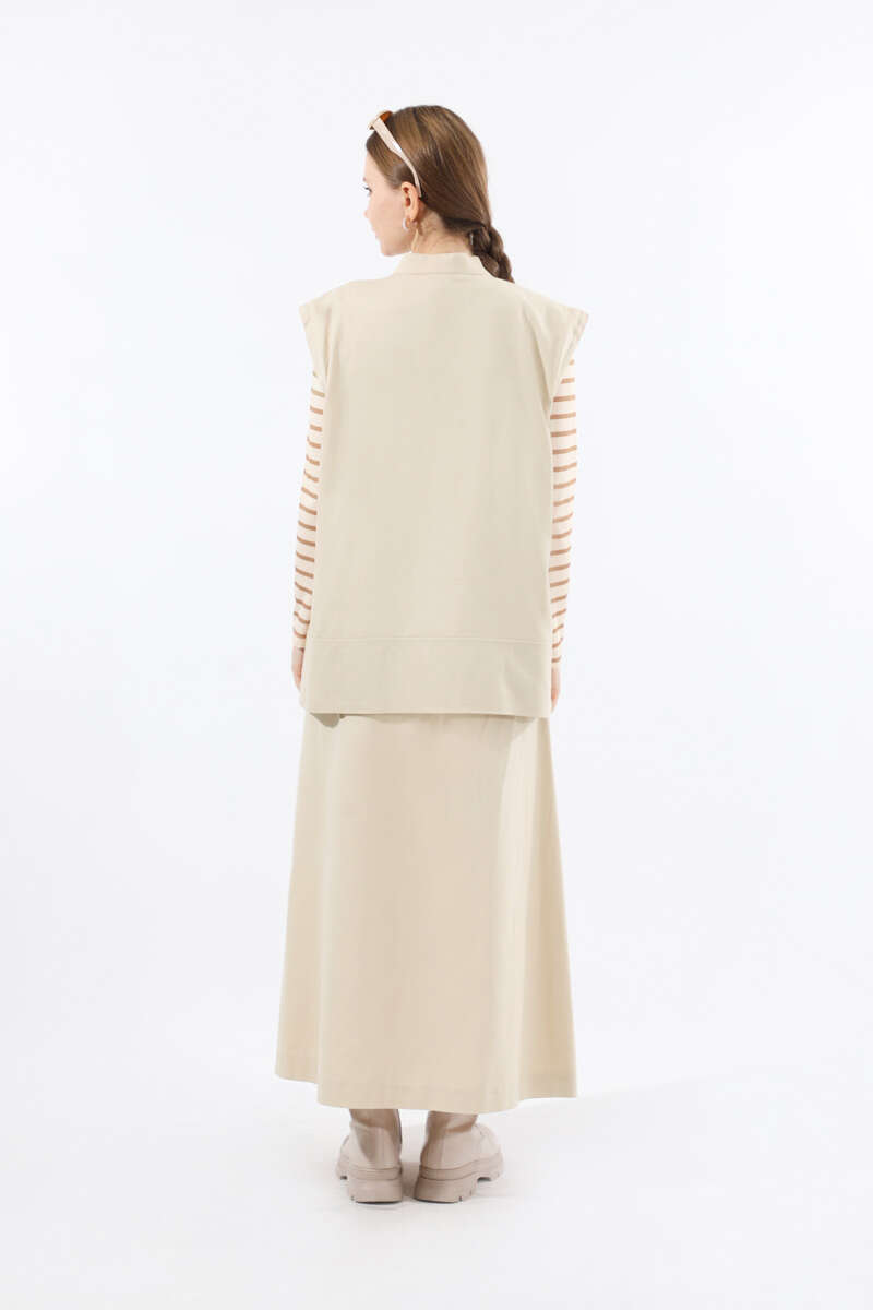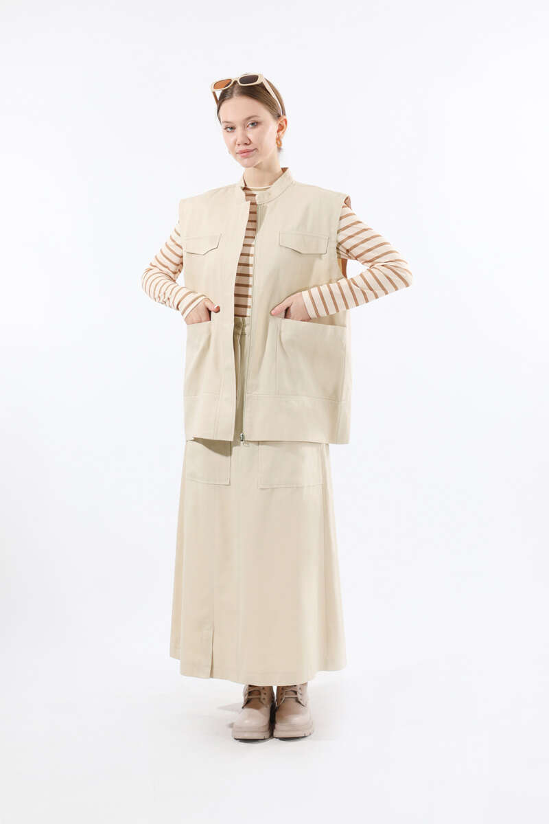 Önü Fermuarlı Yelek Etek Takım Taş