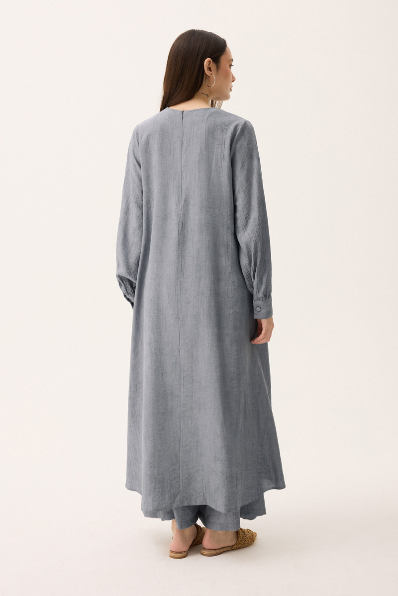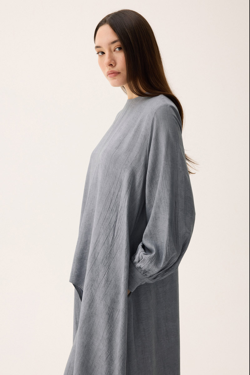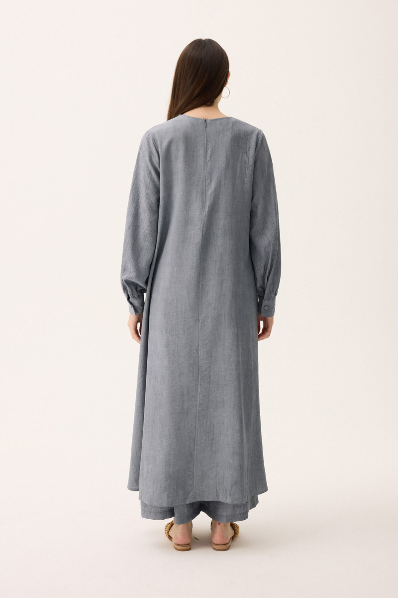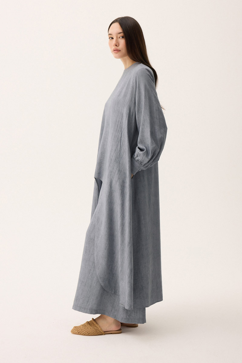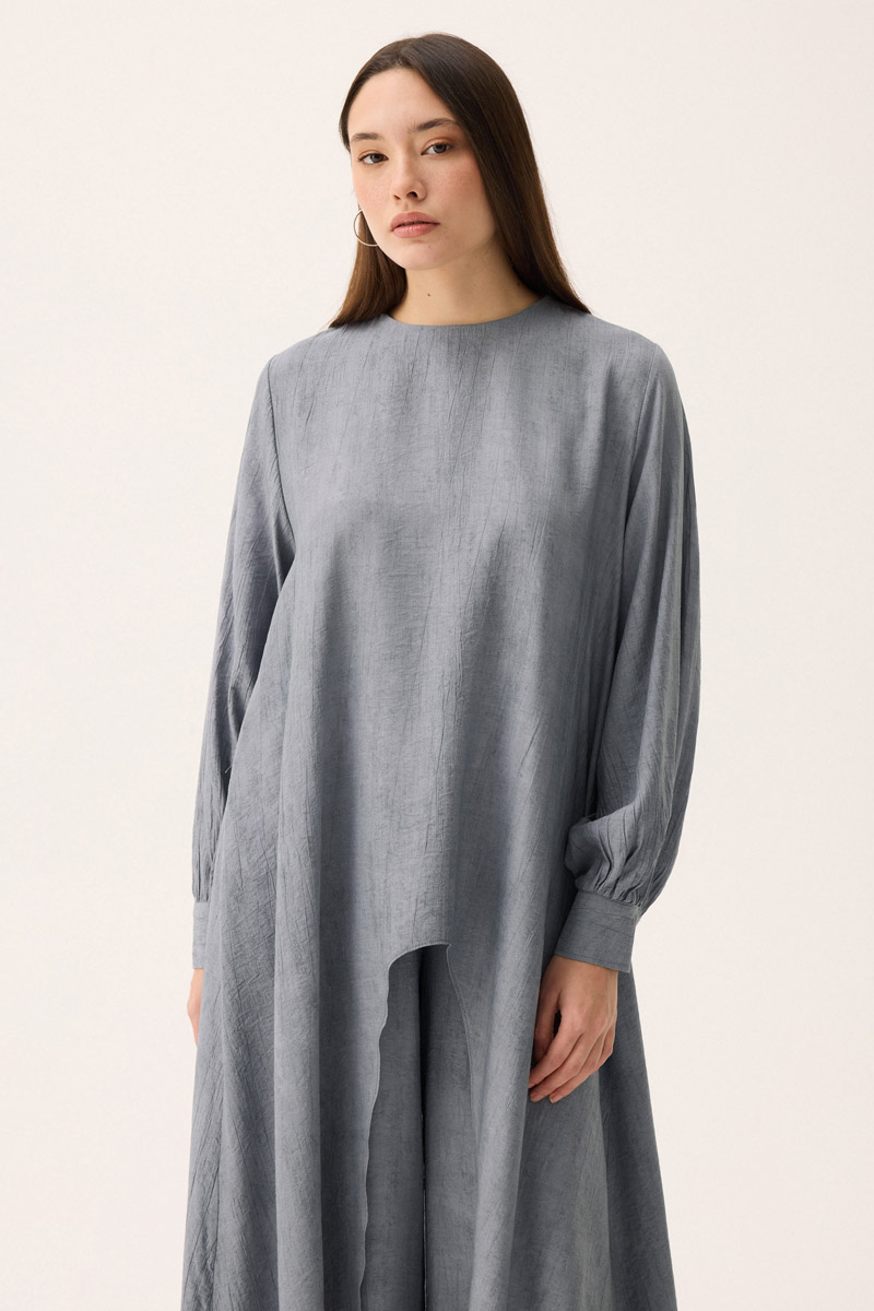Önü Oval Kesim Takım Gri. Bisiklet yakadır, düşük kolludur, önü oval kesim detaylıdır, çilek batik desenlidir, yadan gizli ceplidir, astarsızdır. Pantolon belden lastiklidir, yandan ceplidir, bol paçadır. Günlük kullanım ve özel günlerinizde tercih edebilirsiniz.
