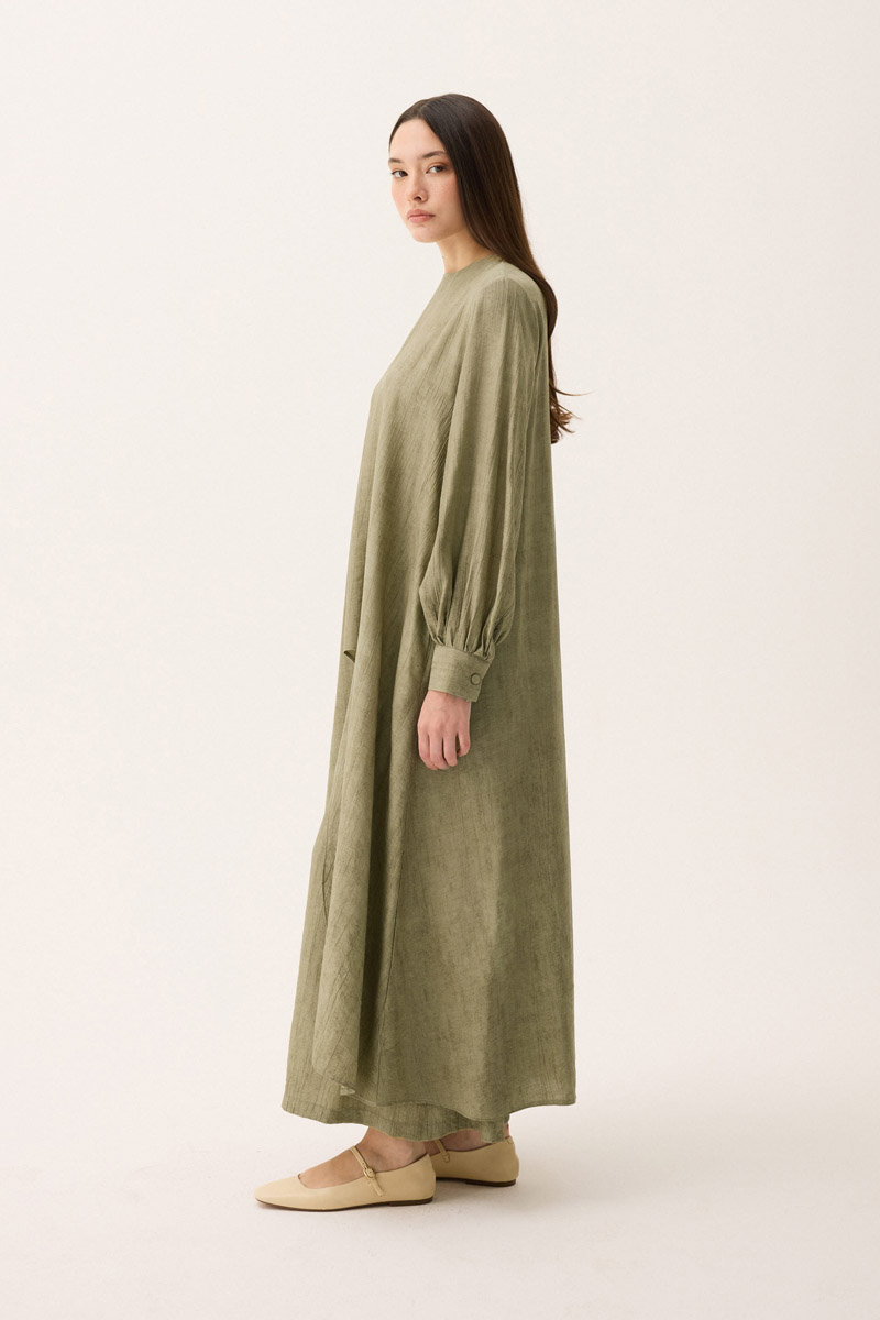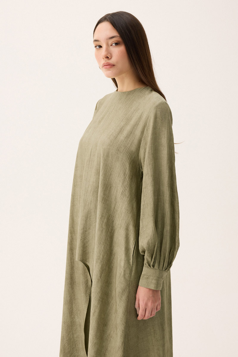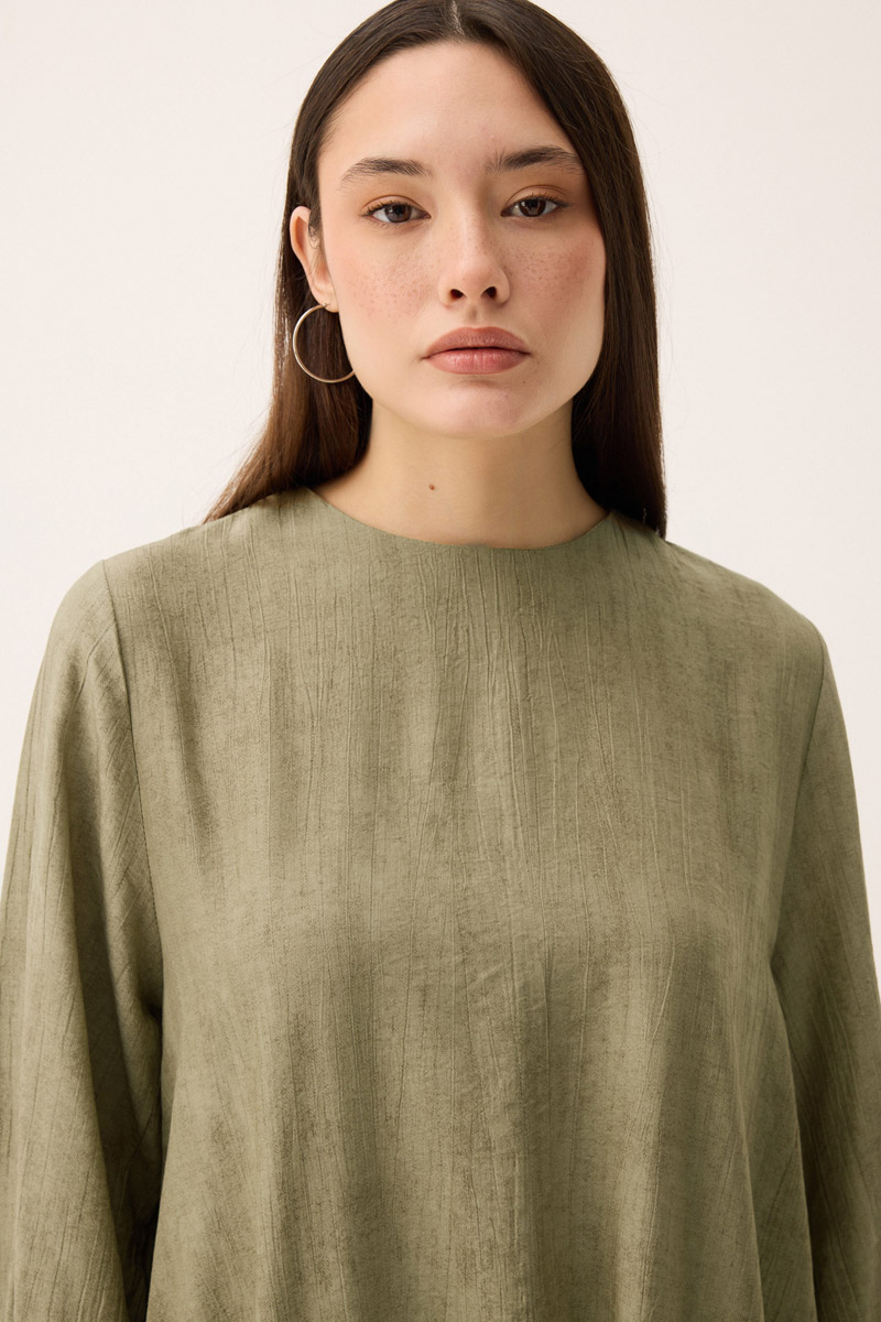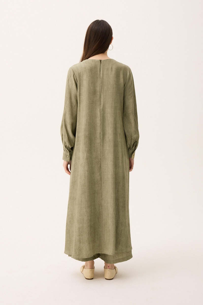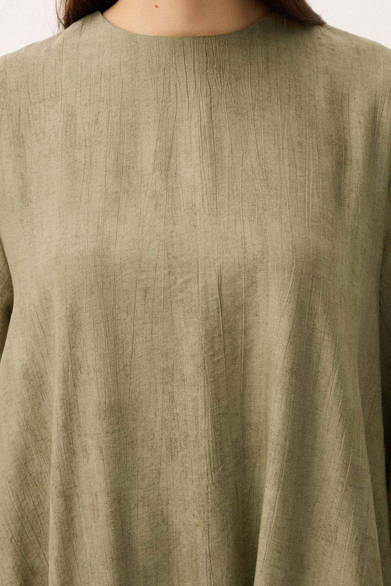 Önü Oval Kesim Takım Haki. Bisiklet yakadır, düşük kolludur, önü oval kesim detaylıdır, çilek batik desenlidir, yadan gizli ceplidir, astarsızdır. Pantolon belden lastiklidir, yandan ceplidir, bol paçadır. Günlük kullanım ve özel günlerinizde tercih edebilirsiniz.