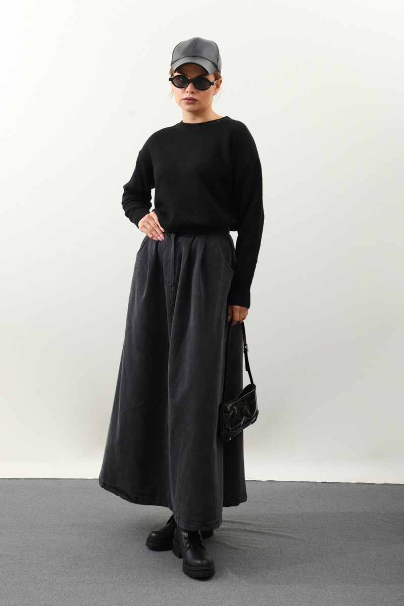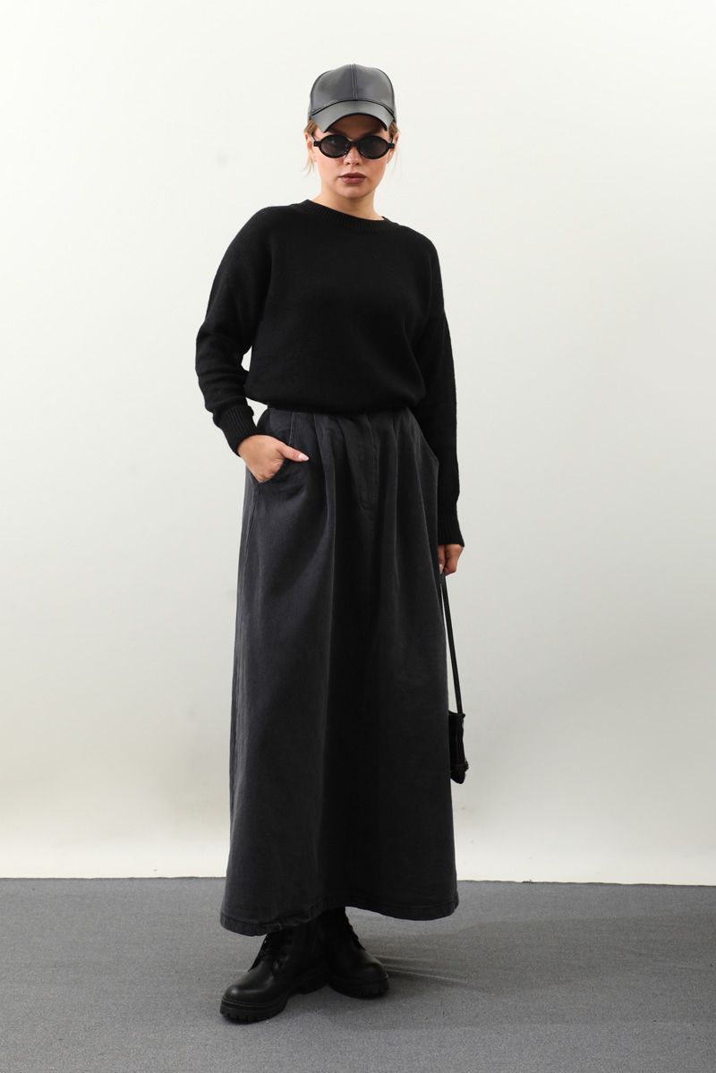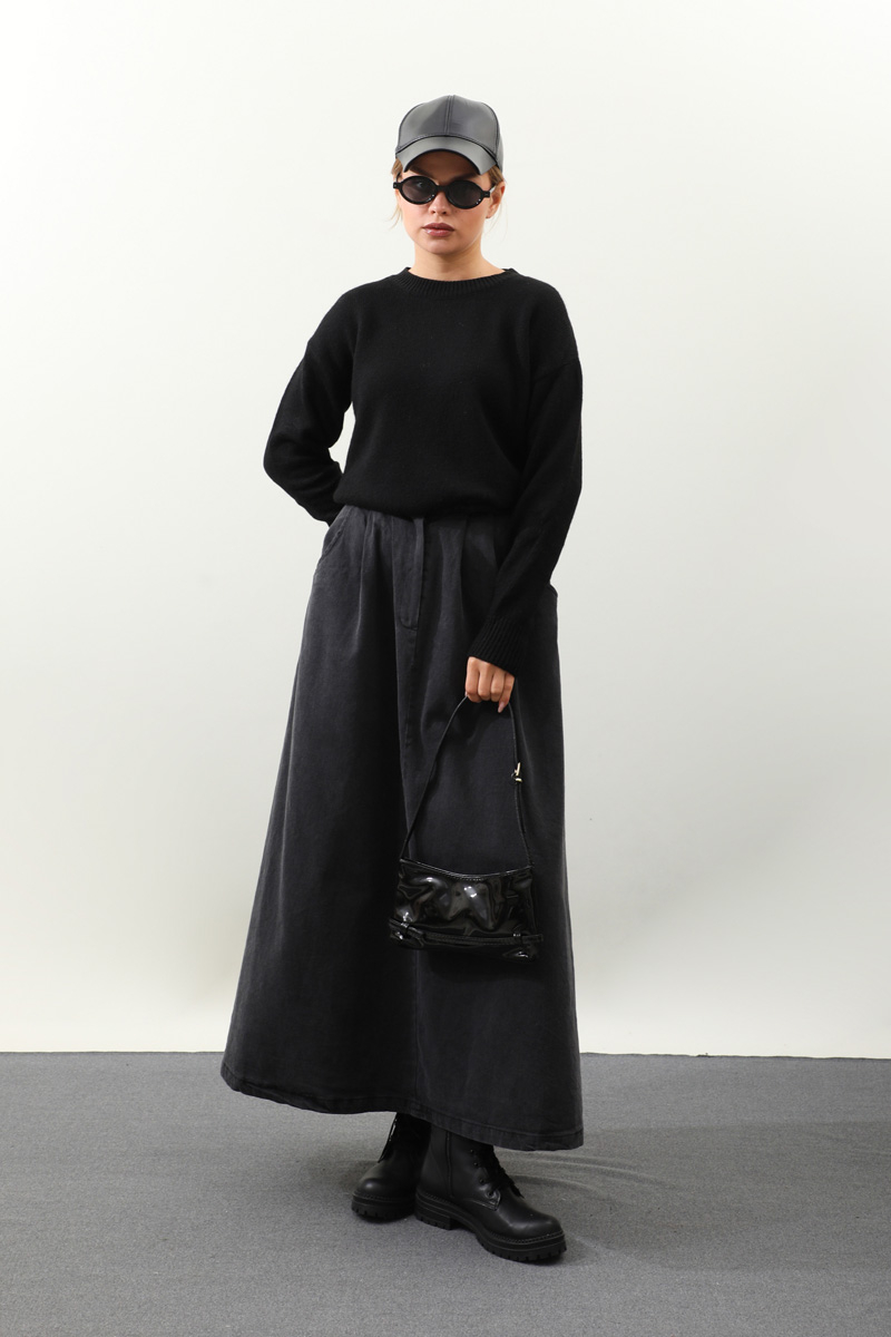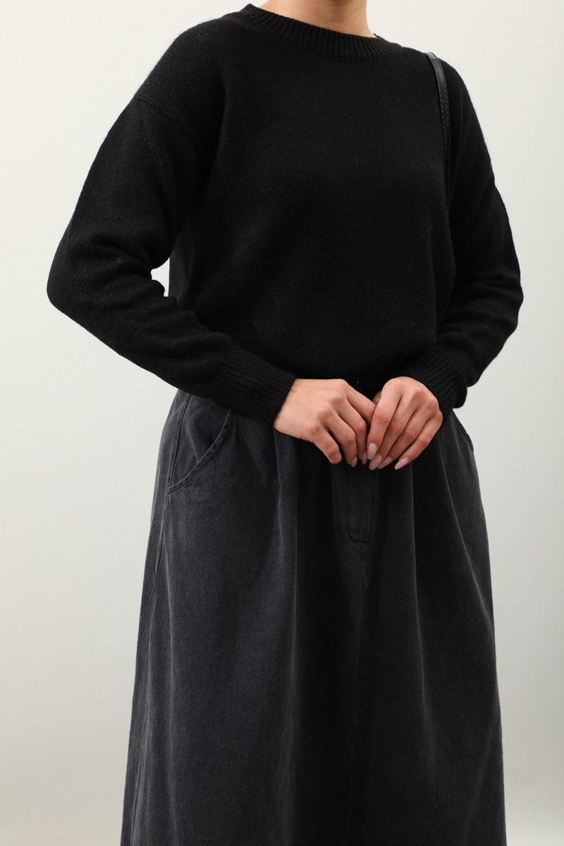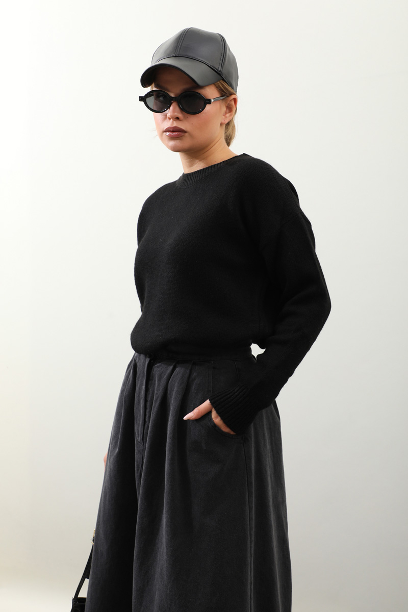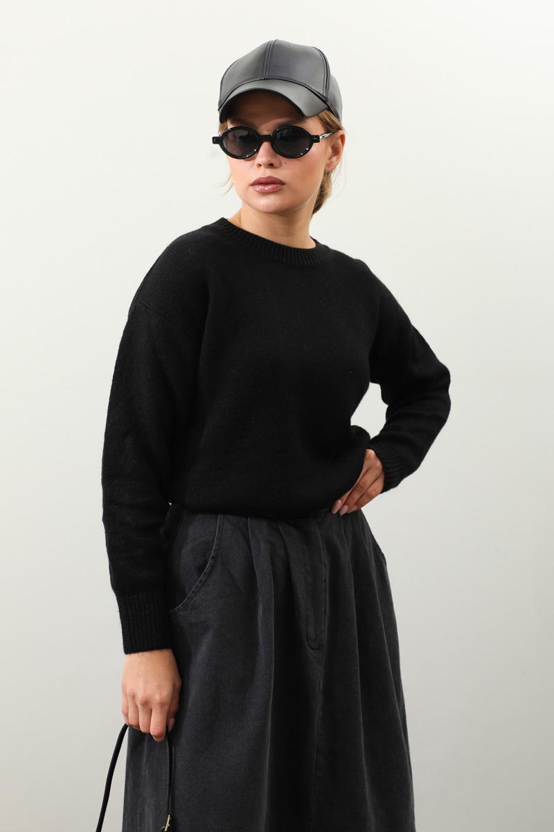 Önü Oval Kısa Kazak Siyah. Bisiklet yaka, düşük omuz, manşeti ve etek ucu ribanalı, önü oval gelmektedir. Günlük kullanım ve özel günlerinizde tercih edebilirsiniz.