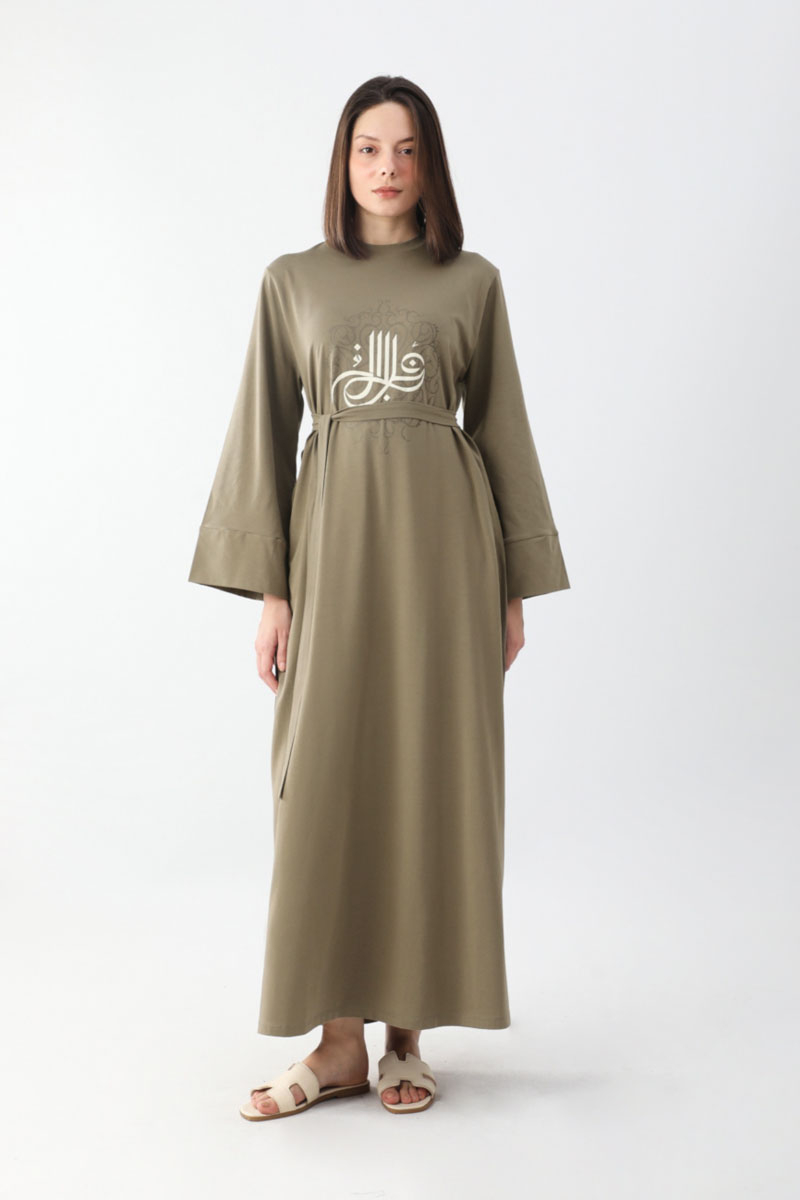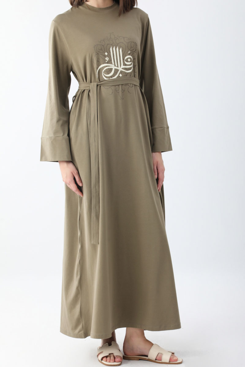 Osmanlı Baskılı Sweat Elbise Haki