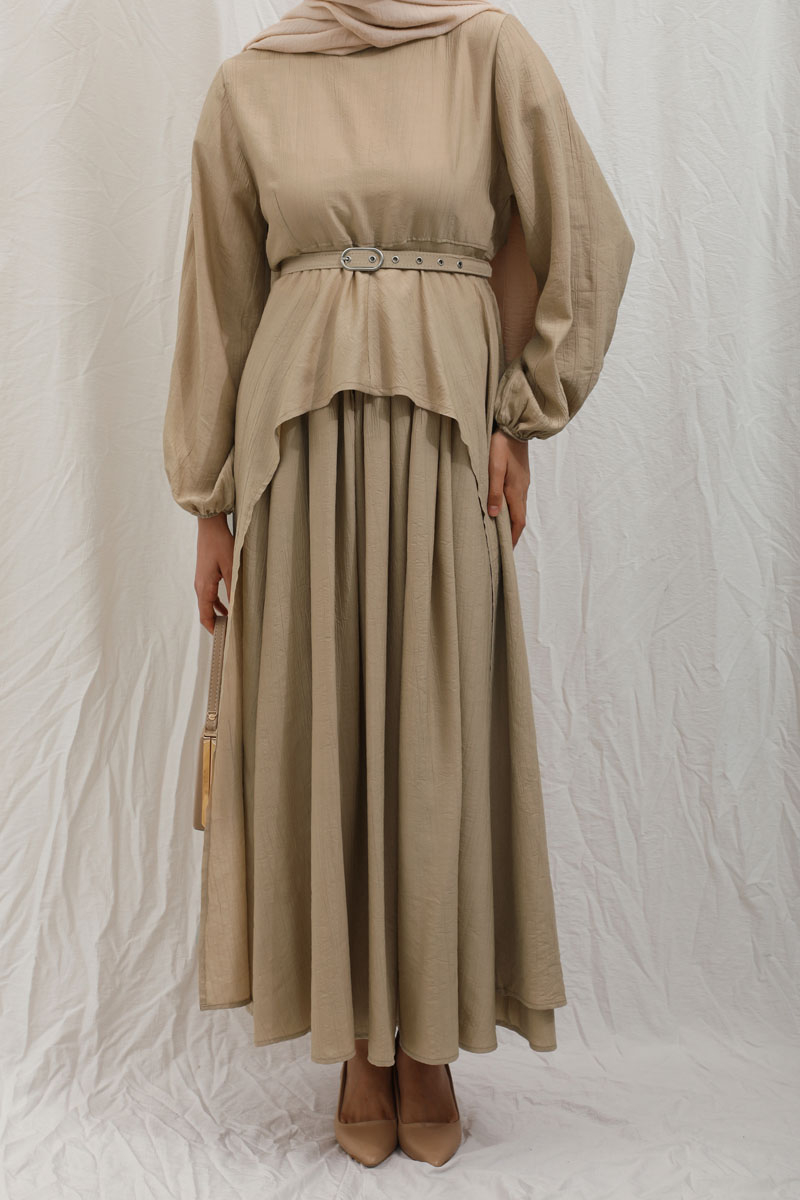 Oval Tunikli Etek Takım Camel