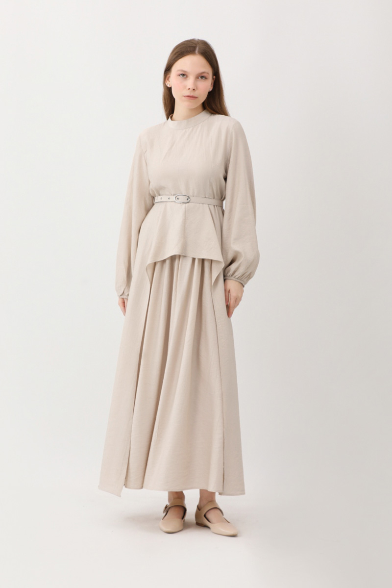 Oval Tunikli Etek Takım Krem