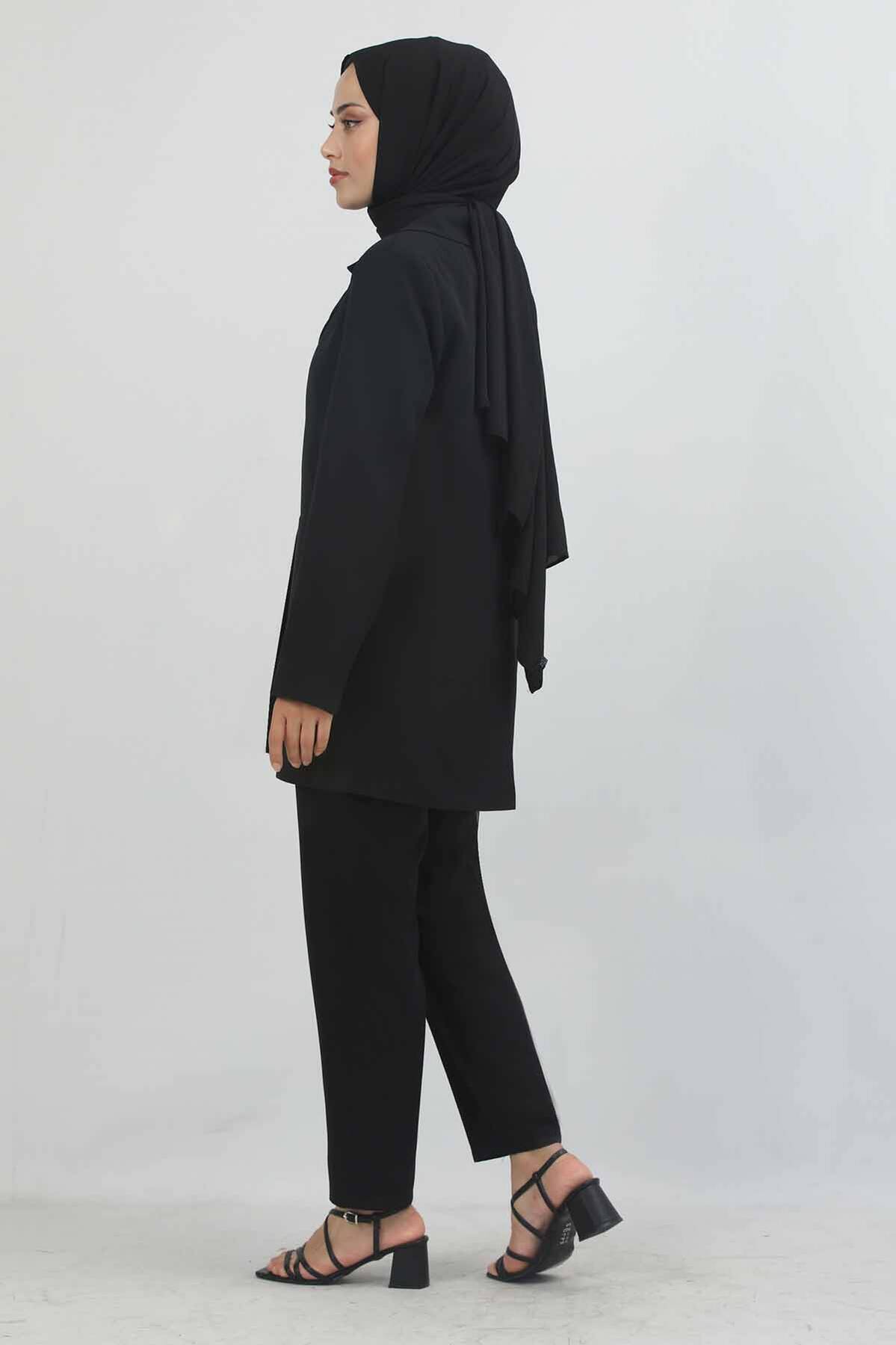 Kumaşı dabıldır. Esnek yapısı sayesinde kırışmaya dayanıklı ve nefes alıcı özelliğe sahiptir. Ağırlık yapmayan kumaş özelliği ile sık ve uzun süreli kullanıma uygundur. Ürünü dört mevsim kullanabilirsiniz. Son zamanların en sevilen trendleri arasında yer alan takımlar rahat ve şık kombinlerinizin aranan parçası olacak.