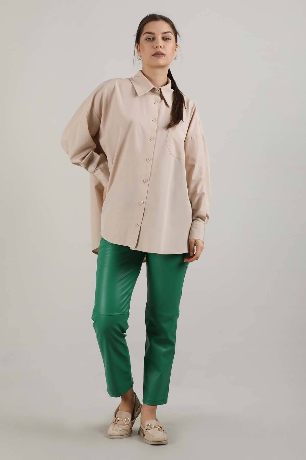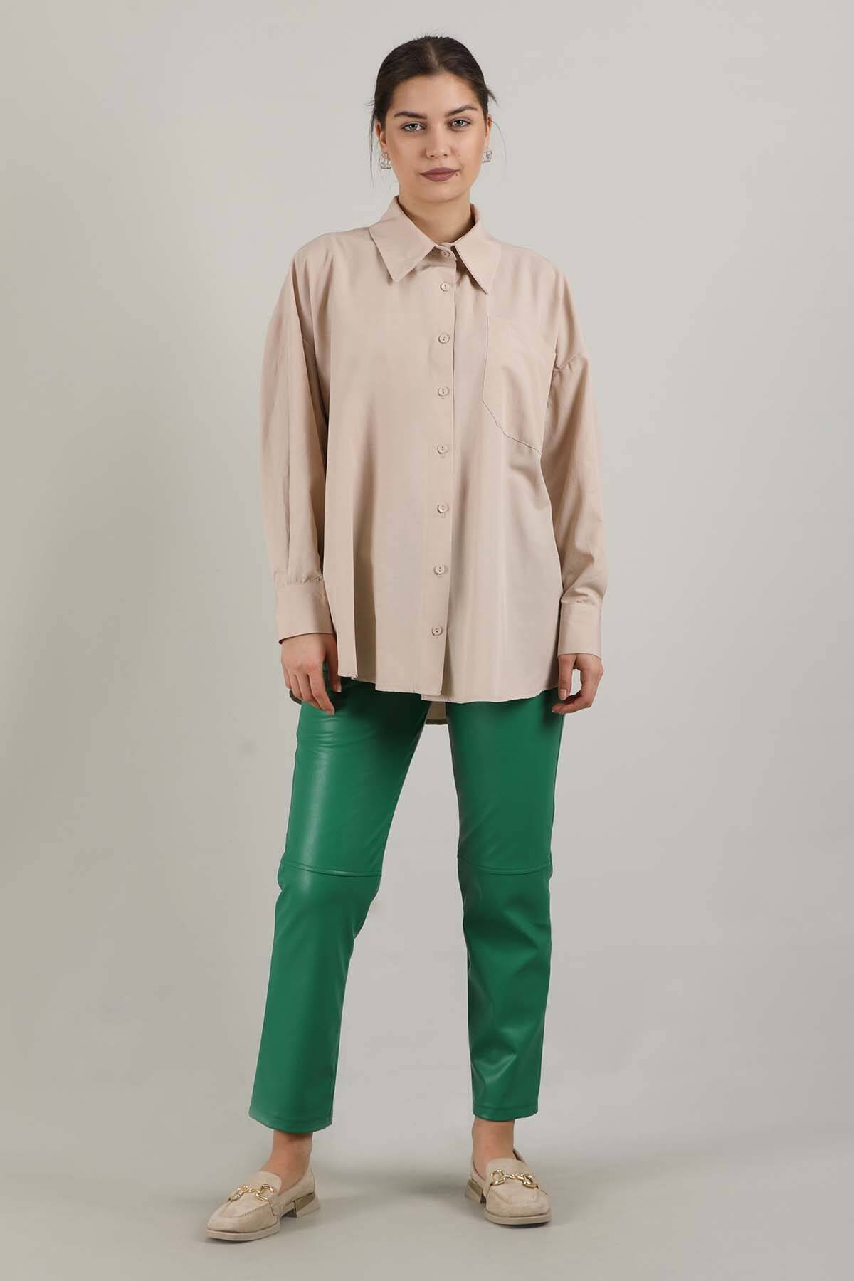 Oversize Cepli Gömlek Krem