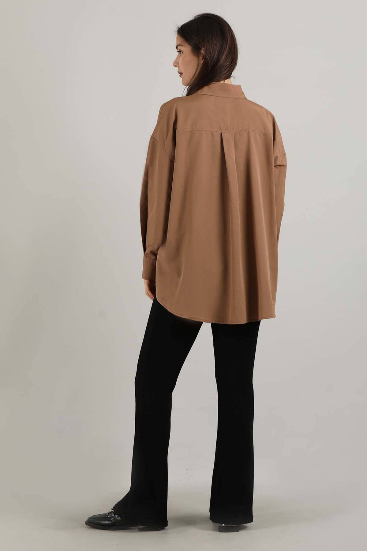 Oversize Cepli Gömlek Taba