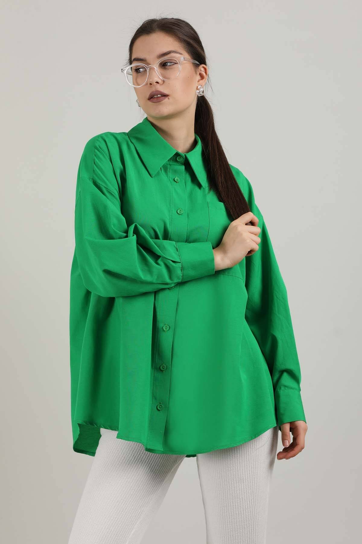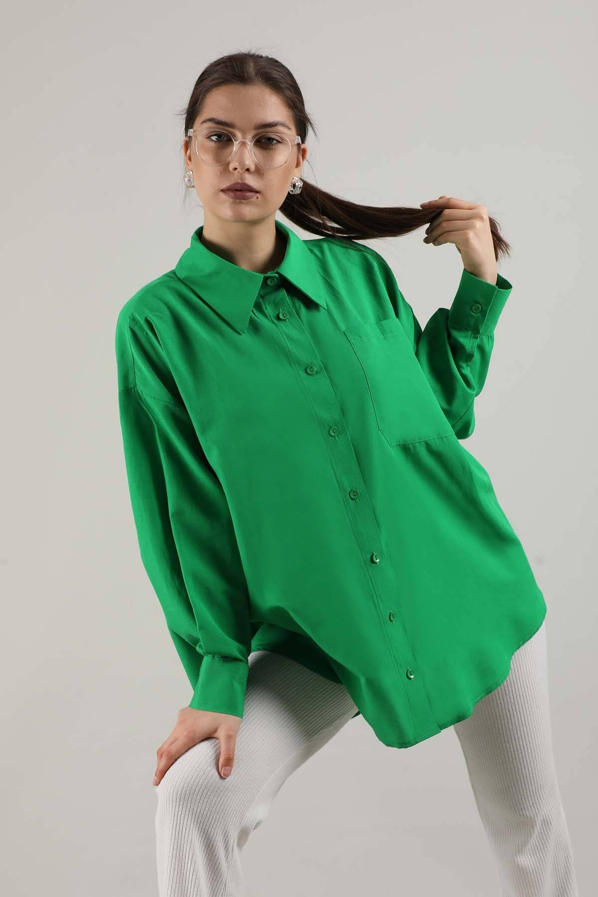 Oversize Cepli Gömlek Yeşil