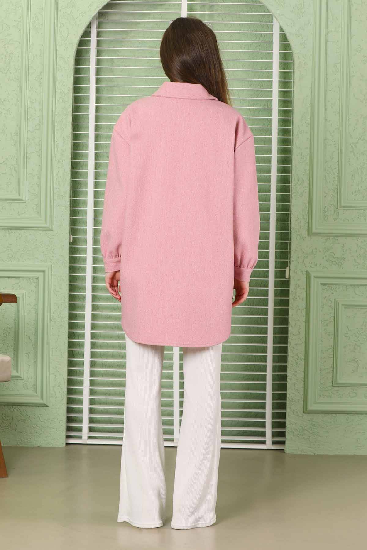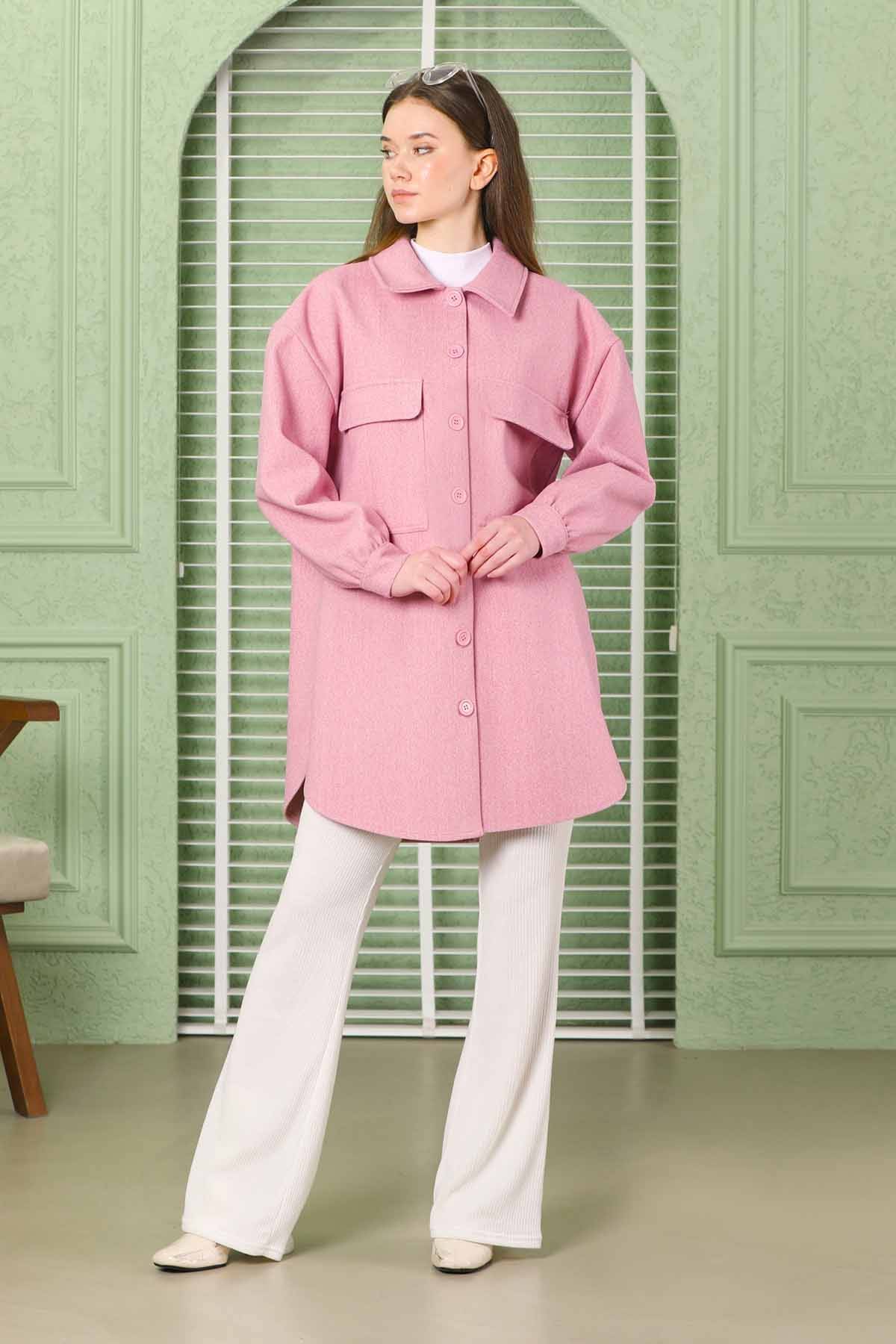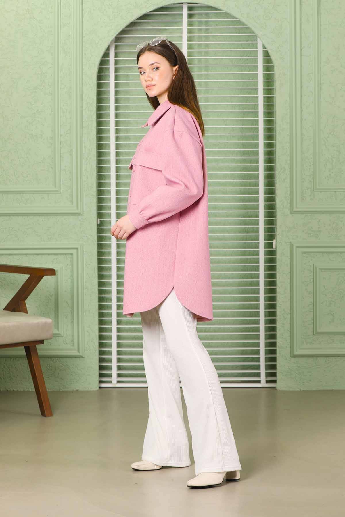 Oversize Gömlek Ceket Pembe. Gömlek yakalıdır, kapaklı cepleri mevcuttur, düşük omuzludur, kolunda manşet detayı bulunmaktadır. Astarsızdır.