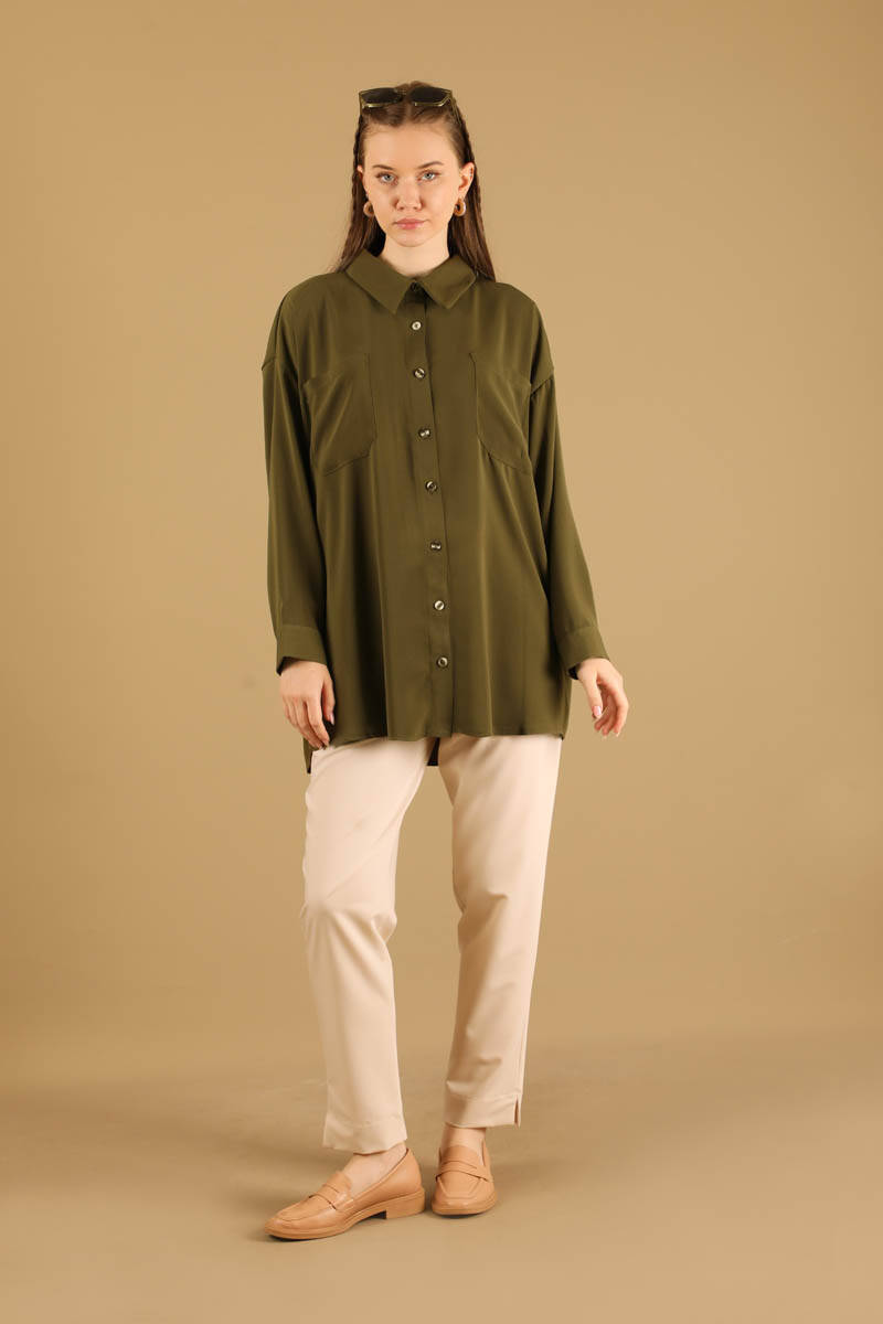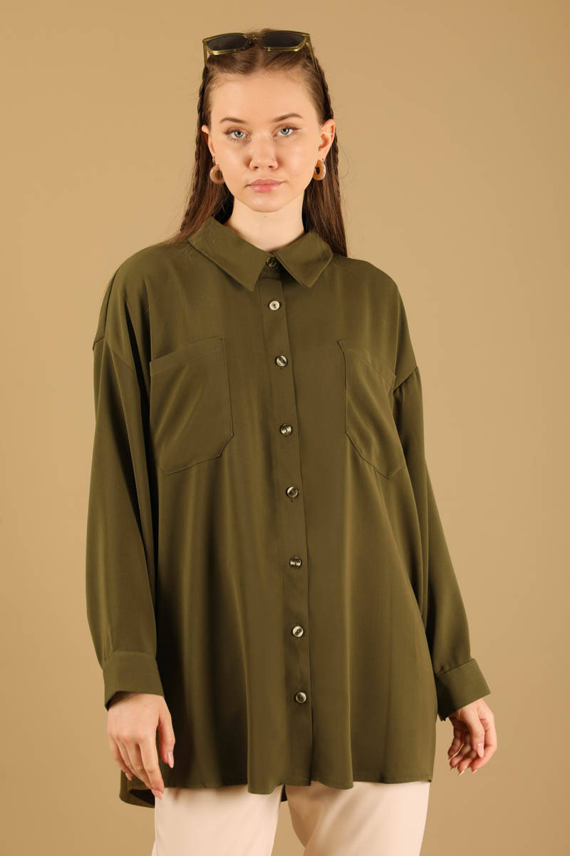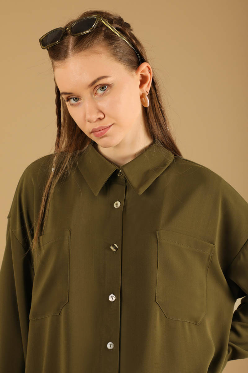 Shirt collar, Oversize, buttoned, Khaki Color, New Season product.