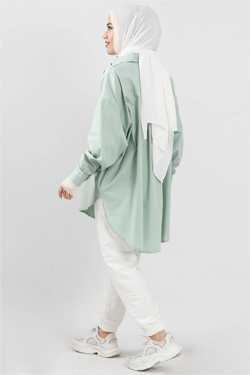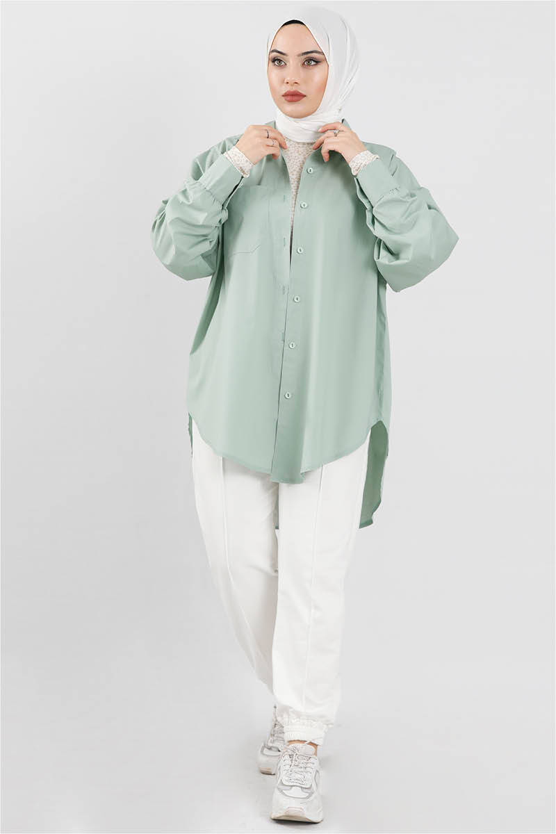 Önü kısa arkası uzundur. Oversize model. Düşük omuz.