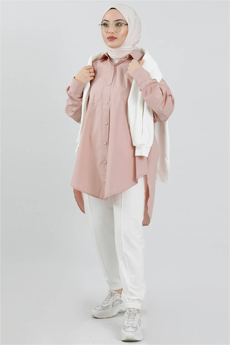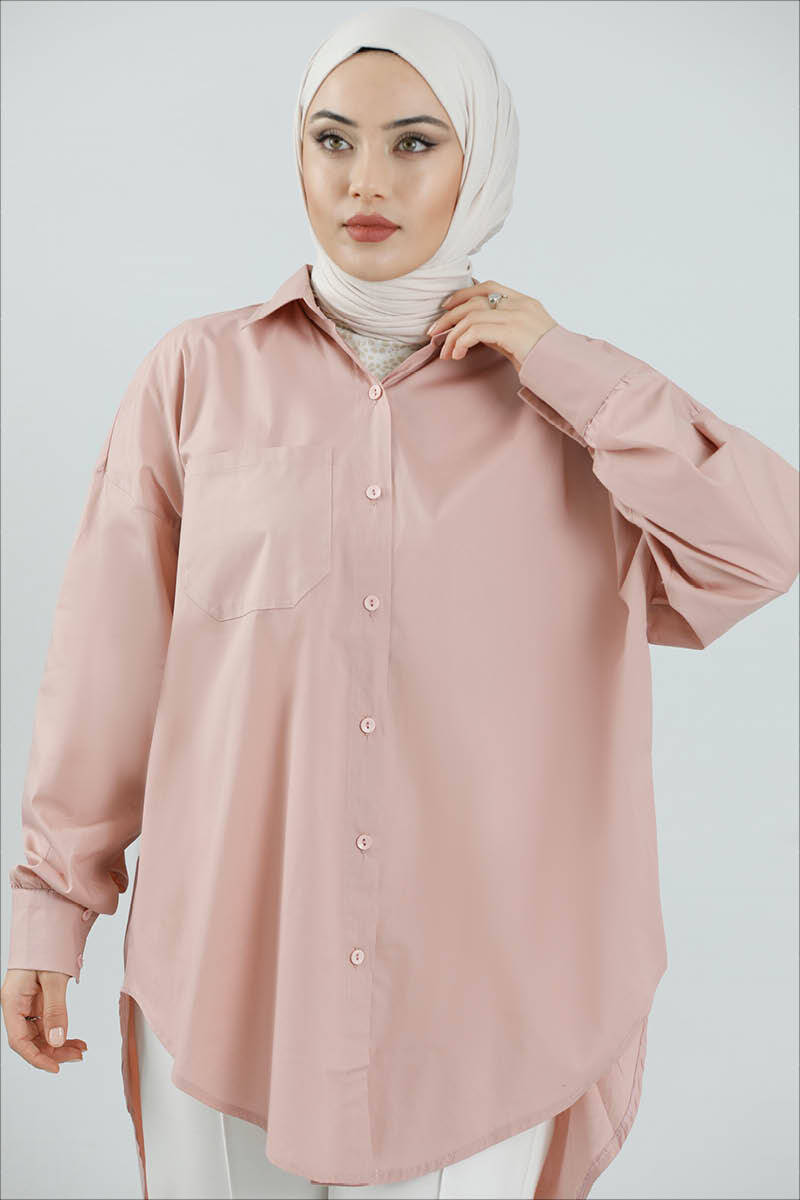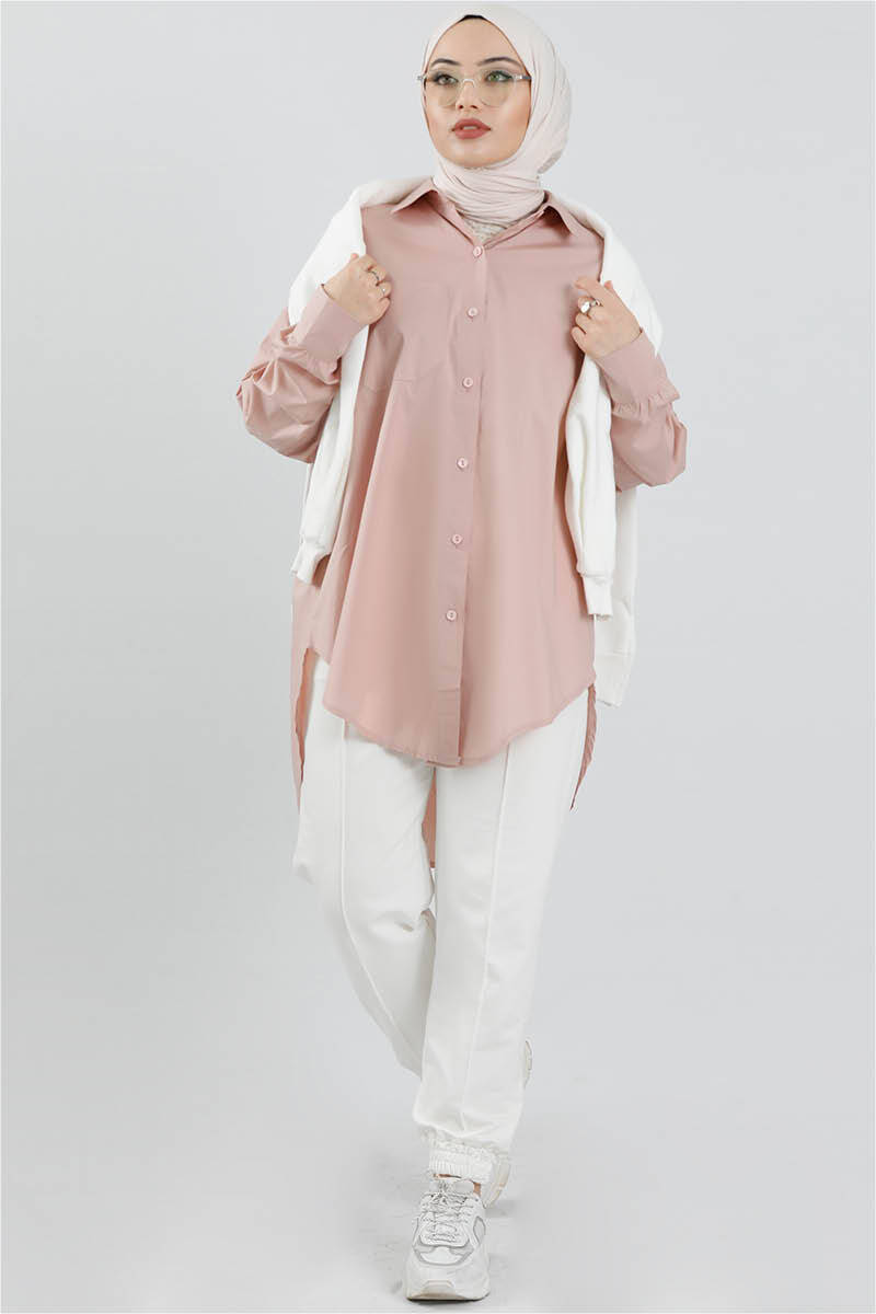 Oversize Gömlek Pudra Pembesi