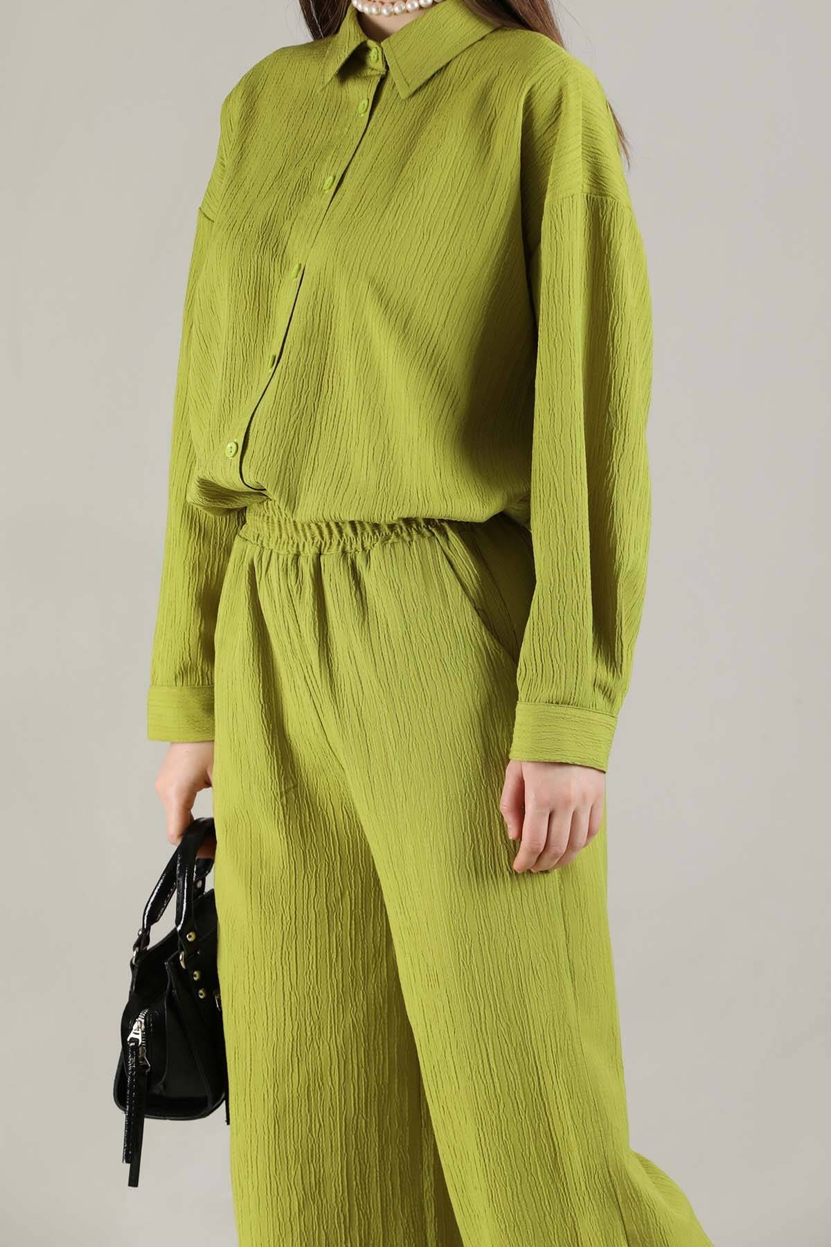 Oversize Gömlek Takım Yağ Yeşili