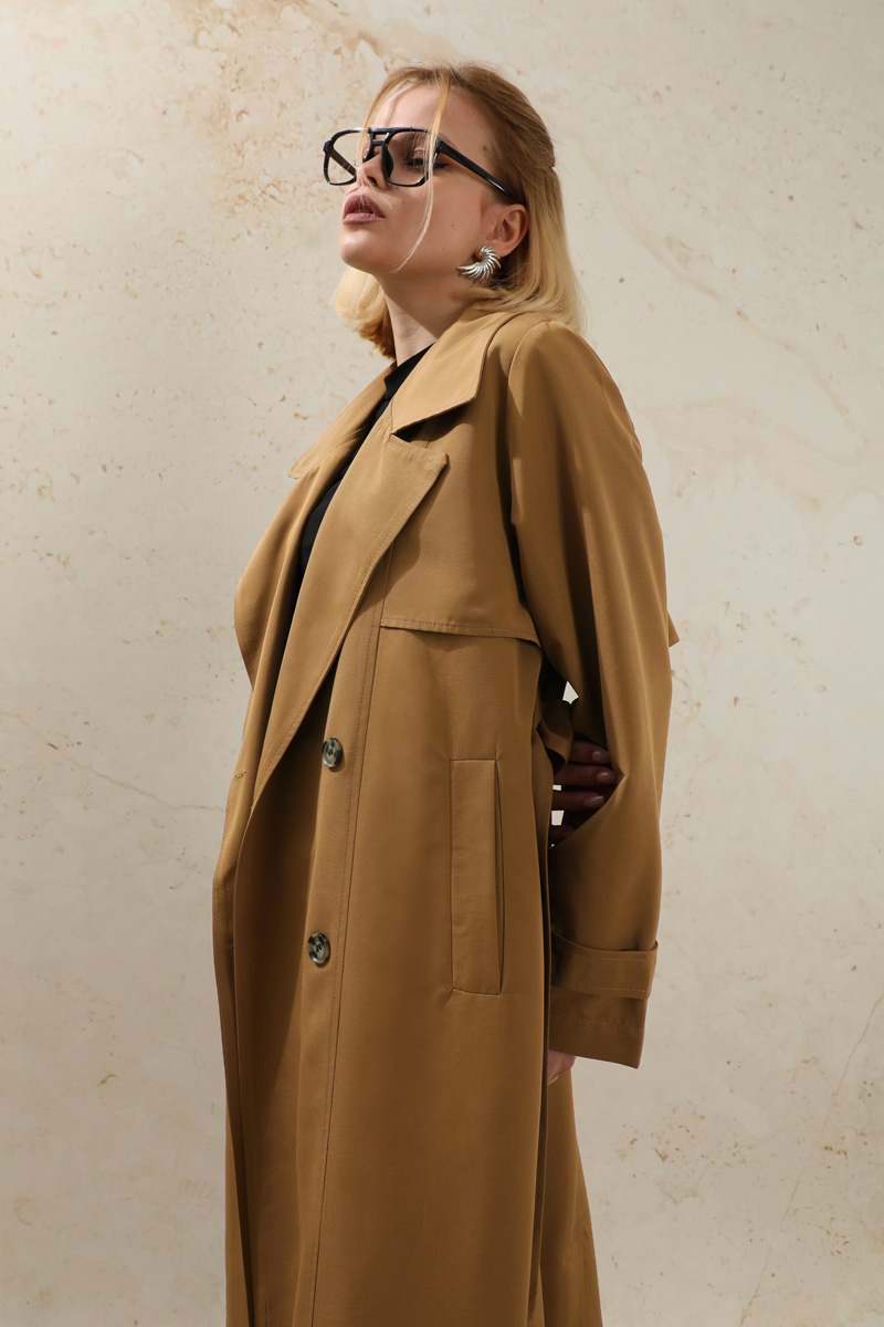 Oversize Kruvaze Trençkot Taba