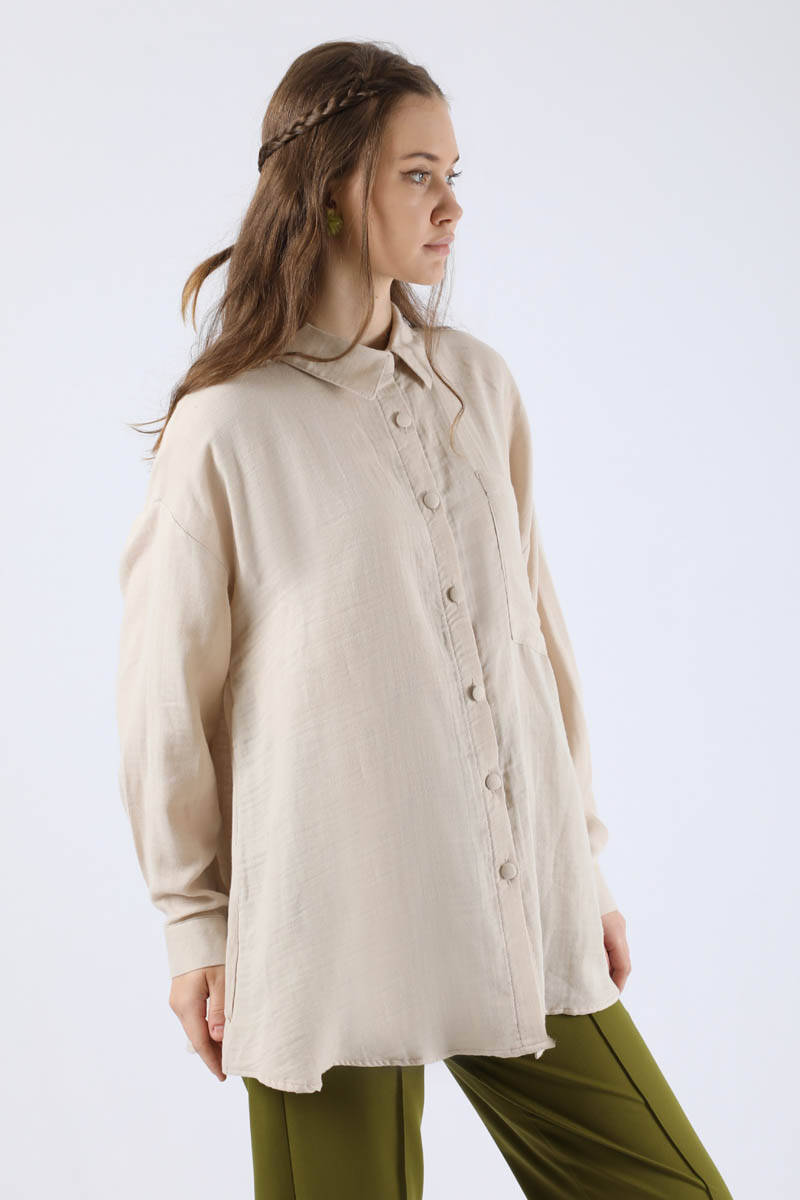 Oversize Müslin Gömlek Kemik. Cep detaylıdır. Kolu manşetlidir. Düşük omuzludur. Kaplama düğme detaylıdır. Arkadan pile detaylıdır. Günlük kullanım ve özel günlerinizde tercih edebilirsiniz.