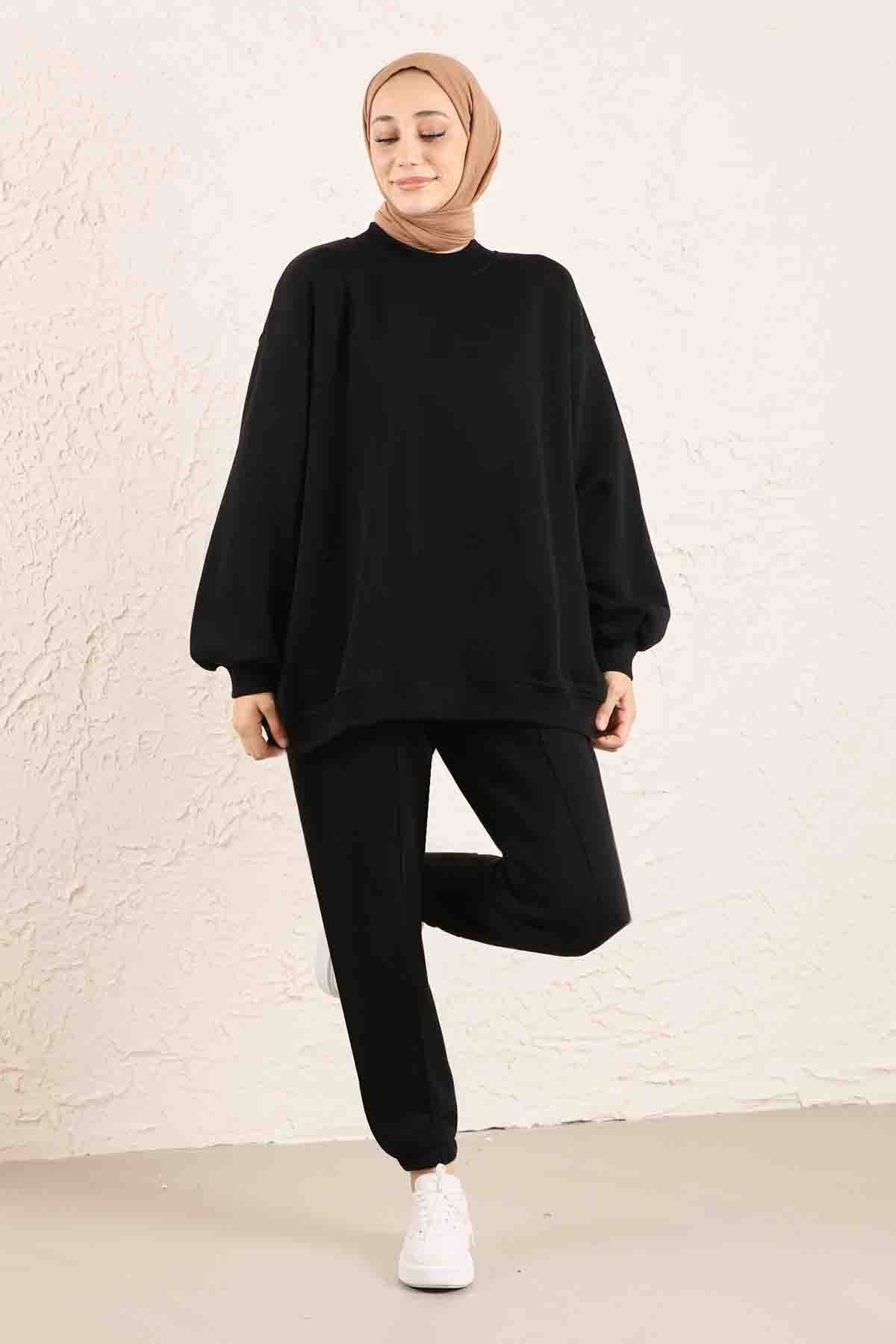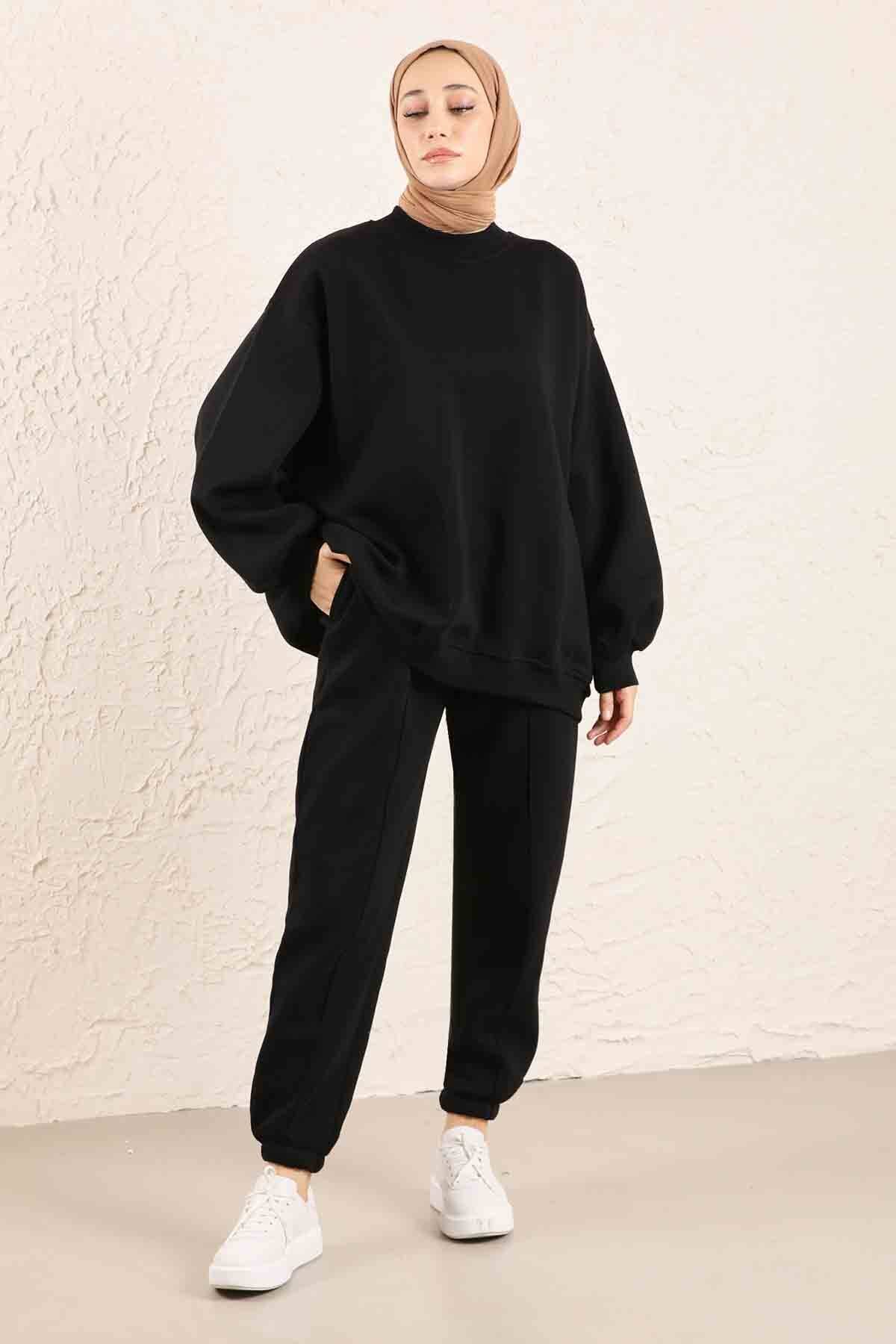 Oversize Plain Sweat Black. Sweat collar is ribbed. It is an oversized pattern.