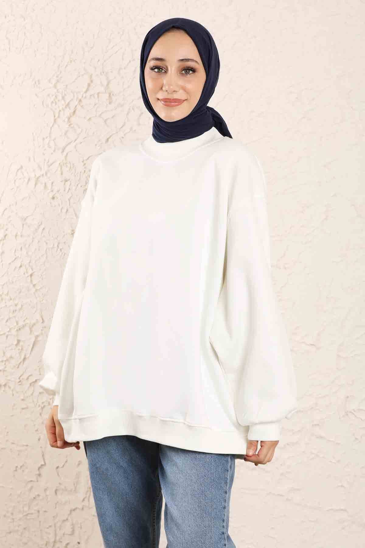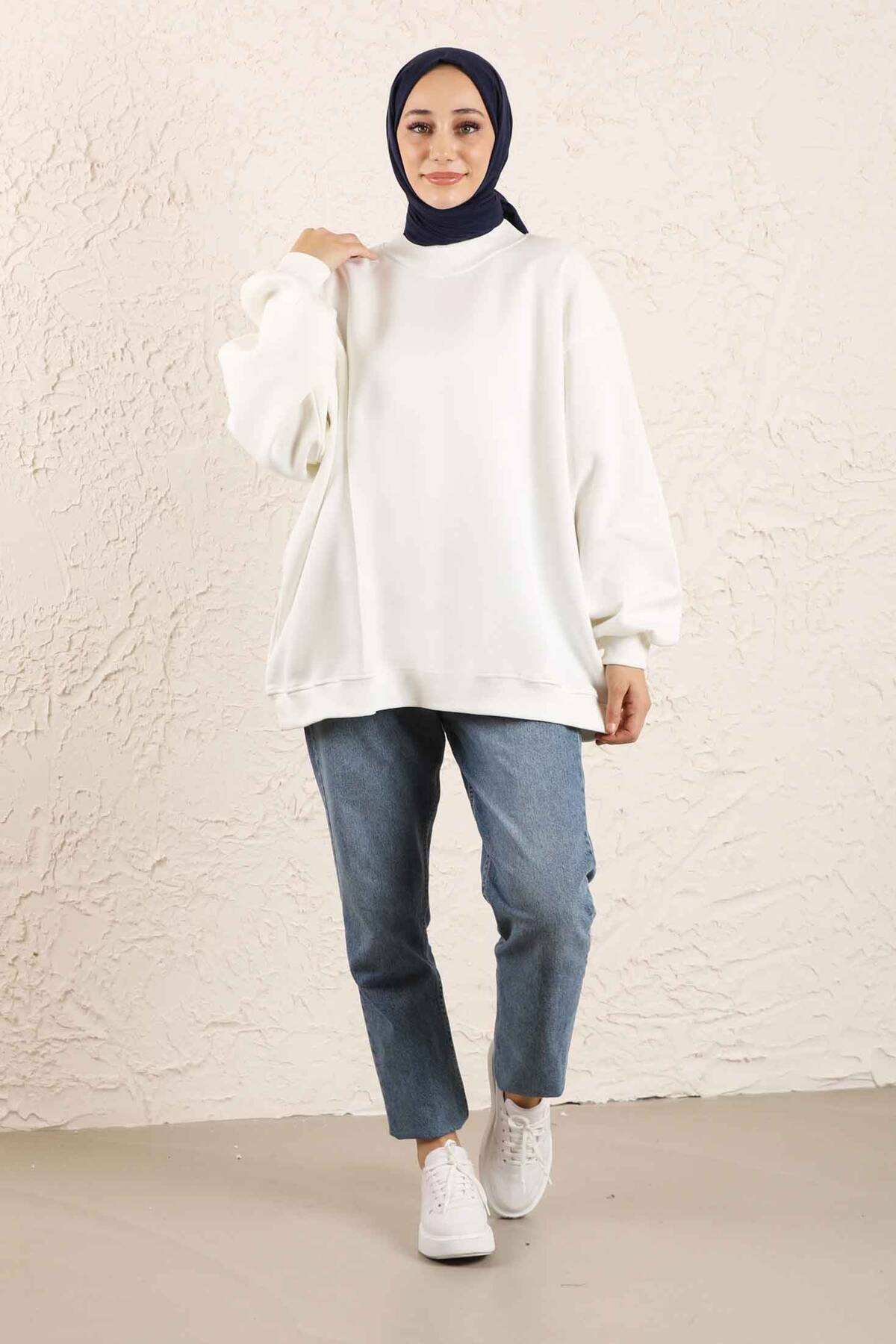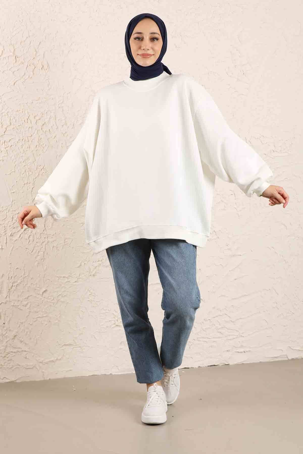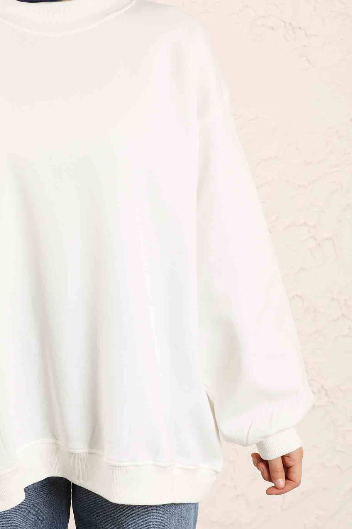 Oversize Plain Sweat White. Sweat collar is ribbed. It is an oversized pattern.