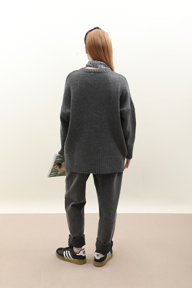 Oversize Ribanalı Kazak Bordo. Bisiklet yaka, düşük omuzlu, manşeti ve etek ucu fitilli örme ribanadır, önden taşlı düğmeleri mevcut. Etek, elbise ve pantolon üzerine tercih edilebilir. Kış aylarında tercih edebilirsiniz.