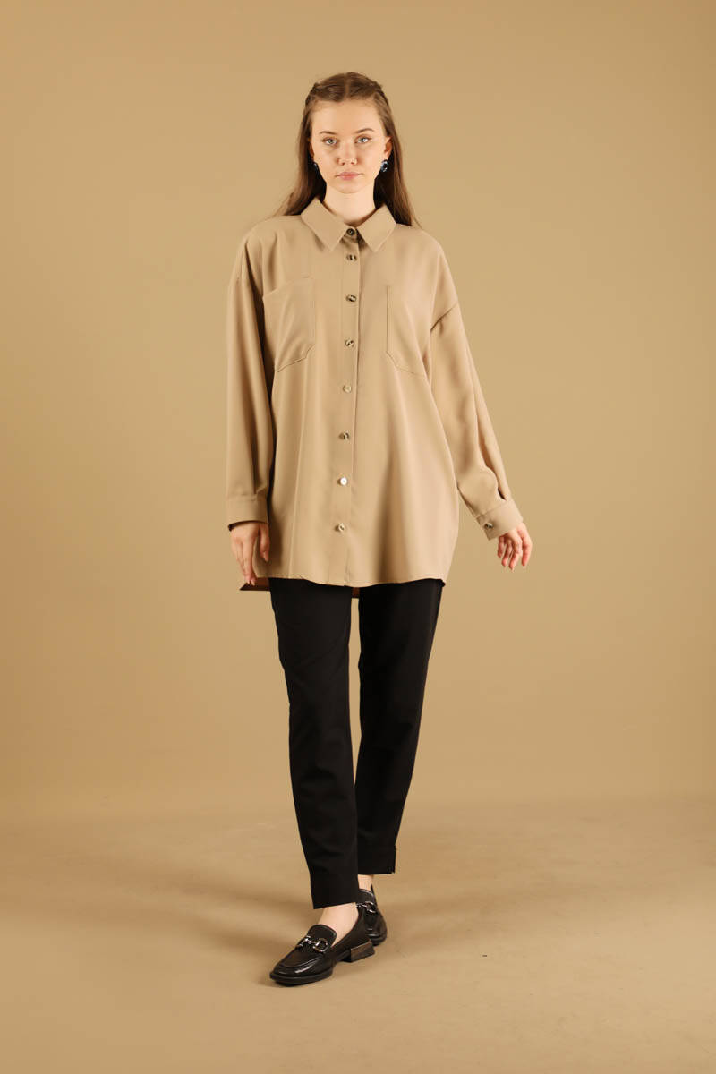 Shirt collar, Oversize, buttoned, Beige Color, New Season product.