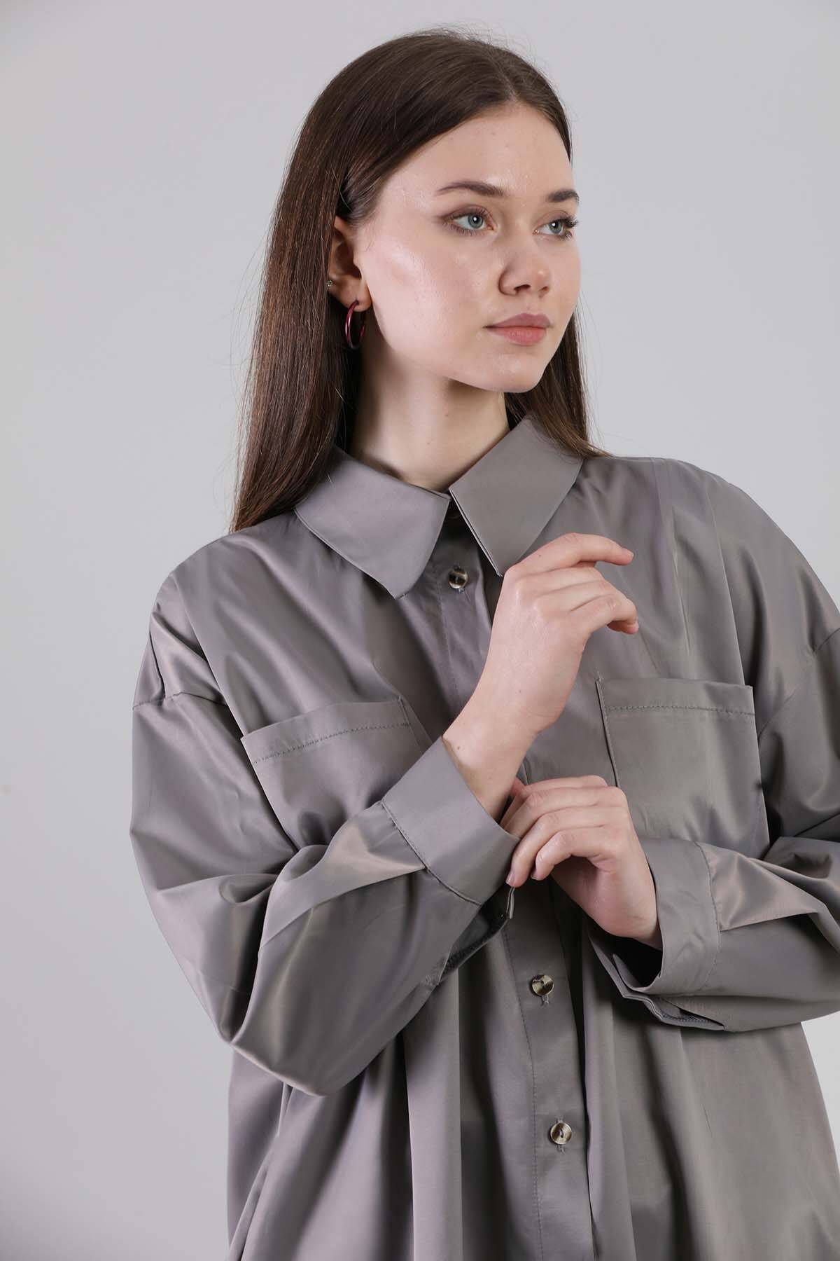 Shirt collar, Oversize, buttoned, Gray Color, New Season product.