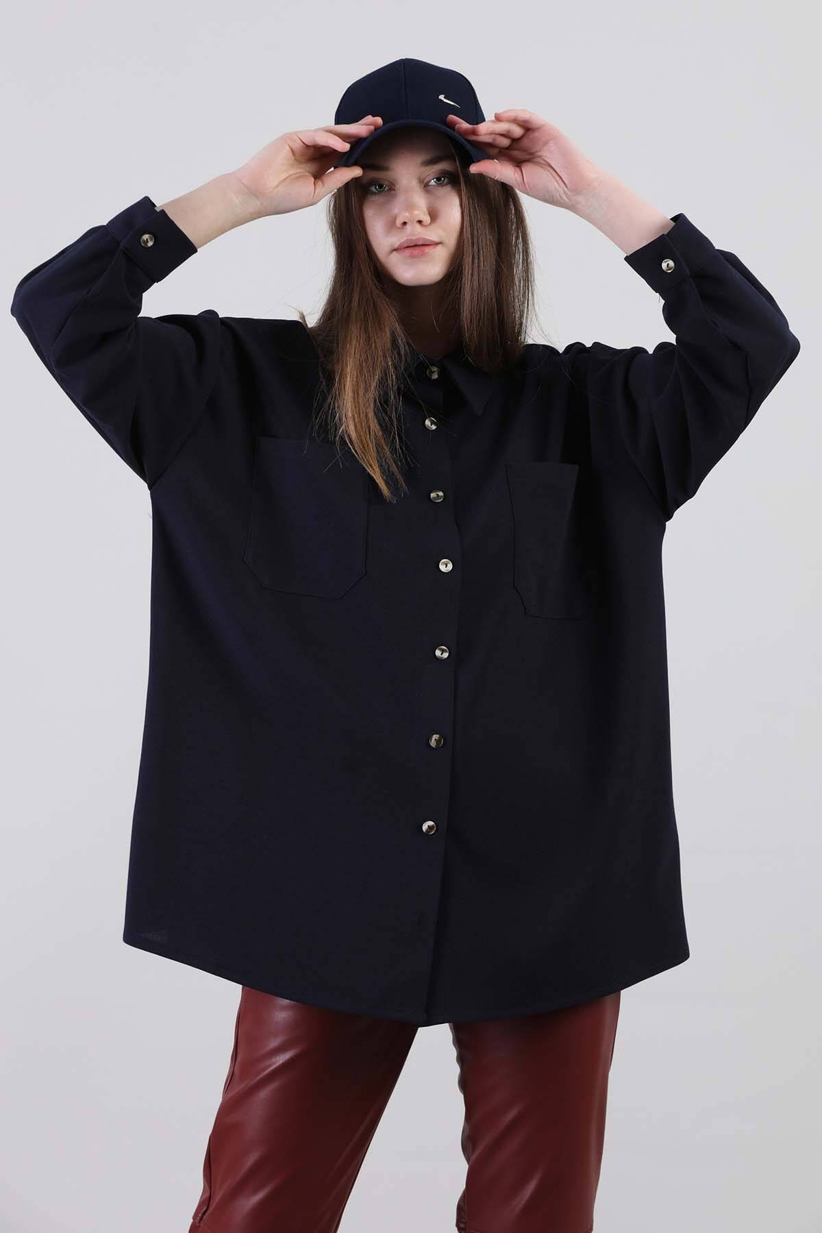 Shirt collar, Oversize, buttoned, Navy Color, New Season product.