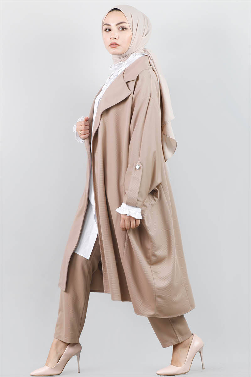 Önden düğmesizdir kolda düğme detayı bulunmaktadır.