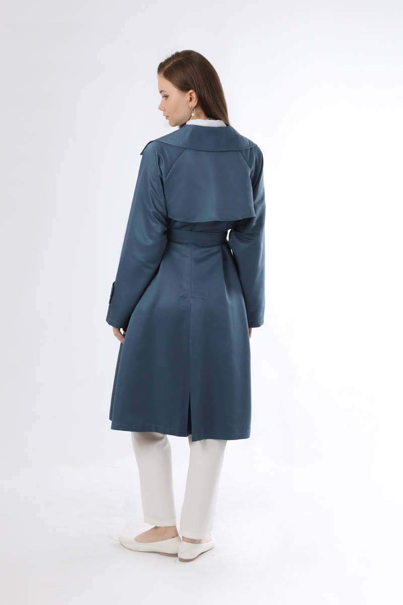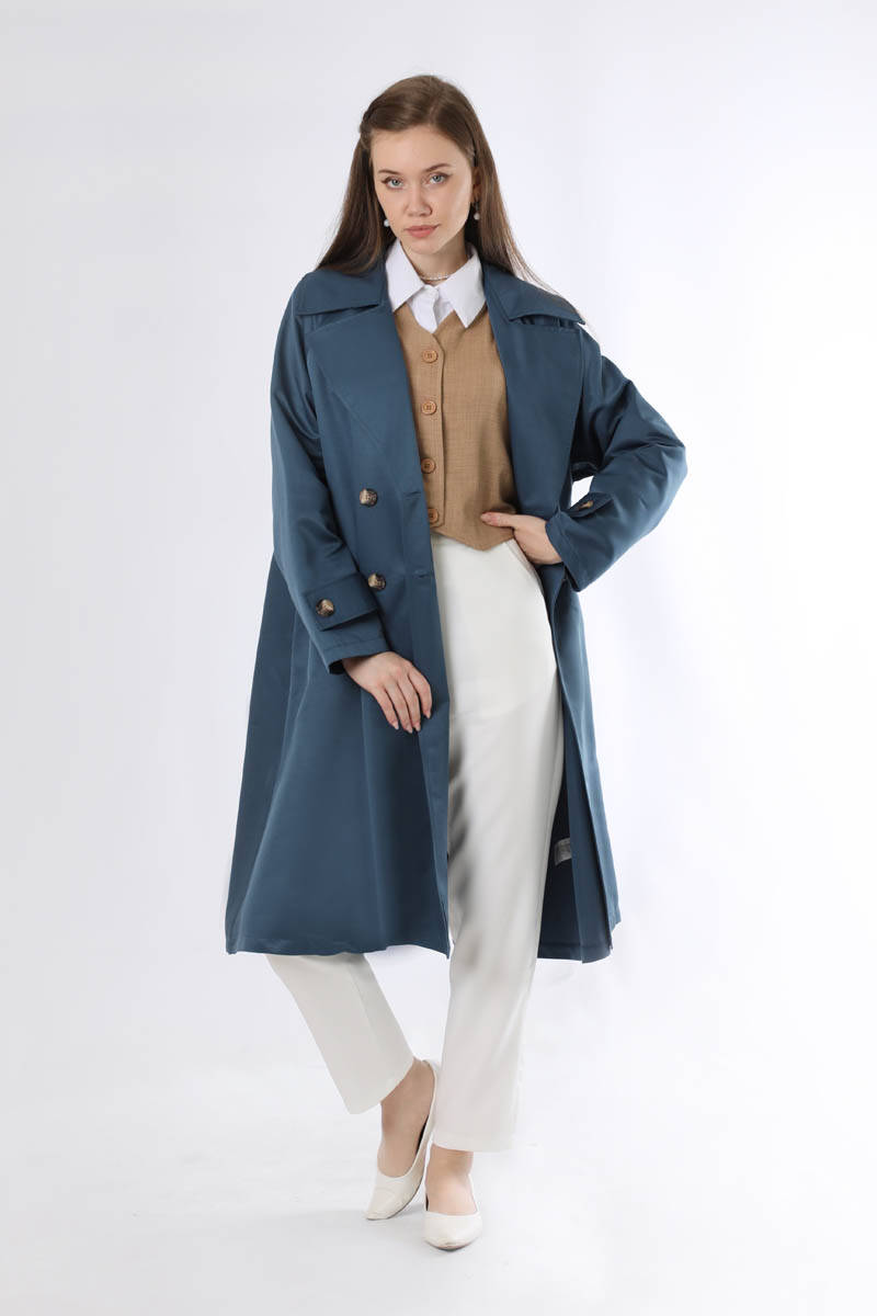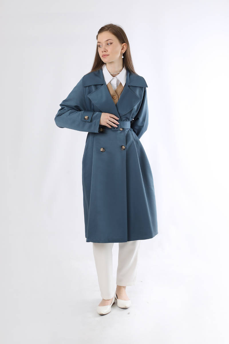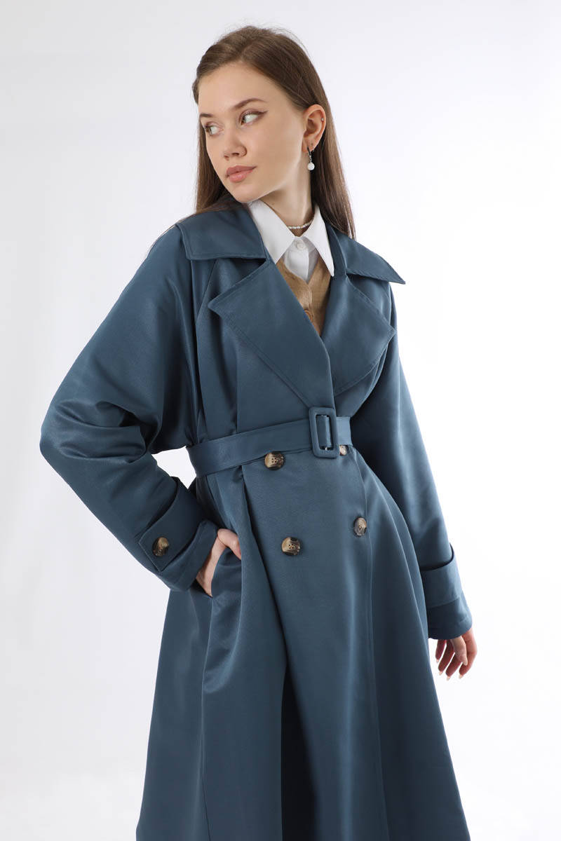 Oversize Trençkot İndigo