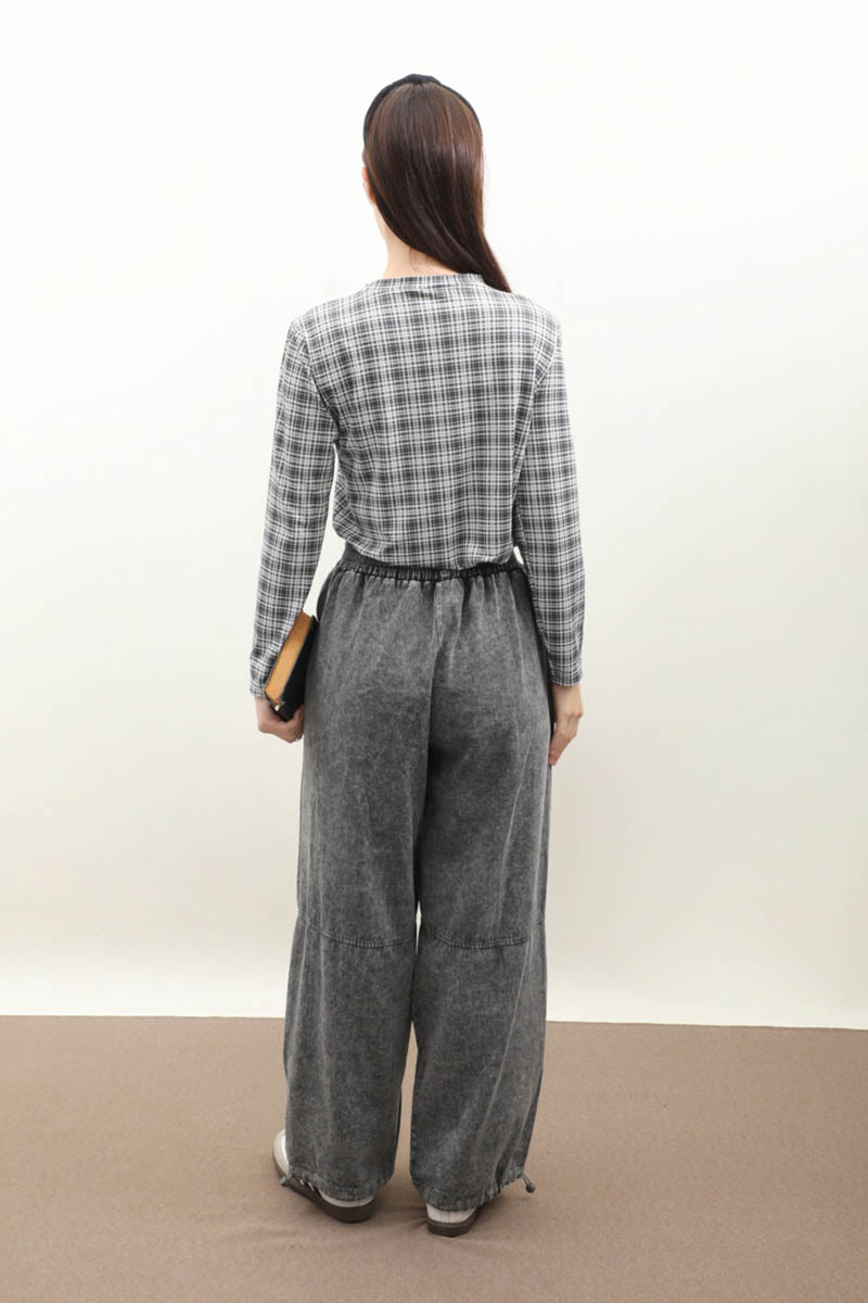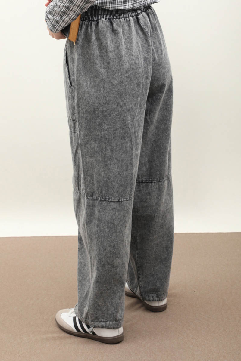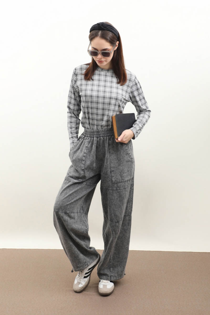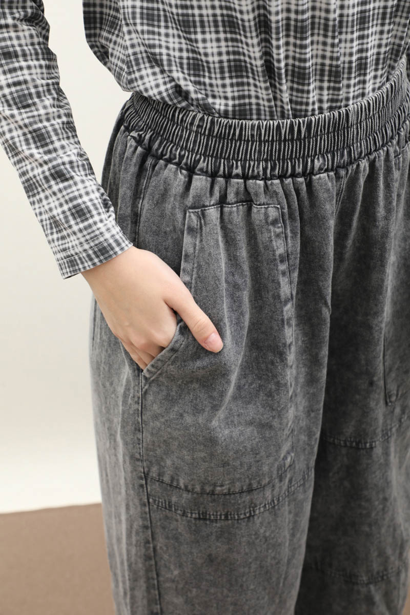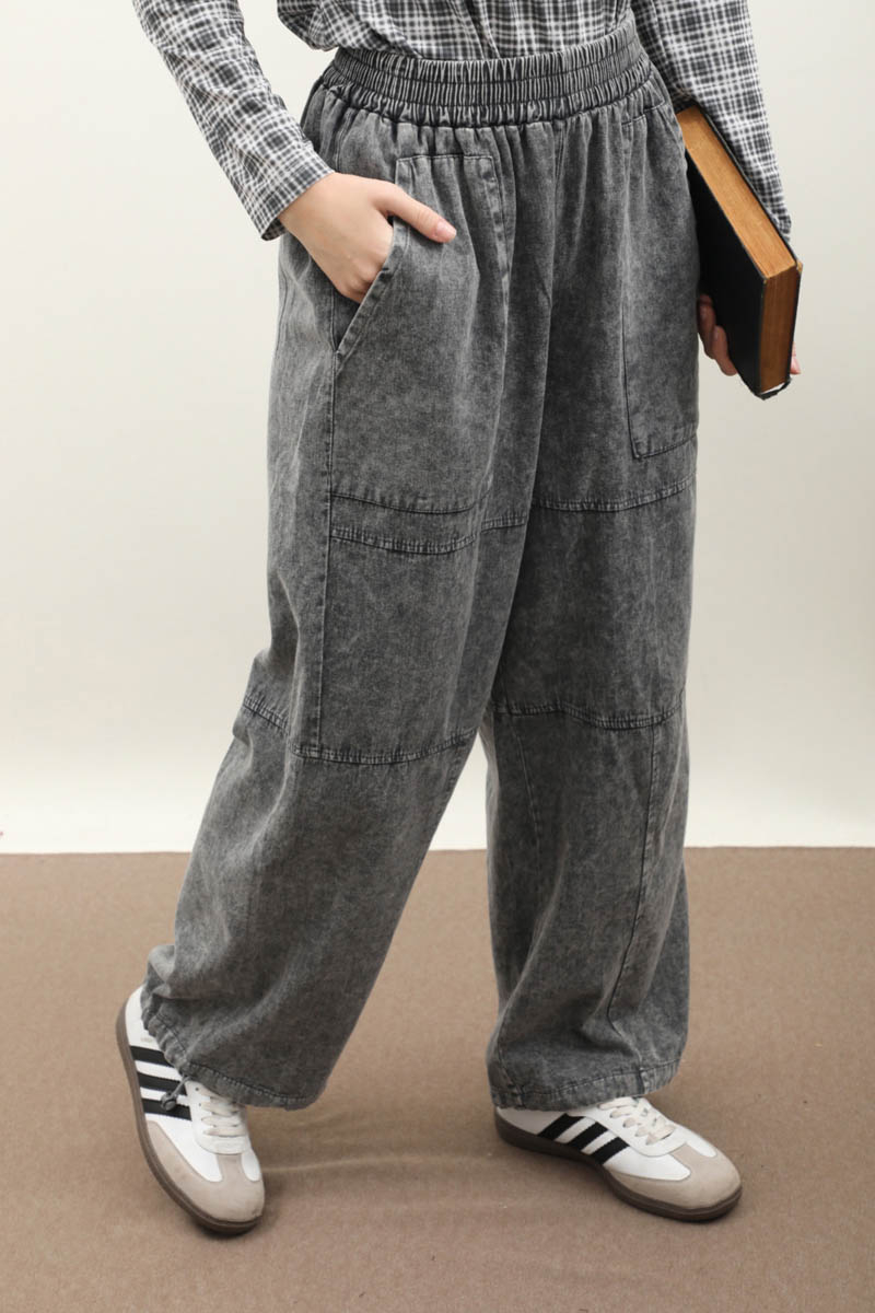Paçası Lastikli Bol Pantolon Yıkamalı Antrasit. Yüksek beldir, belden lastiklidir, bol paçadır, dikiş parça detaylıdır, önden ceplidir, düğmesiz ve fermuarsızdır, Günlük kullanım ve özel günlerinizde tercih edebilirsiniz.