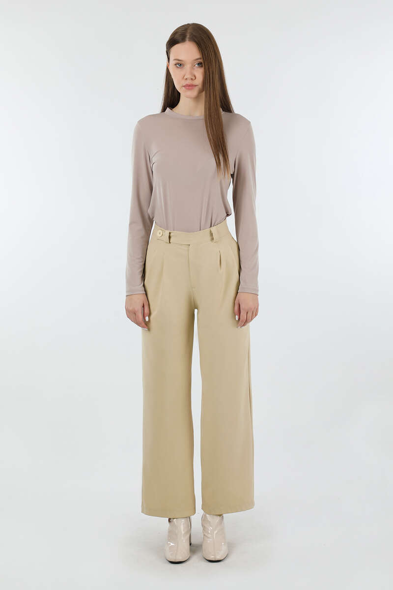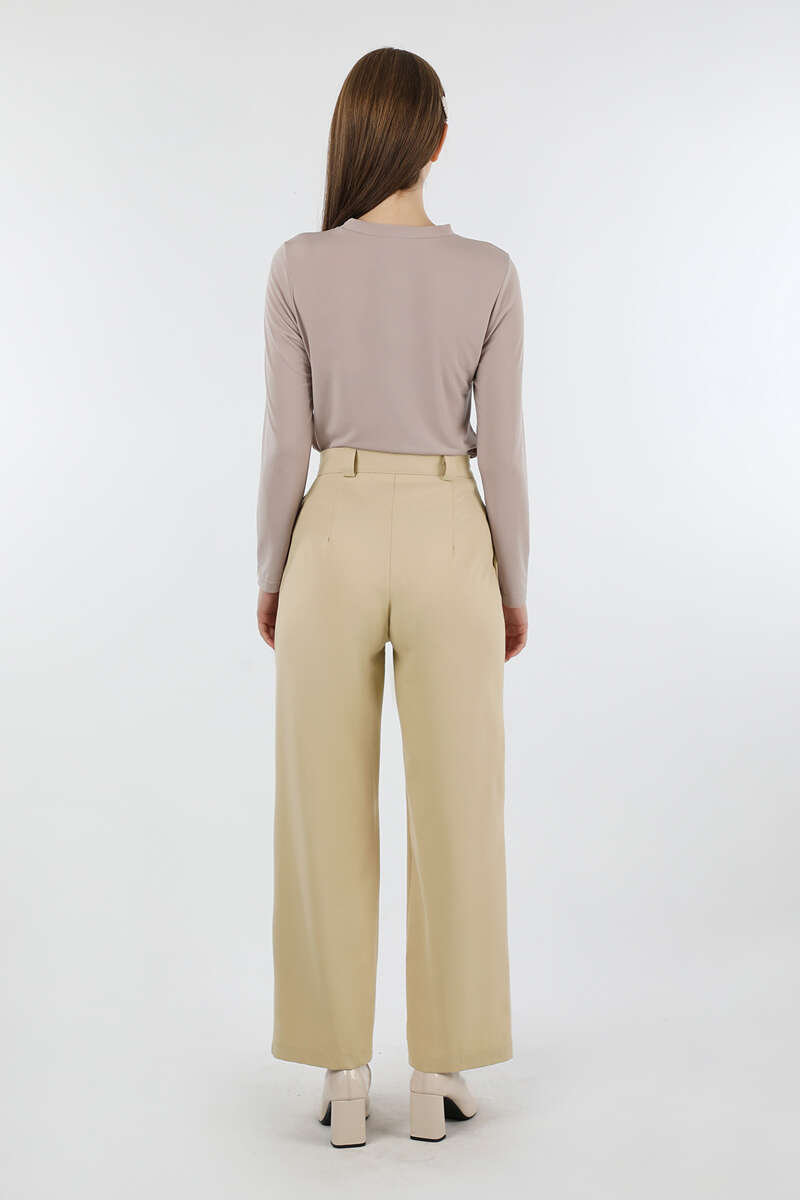 Palazzo Pantolon Taş. Bol paçadır. Önden İki adet pile detayı mevcuttur. Kemer köprülü ve yandan ceplidir. Önü fermuarlıdır. Günlük kullanım ve özel günlerinizde tercih edebilirsiniz.