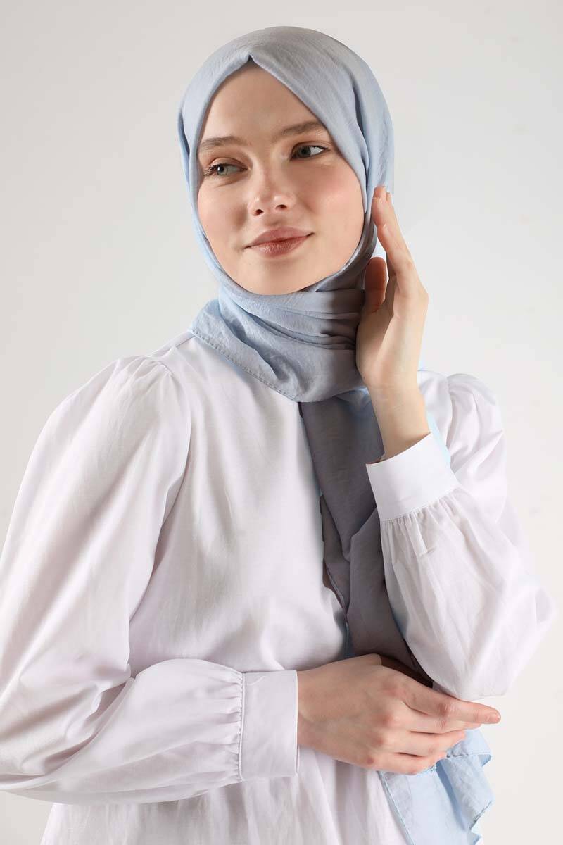 Pamuk Şal Pastel Mavi, 4 mevsim kullanıma uygun olmakla birlikte, Pamuksu dokusu sayesinde başınızda ağırlık yapmaz. Dokusu yumuşak ve ipeksidir. Önü kolay şekil alır.
