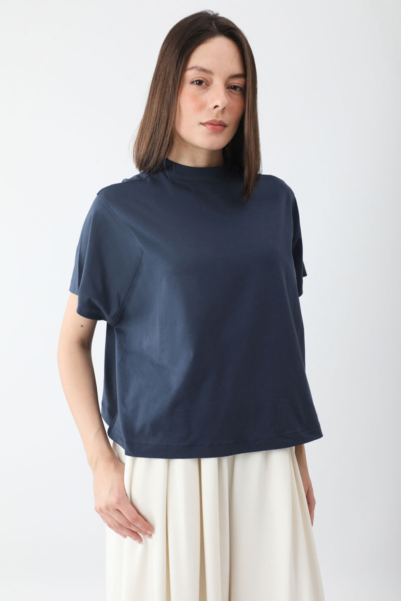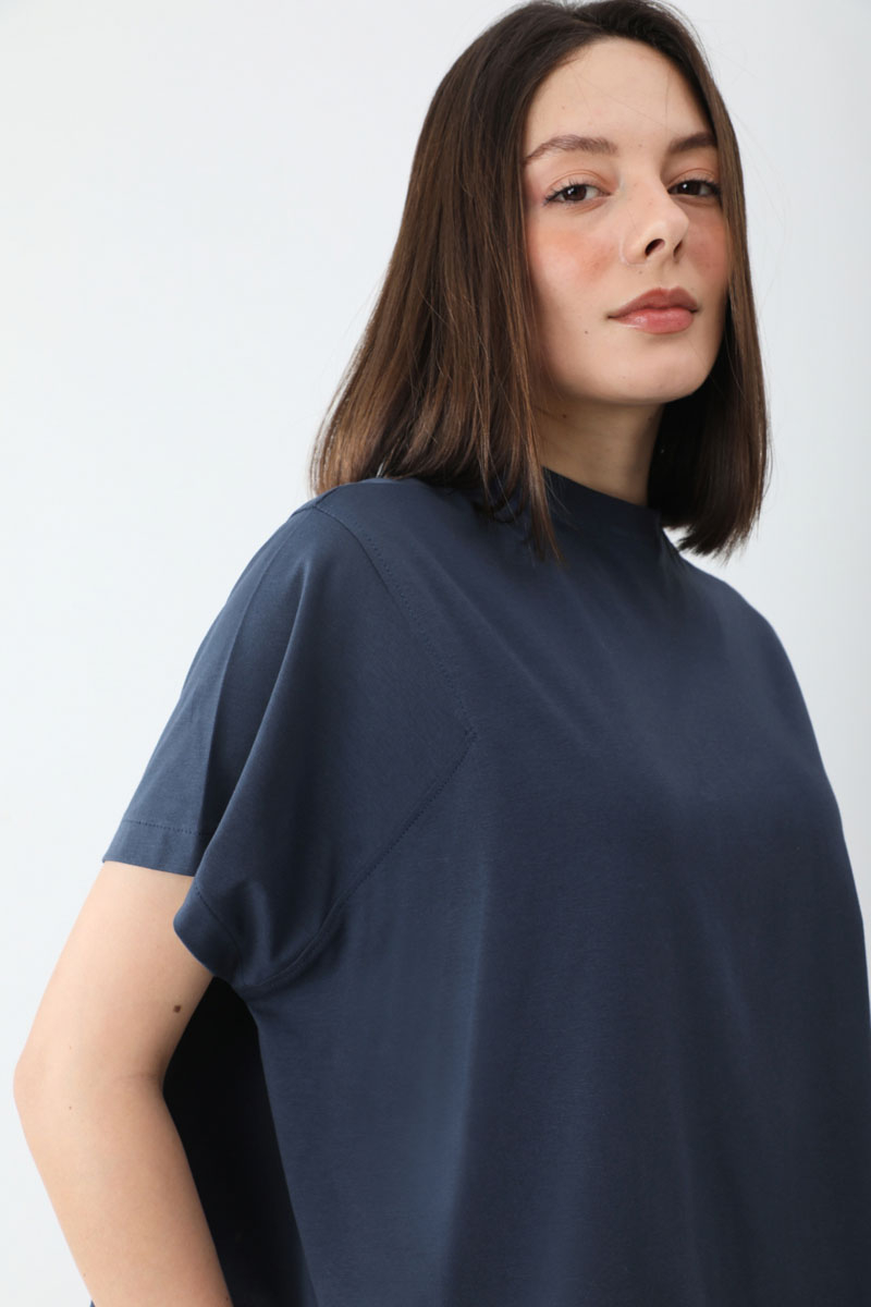Pamuklu Kısa Kollu Tişört Lacivert. Bisiklet yakadır, omuzdan üçgen dikiş detaylıdır, kısa kolludur, geniş kalıptır, bGünlük kullanımda tercih edebilirsiniz.