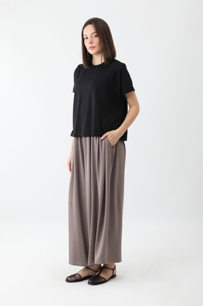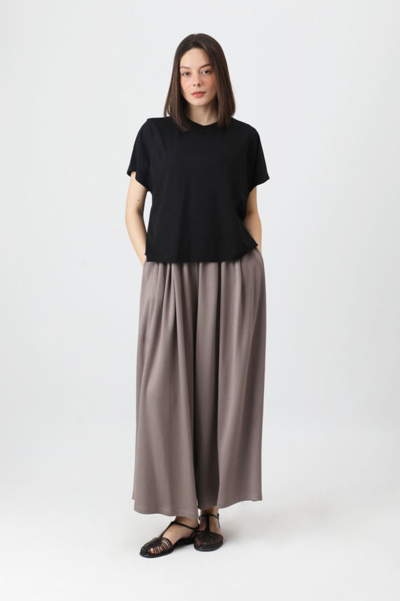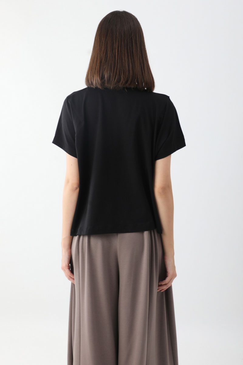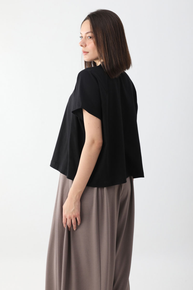 Pamuklu Kısa Kollu Tişört Siyah. Bisiklet yakadır, omuzdan üçgen dikiş detaylıdır, kısa kolludur, geniş kalıptır, bGünlük kullanımda tercih edebilirsiniz.