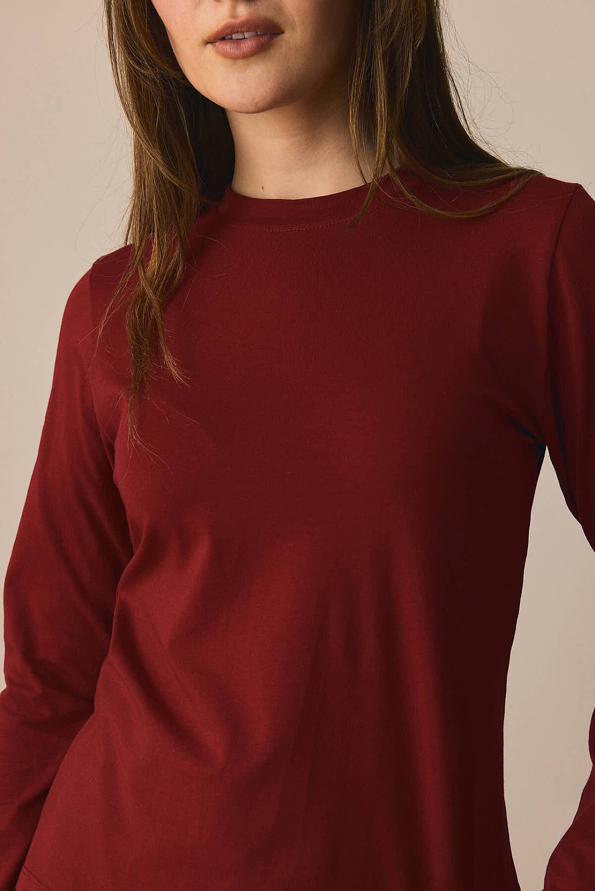 Yumuşak ve esnek kumaşı ile vücudu saran bu uzun kollu basic t-shirt, hem tek başına hem katmanlı kombinlerde rahatlıkla kullanılabilir. Günlük şıklığı sade bir dokunuşla yakalamak isteyenler için