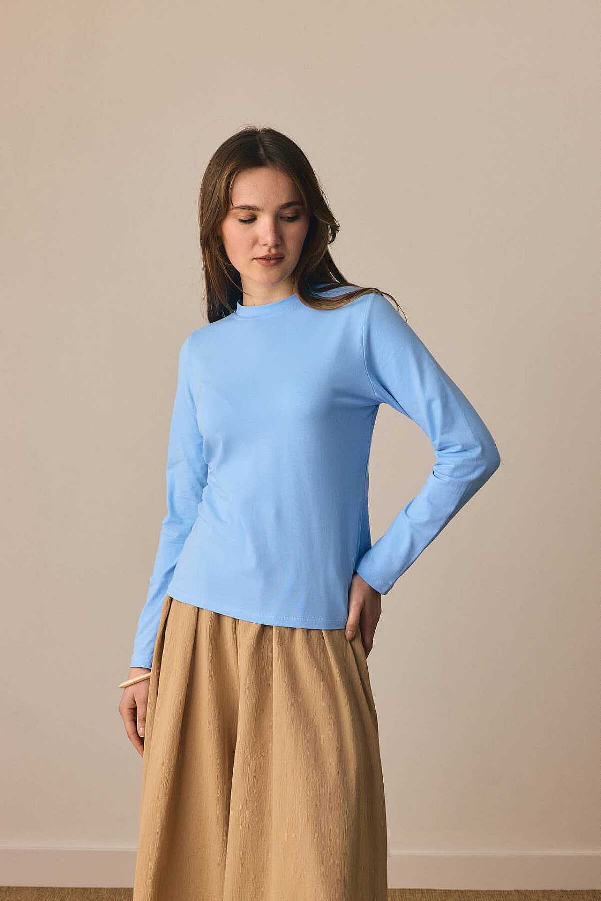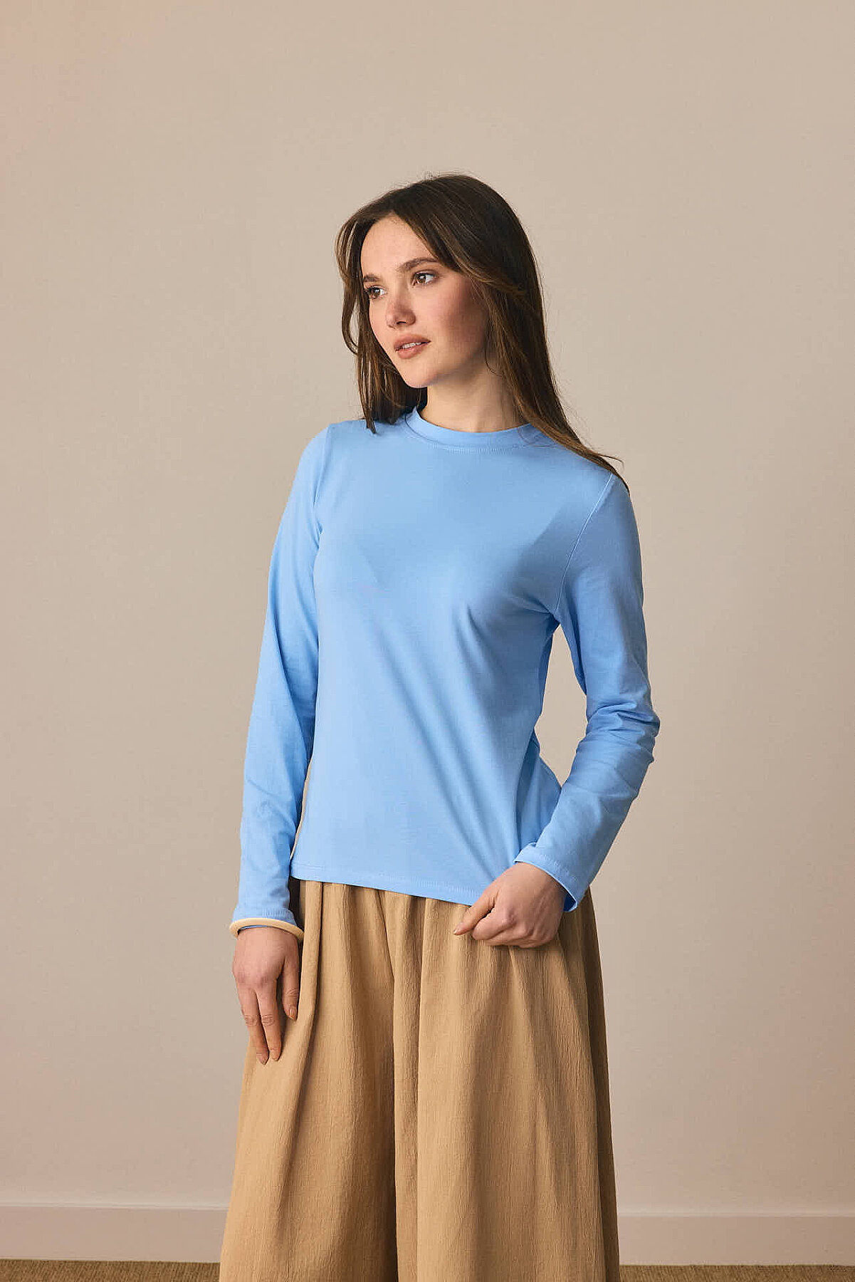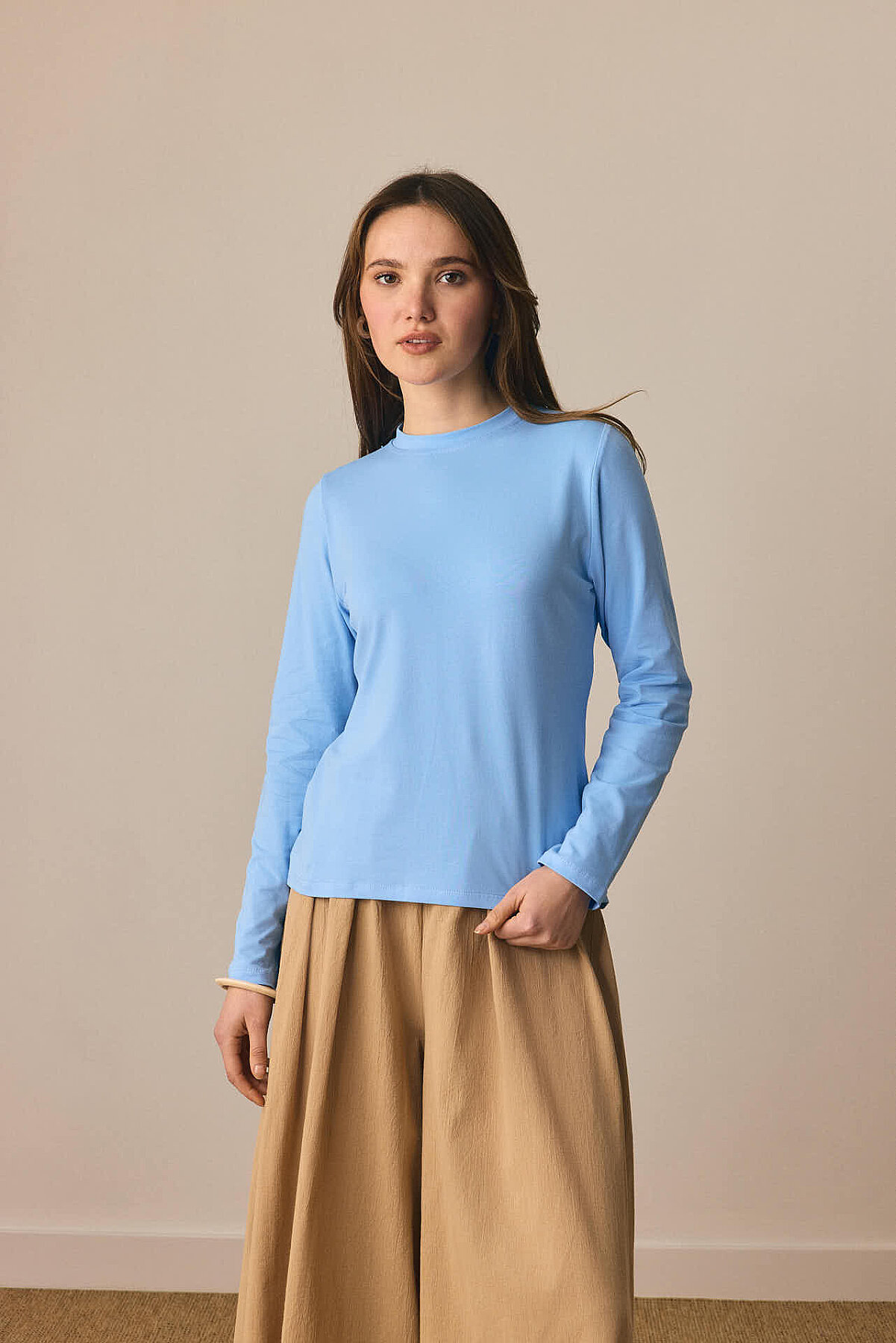 Pamuklu Uzun Kollu Body , Yumuşak ve esnek kumaşı ile vücudu saran bu uzun kollu basic t-shirt, hem tek başına hem katmanlı kombinlerde rahatlıkla kullanılabilir. Günlük şıklığı sade bir dokunuşla yakalamak isteyenler için