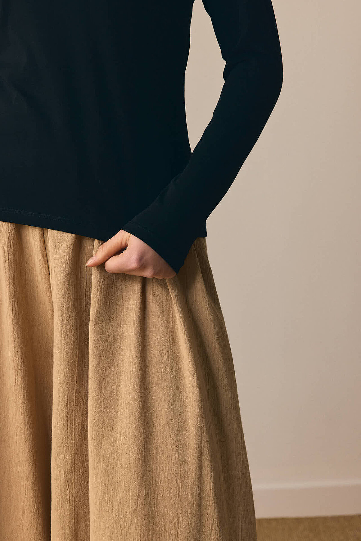 Pamuklu Uzun Kollu Body Siyah, Yumuşak ve esnek kumaşı ile vücudu saran bu uzun kollu basic t-shirt, hem tek başına hem katmanlı kombinlerde rahatlıkla kullanılabilir. Günlük şıklığı sade bir dokunuşla yakalamak isteyenler için