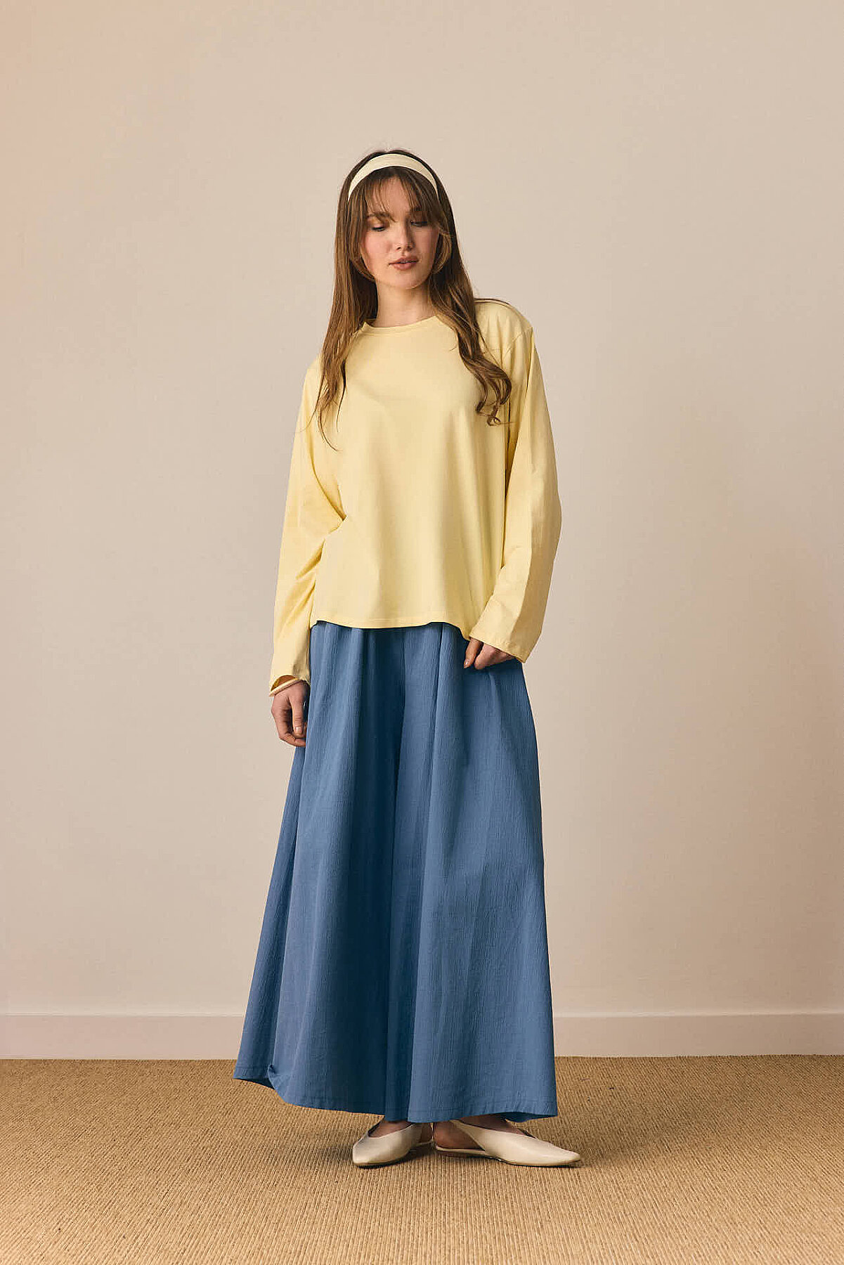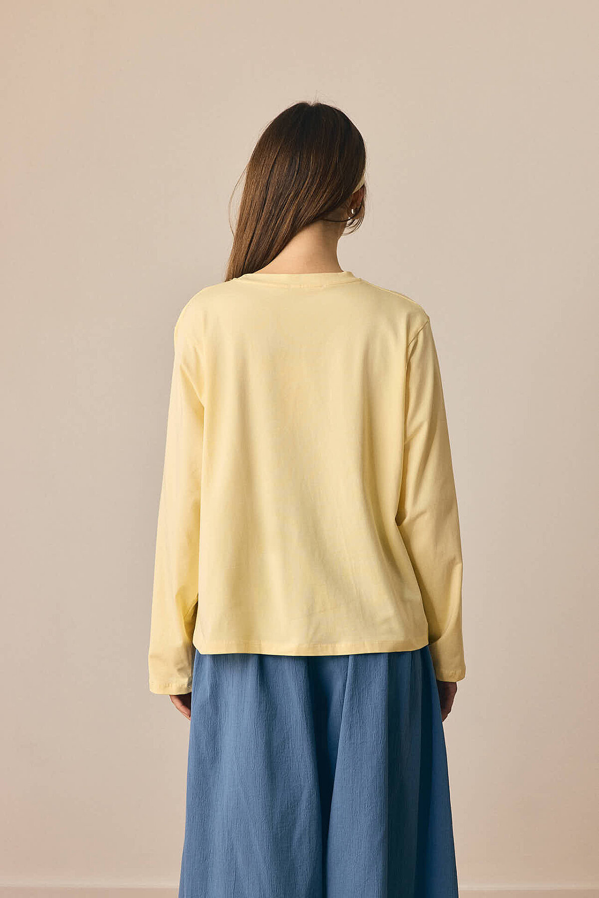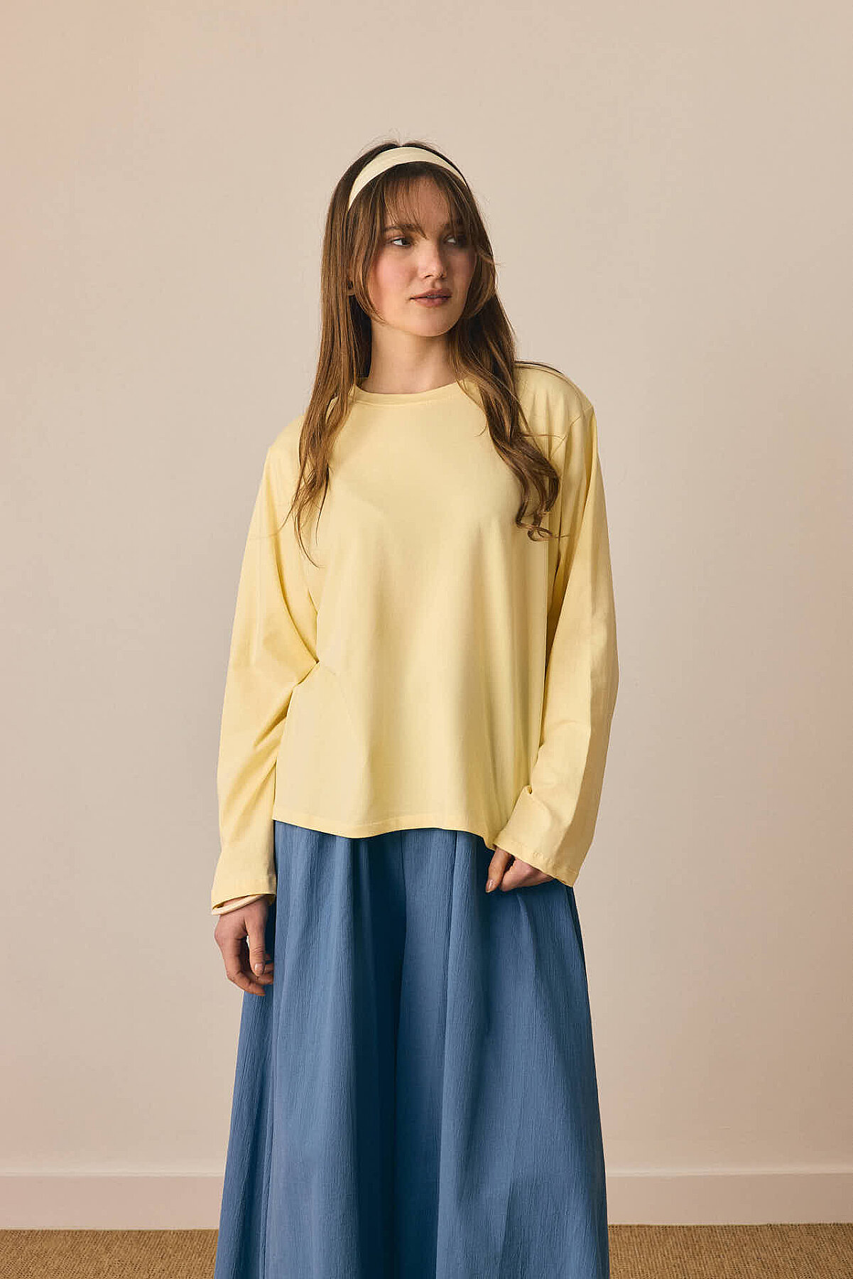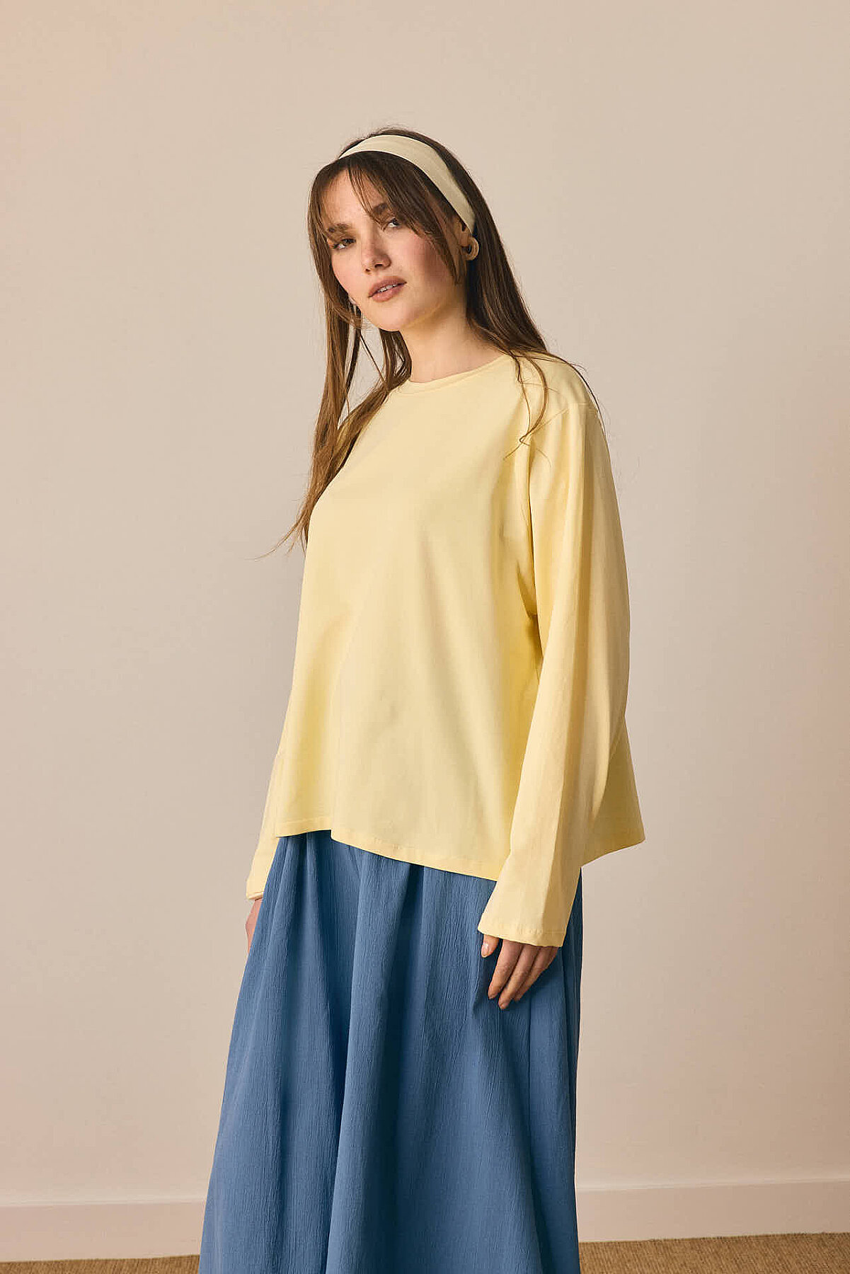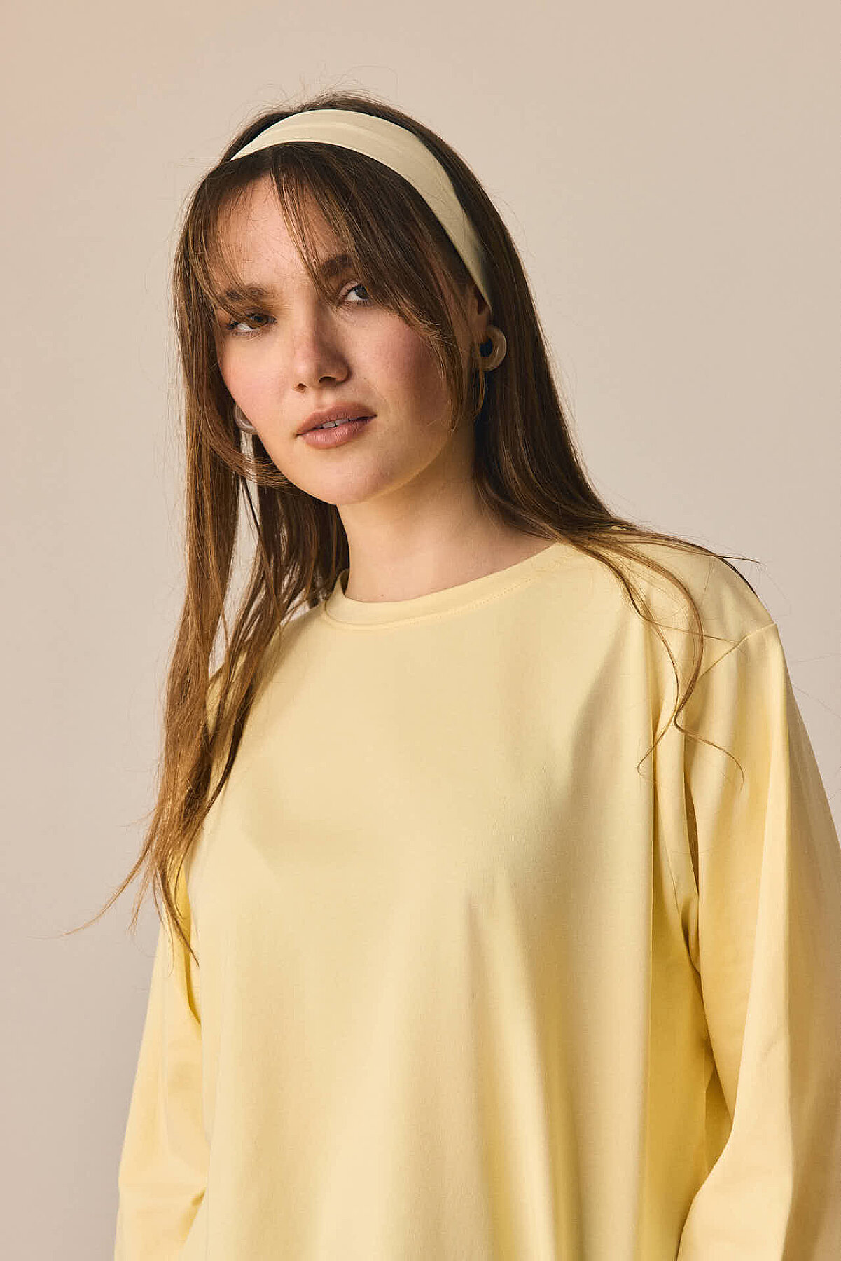 Pamuklu Uzun Kollu Tişört Açık Sarı