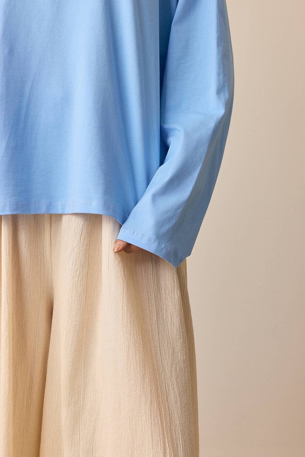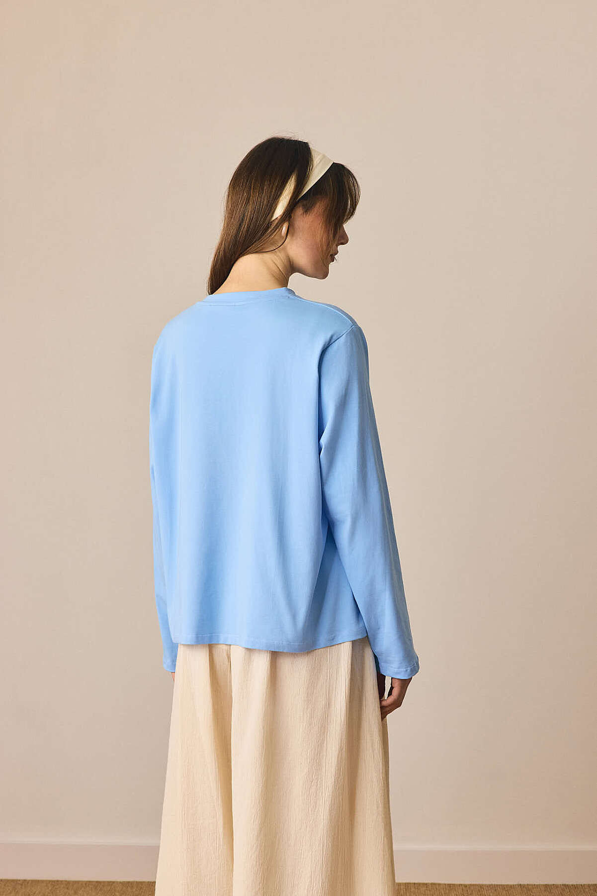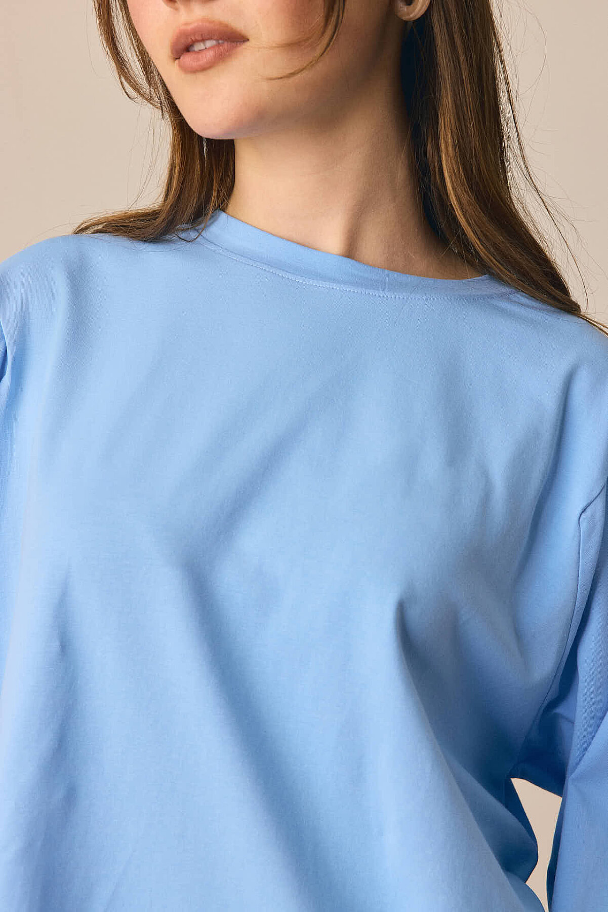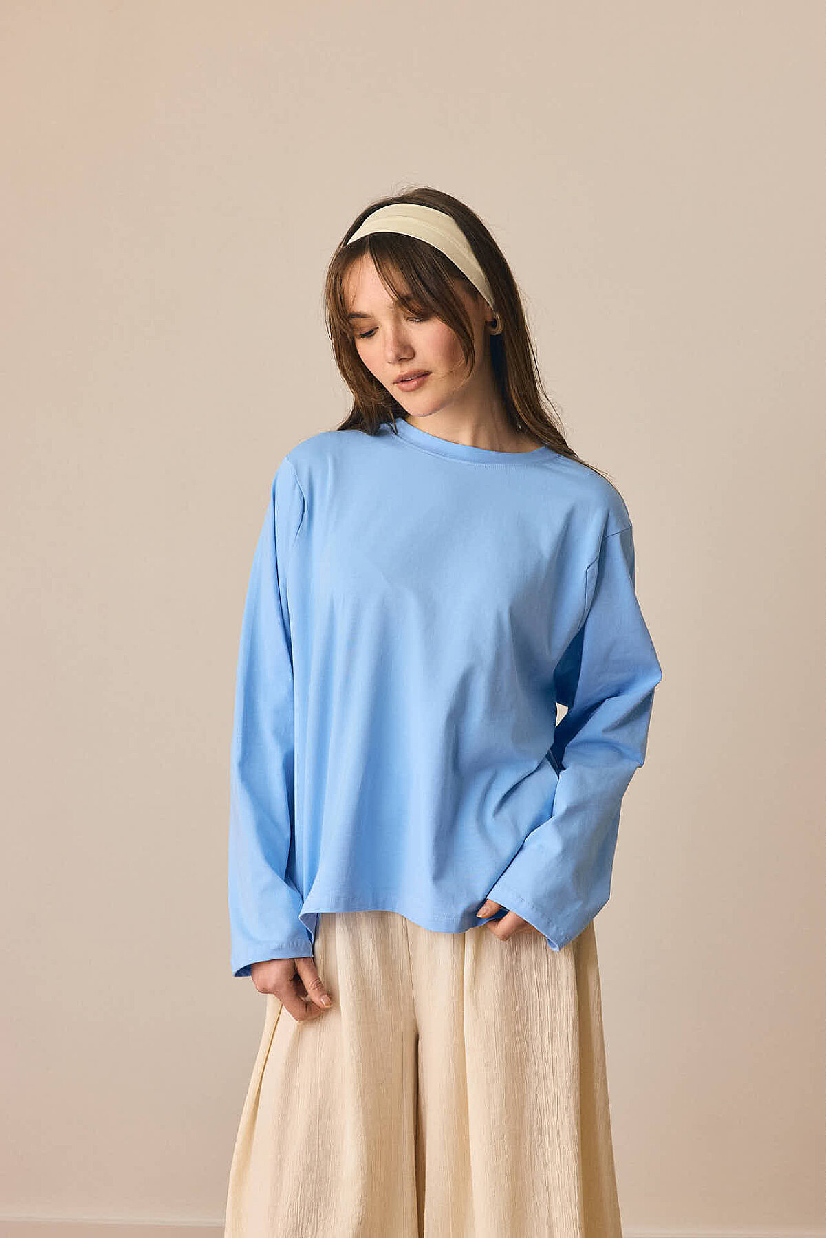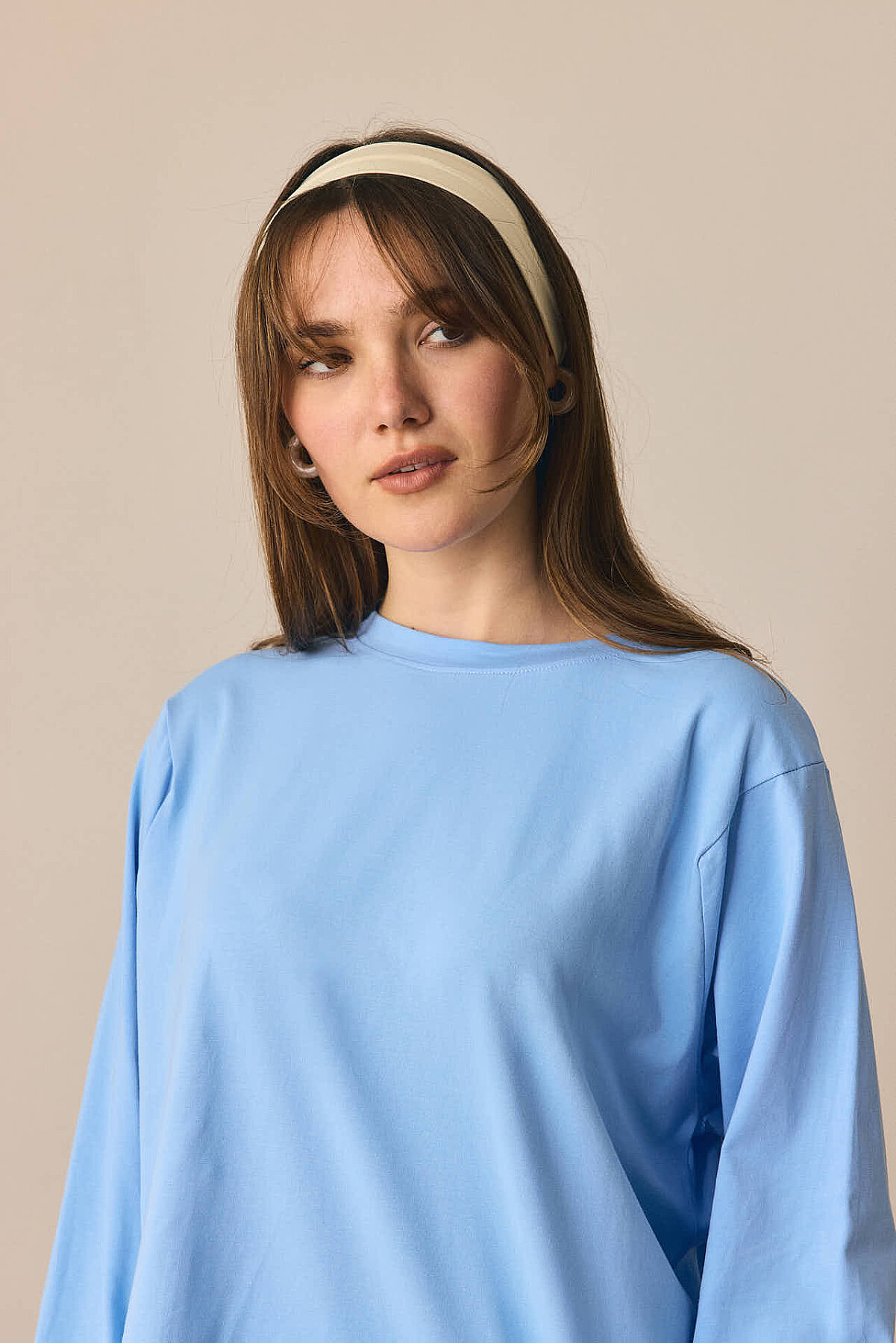 Pamuklu Uzun Kollu Tişört Bebe Mavisi