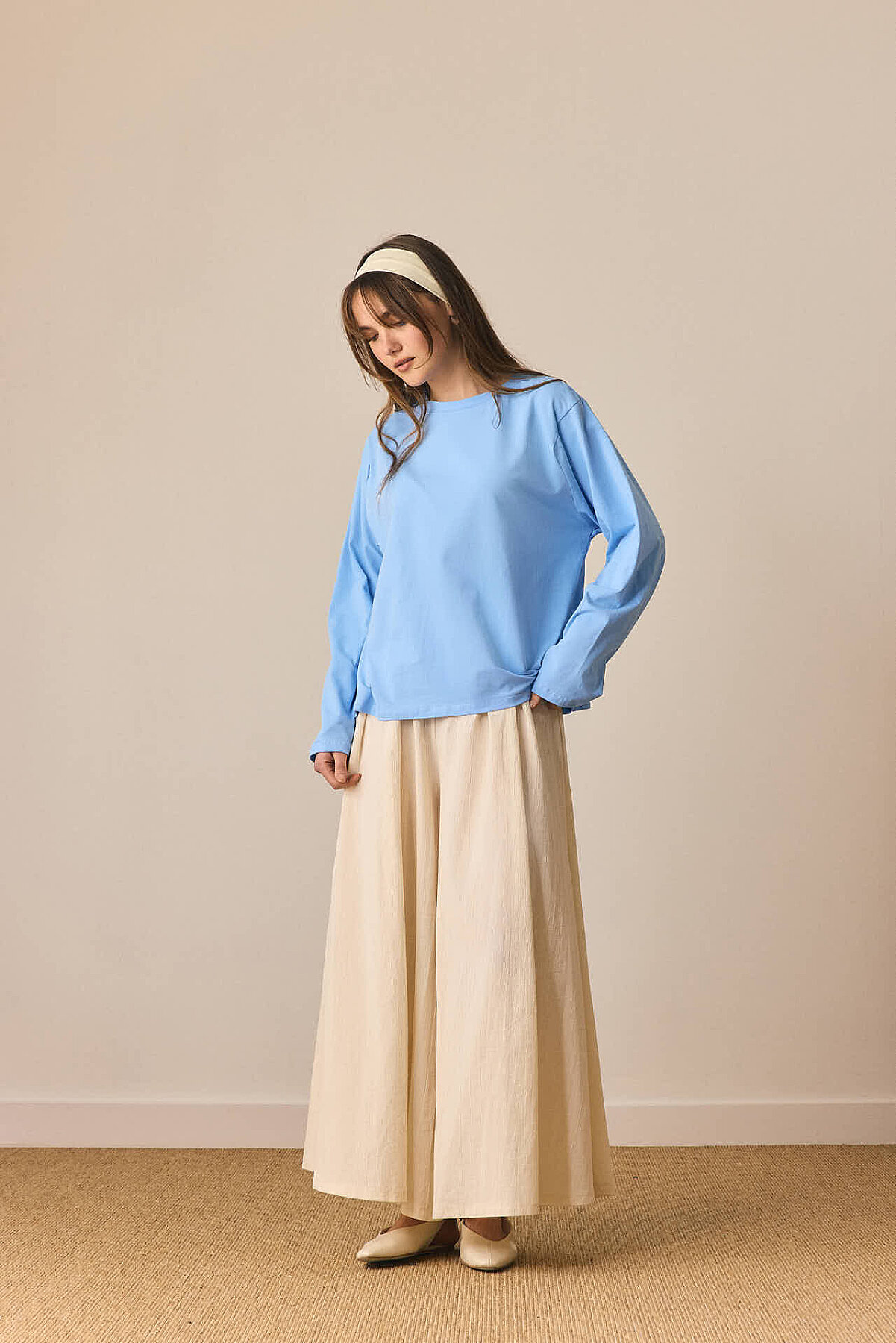 Pamuklu Uzun Kollu Tişört Bisiklet yakadır, omuzdan üçgen dikiş detaylıdır, geniş kolludur, geniş kalıptır, bilekten zulays etiketlidir. Günlük kullanımda tercih edebilirsiniz.