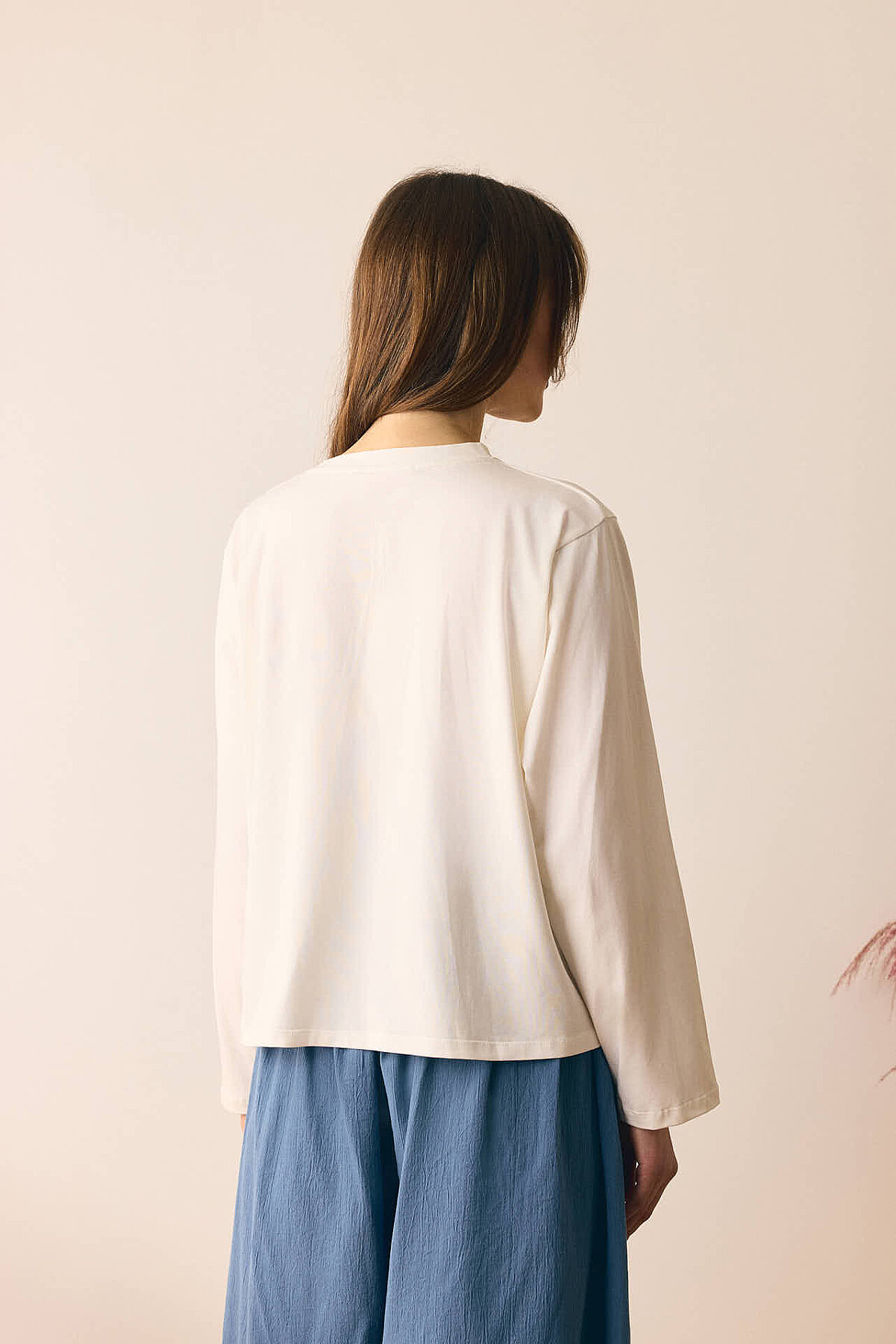 Pamuklu Uzun Kollu Tişört Beyaz