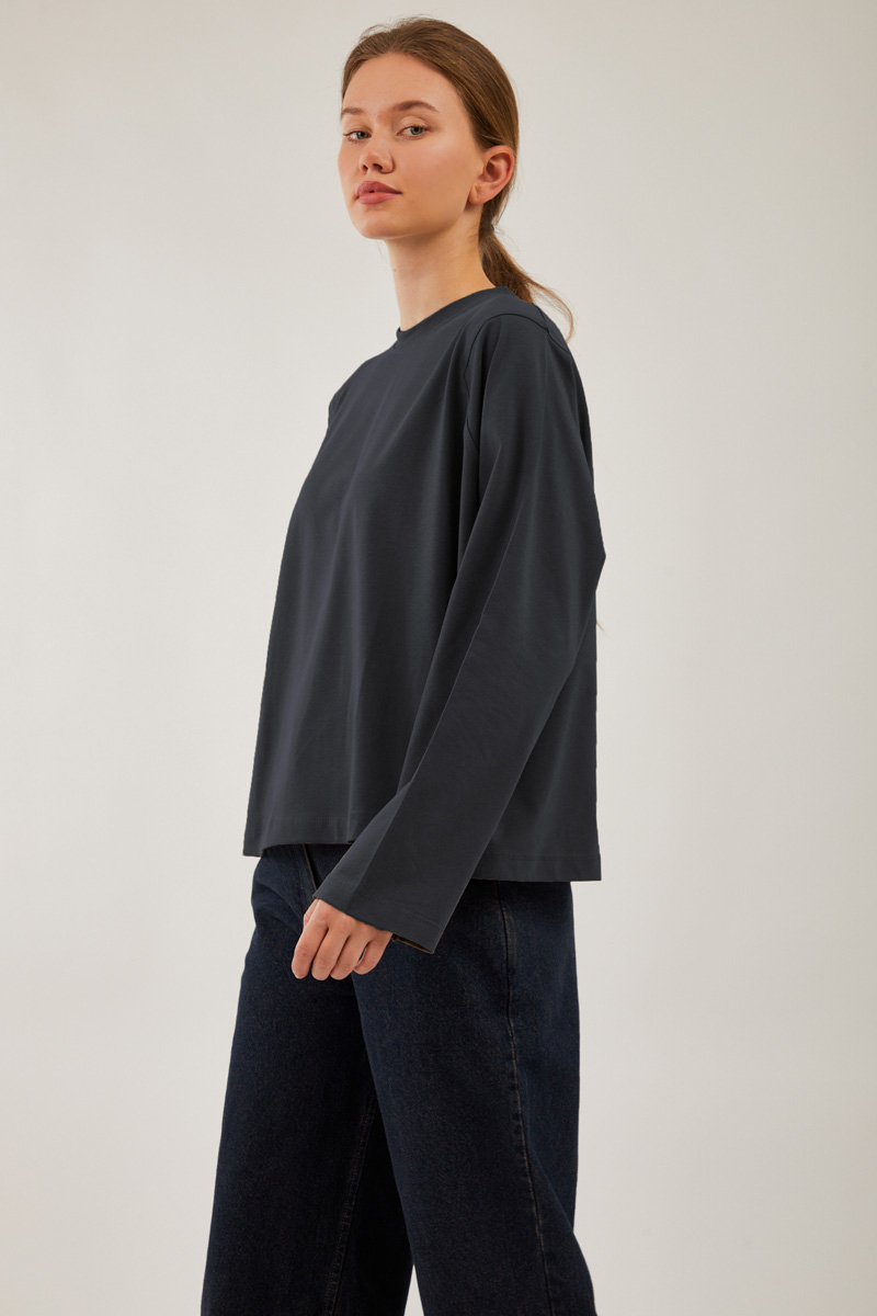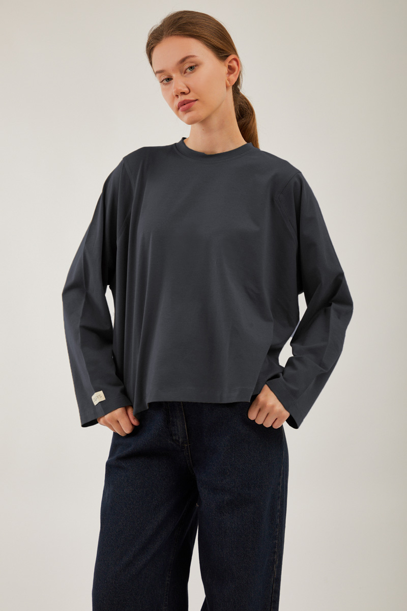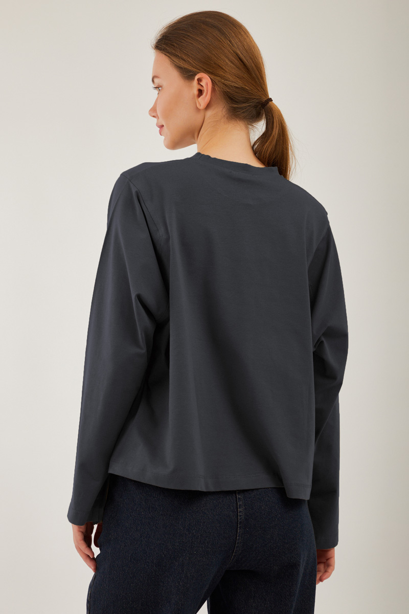 Pamuklu Uzun Kollu Tişört Füme