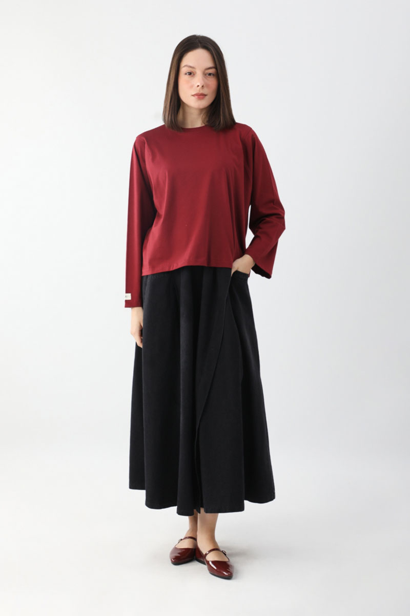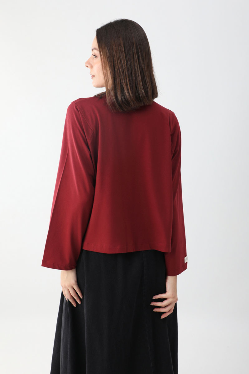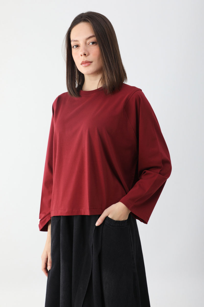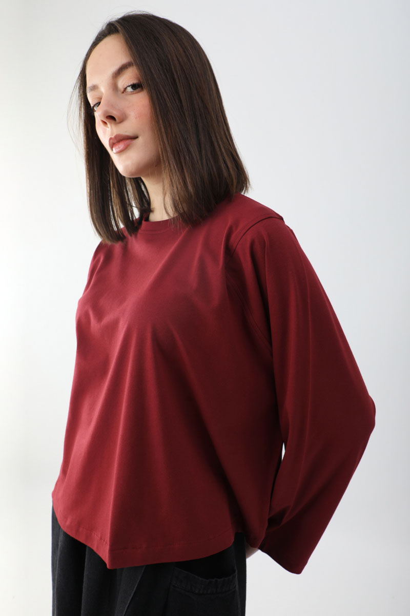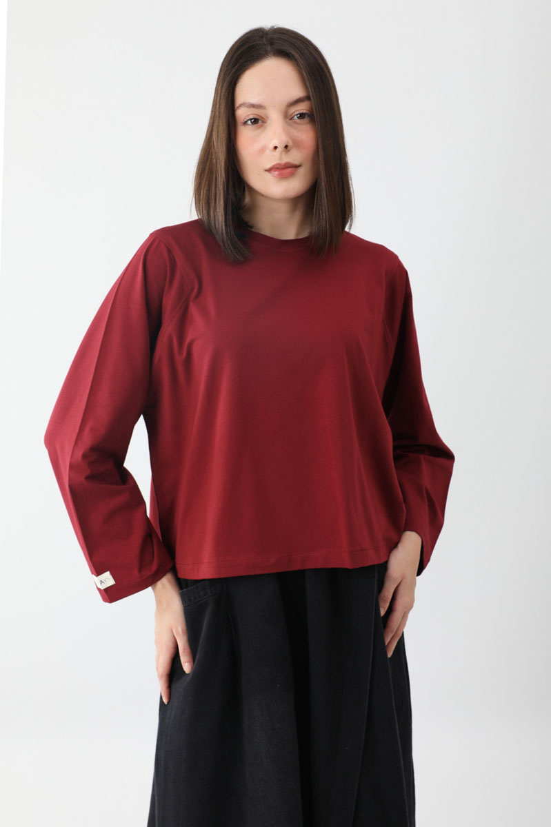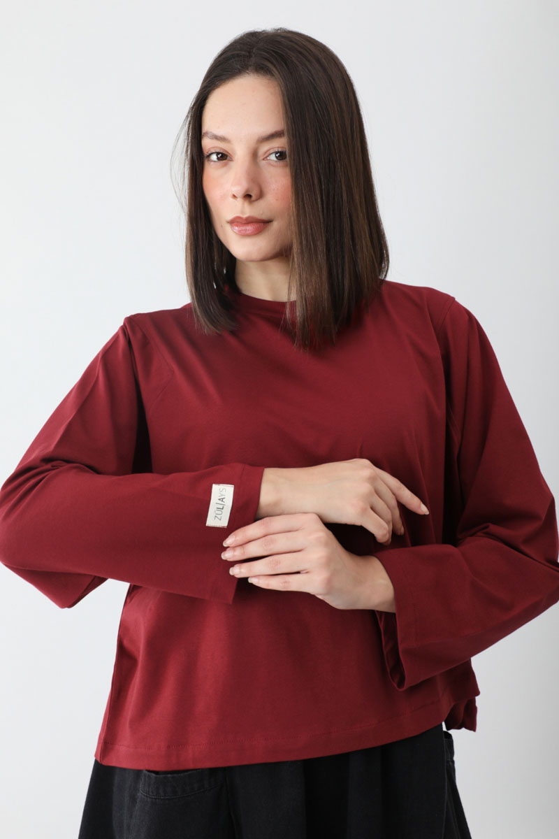 Pamuklu Uzun Kollu Tişört Kırmızı. Bisiklet yakadır, omuzdan üçgen dikiş detaylıdır, geniş kolludur, geniş kalıptır, bilekten zulays etiketlidir. Günlük kullanımda tercih edebilirsiniz.
