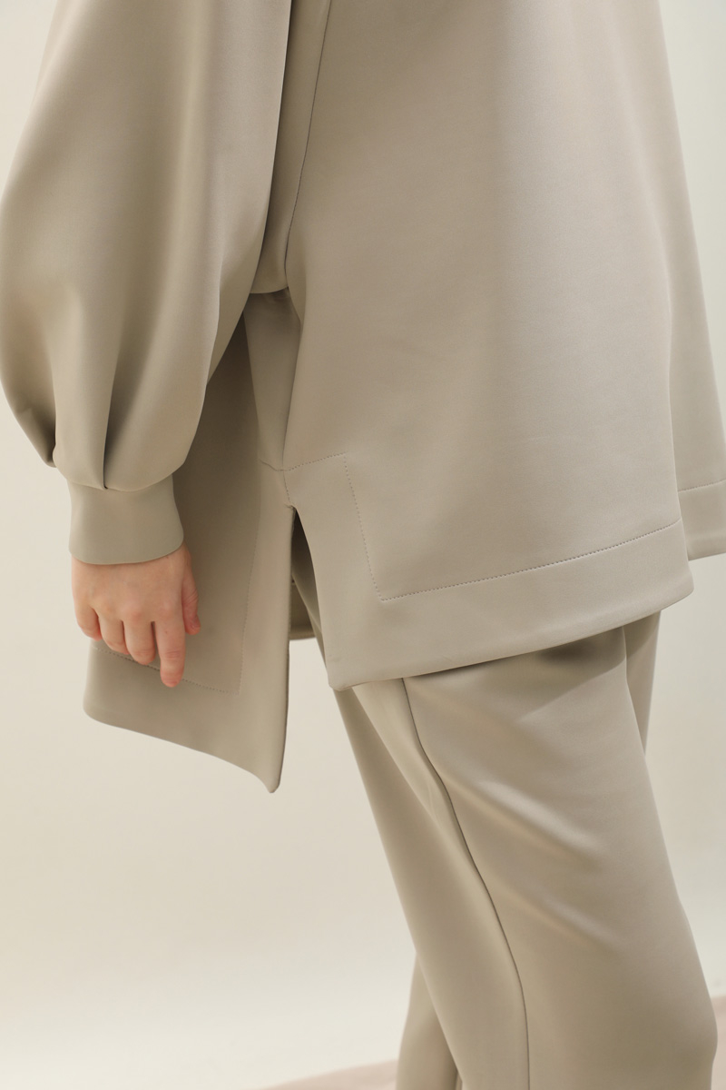 Pantolonlu Sweat Takım Taş. Sweat bisiklet yakadır, reglan ve hafif yarasa kolludur. bilekten pileli ve manşetlidir. yandan yırtmaç detaylıdır. Ön kısa arkası uzundur. Pantolon önden fermuarlı ve düğmelidir, cepsizdir, pilelidir, düz paçadır. Günlük kullanım ve özel günlerinizde tercih edebilirsiniz.