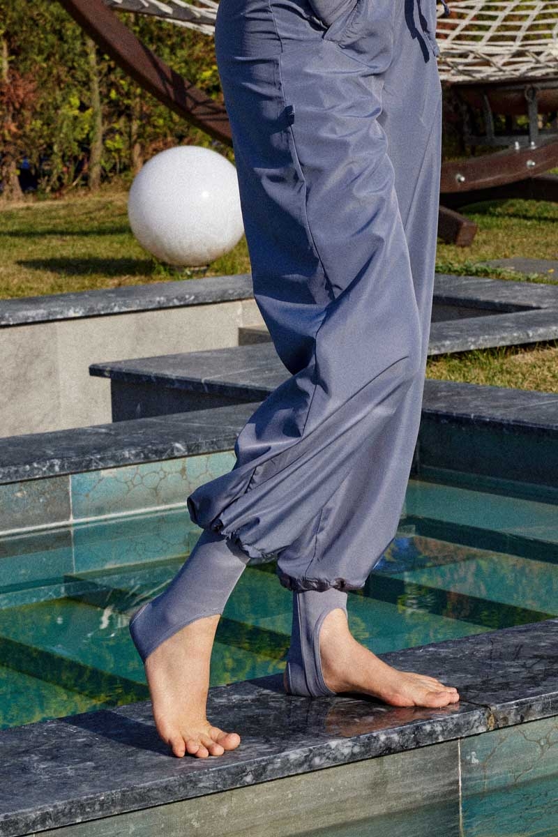 Paraşüt Deniz Pantolonu Gri. Bel kısmı lastiklidir, yandan fermuarlıdır, bilek kısmı lastiklidir, havuz ve deniz için kullanıma uygundur. (Ayaktan geçirmeli iç tayt ürüne dahil değildir.)