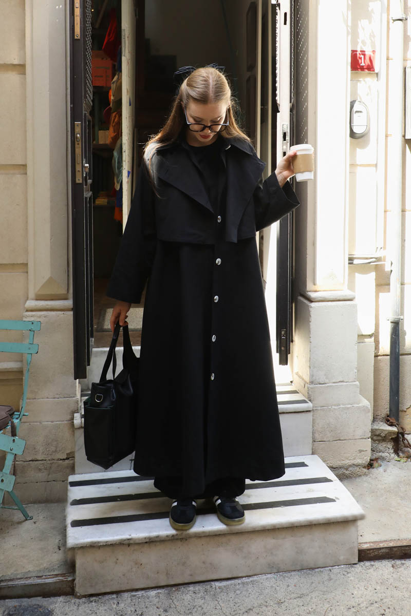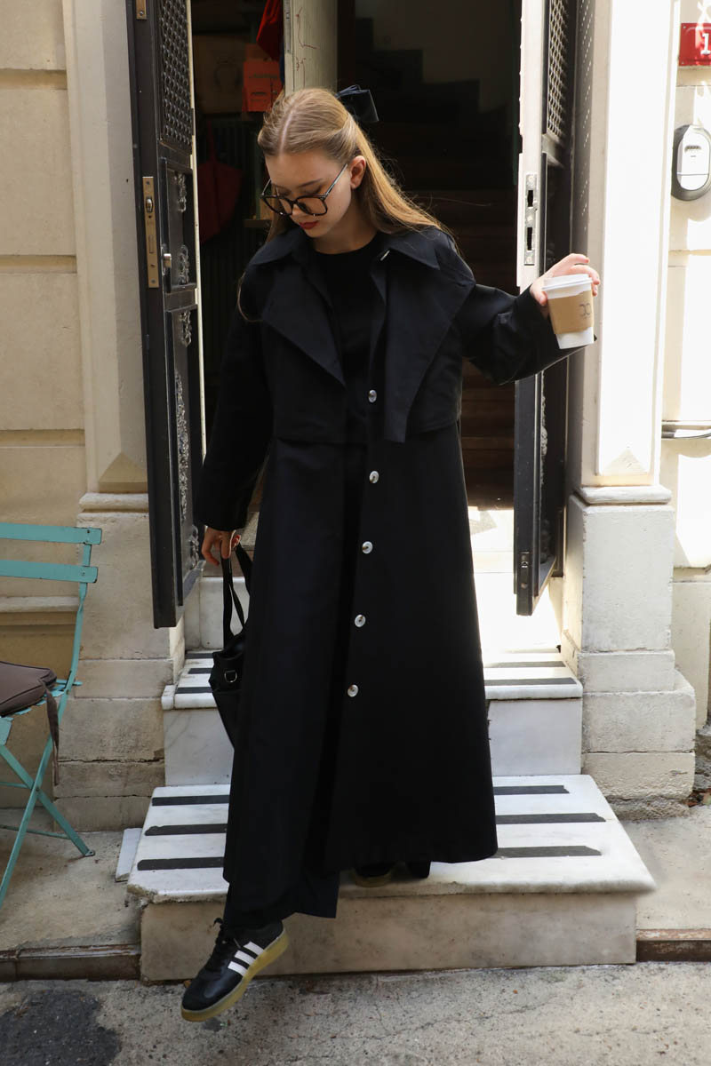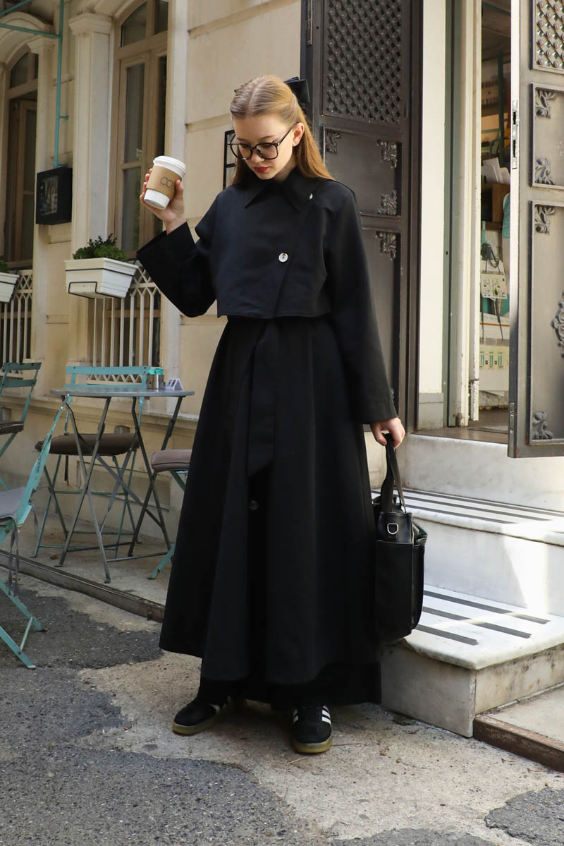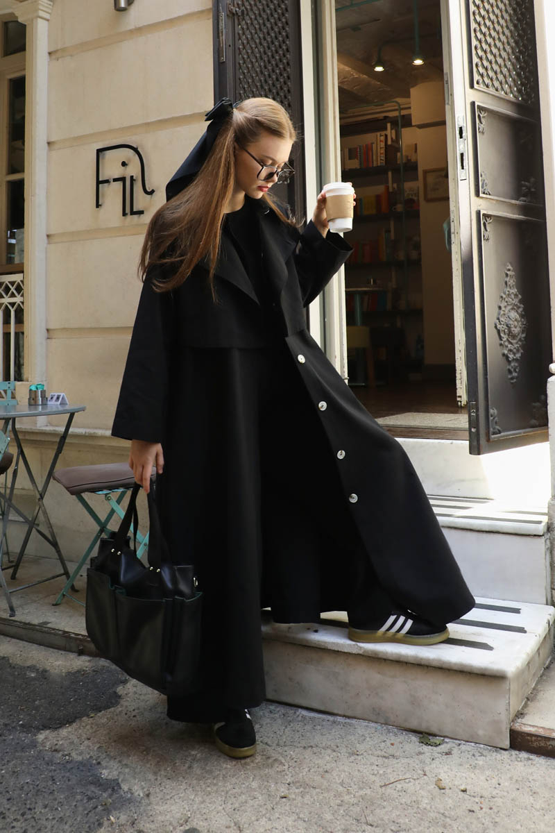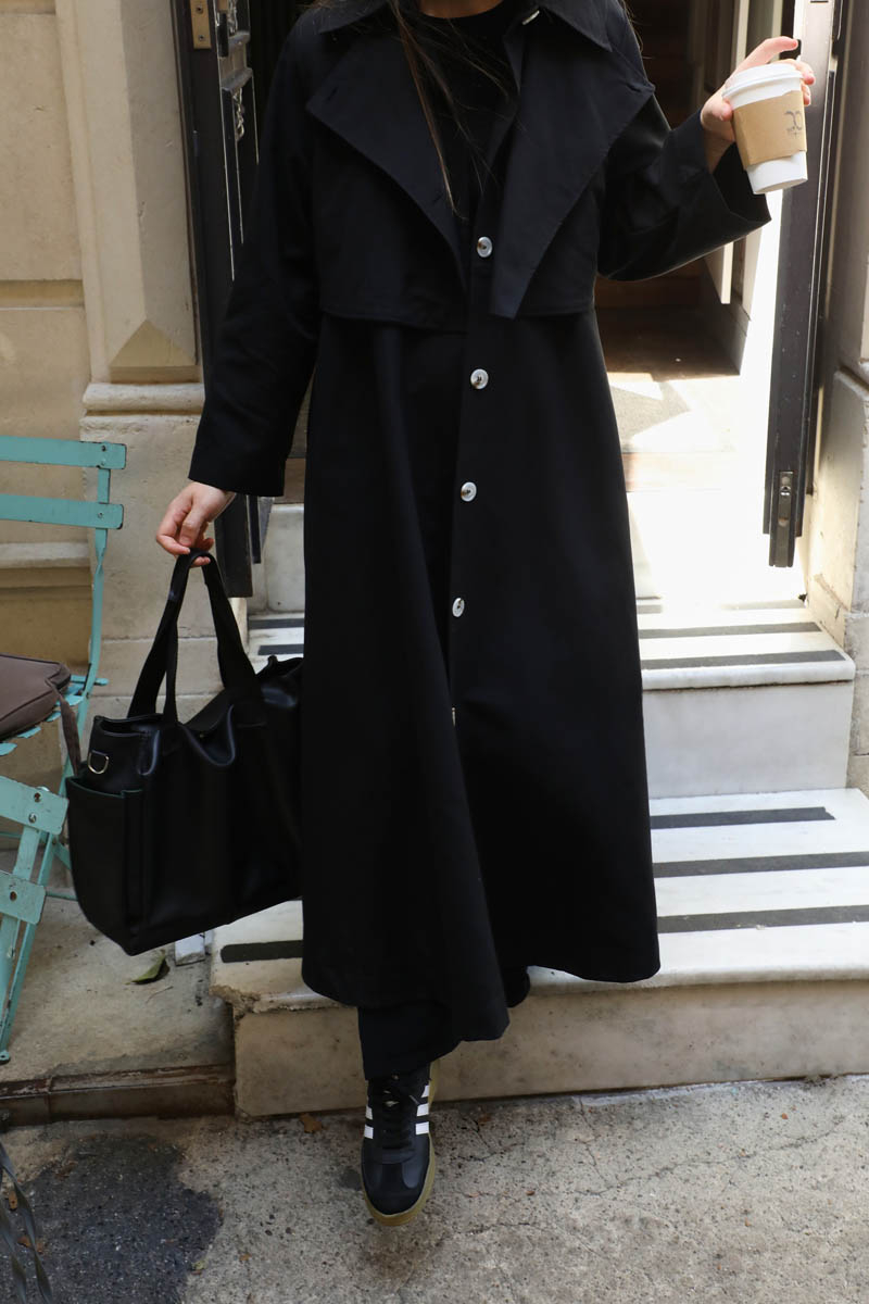 Parçalı Kloş Trençkot Siyah