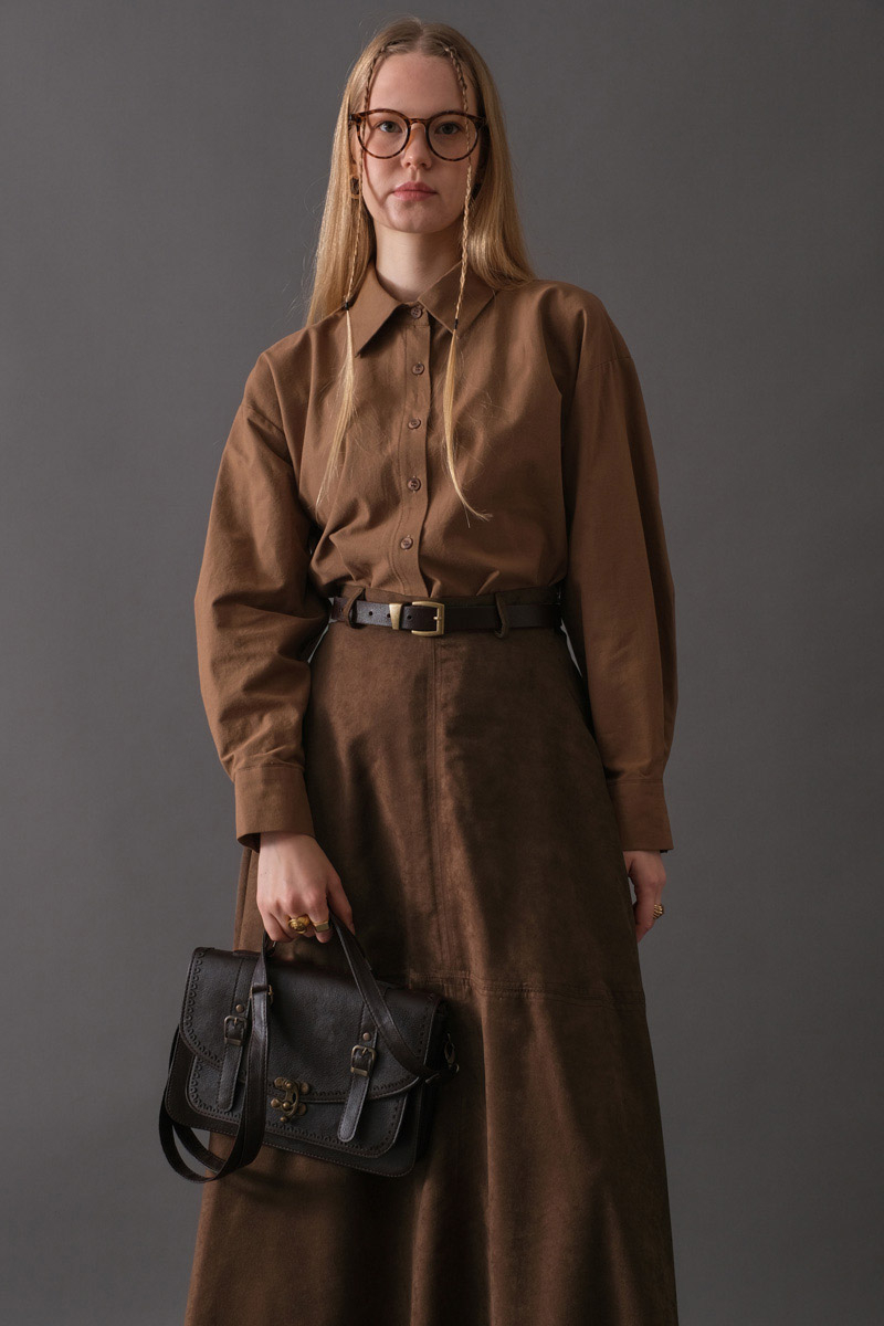 Parçalı Süet Etek Kahverengi, modern ve zarif bir silueti günlük stile taşıyan özel bir tasarım. Süet dokulu kumaşı sayesinde tok bir duruşa sahiptir ve hareket ettikçe akışkan bir form oluşturur. Bel hattındaki parçalı kesim detayı modeli daha karakterli gösterirken, genişleyen etek formu hem konforlu hem şık bir görünüm sunar. Basic bluzlar, trikolar ve gömleklerle kolayca kombinlenerek her mevsimde kullanılabilir.