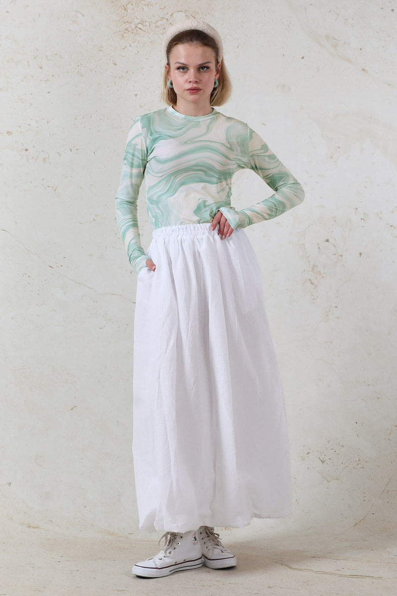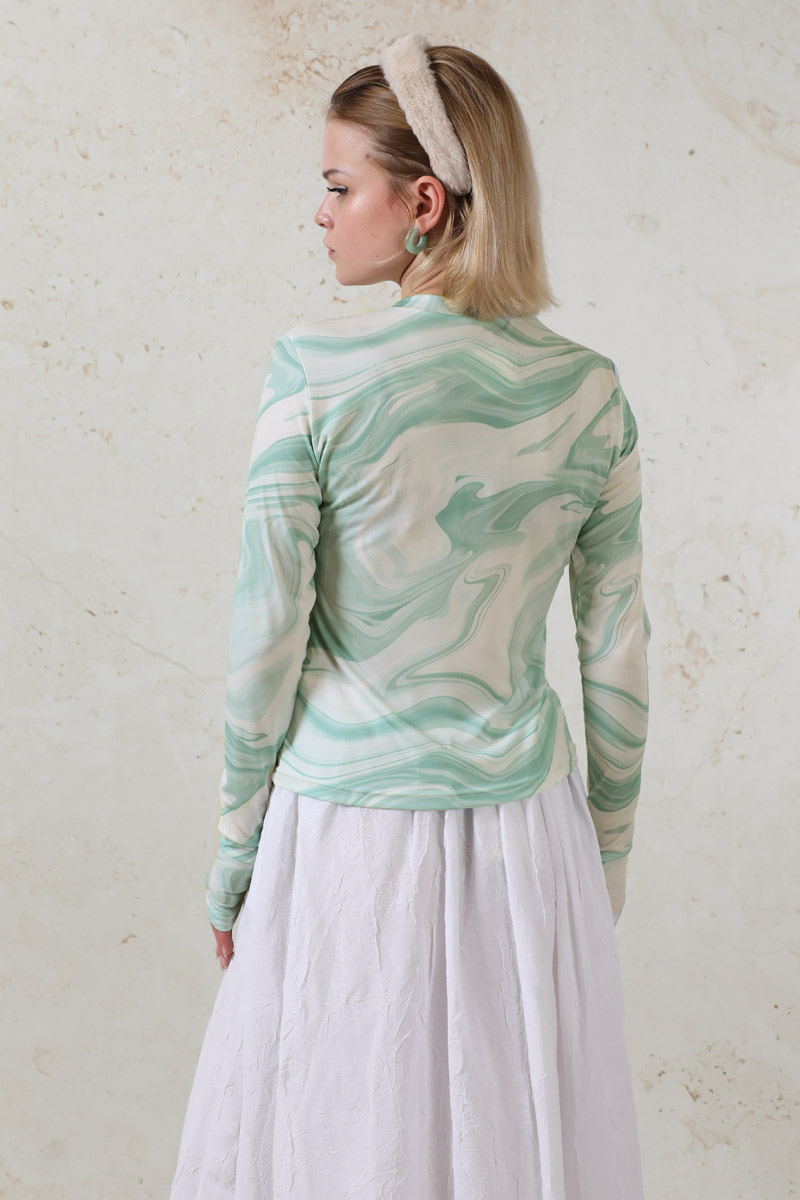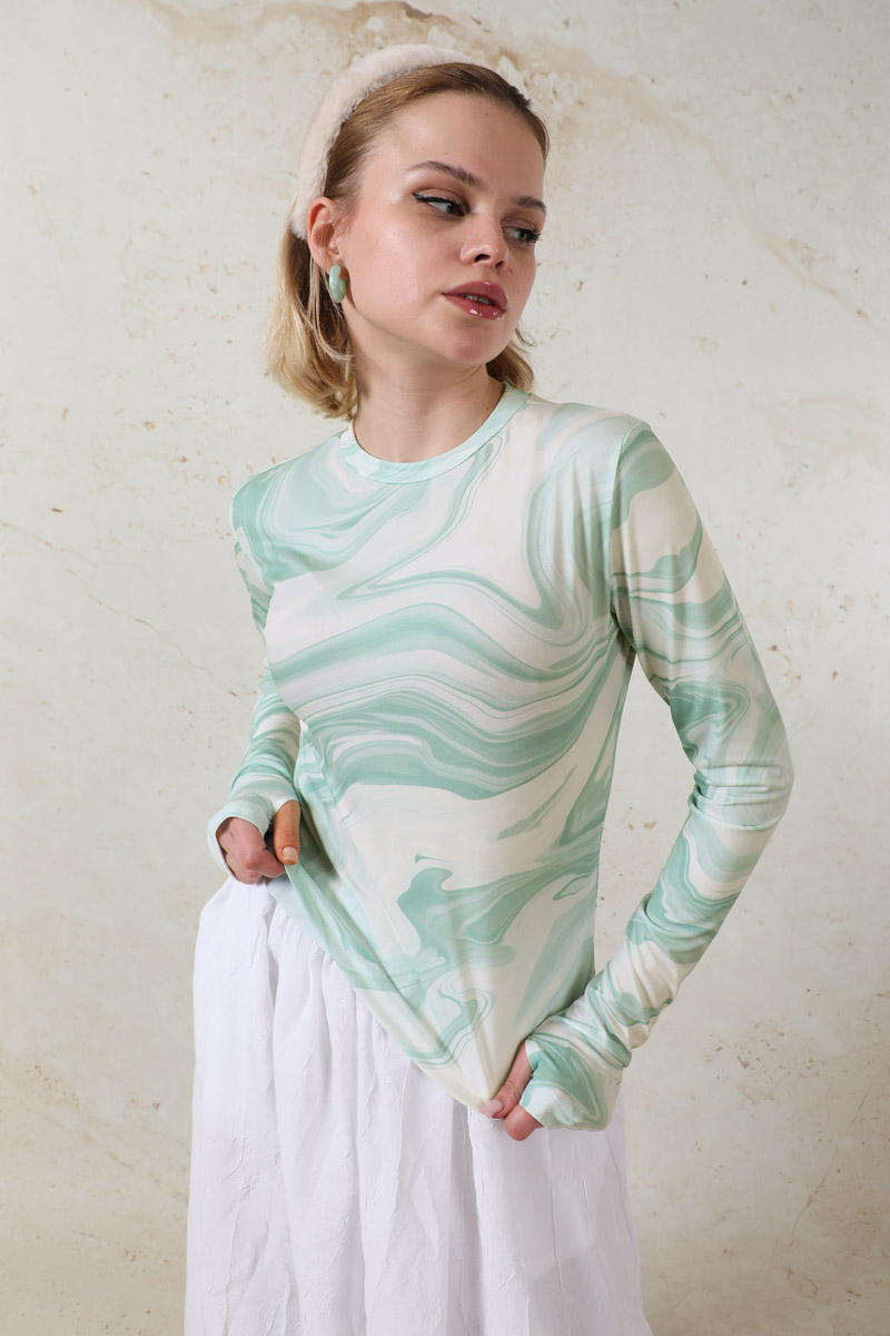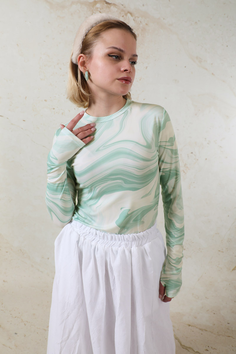 Parmaklı Soyut Body Mint desenlidir. Bisiklet yakalıdır. Uzun kolludur. Parmaktan geçirme detayı vardır. Yumuşak ve esnek kumaşlıdır. Günlük kullanımda tercih edebilirsiniz.
